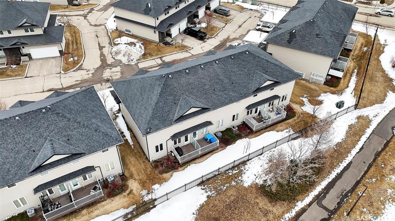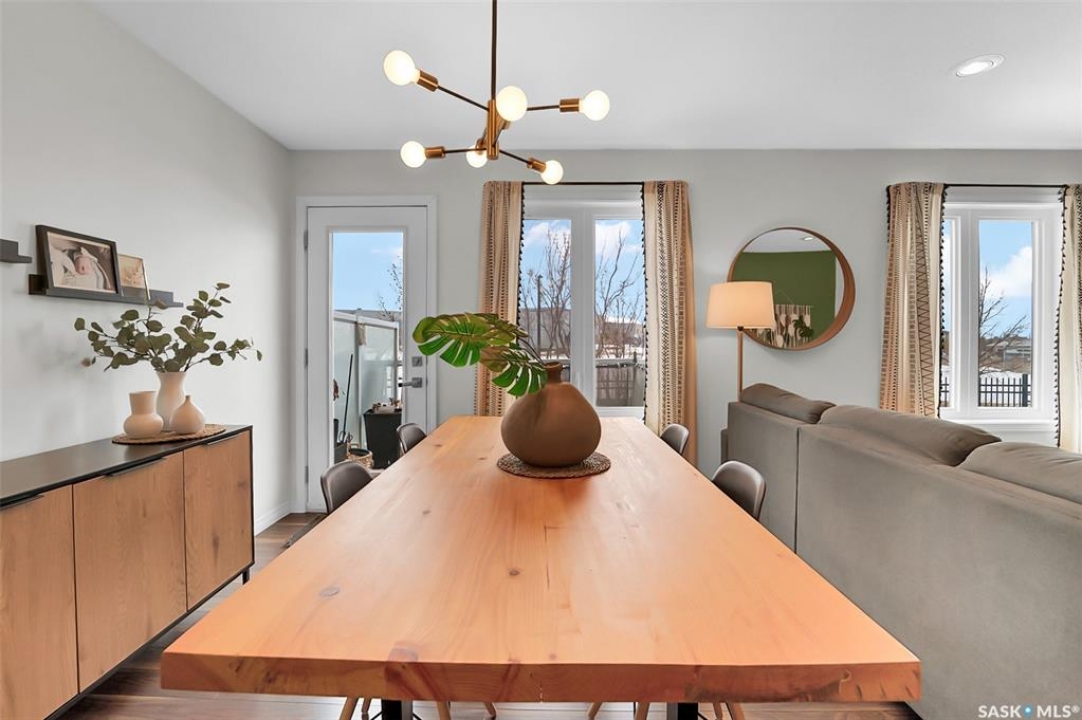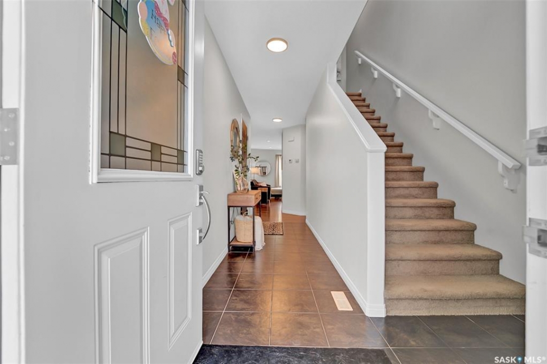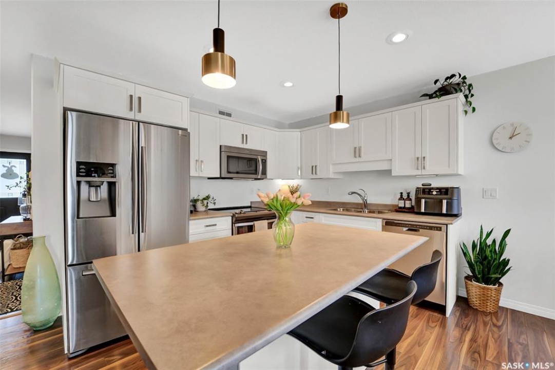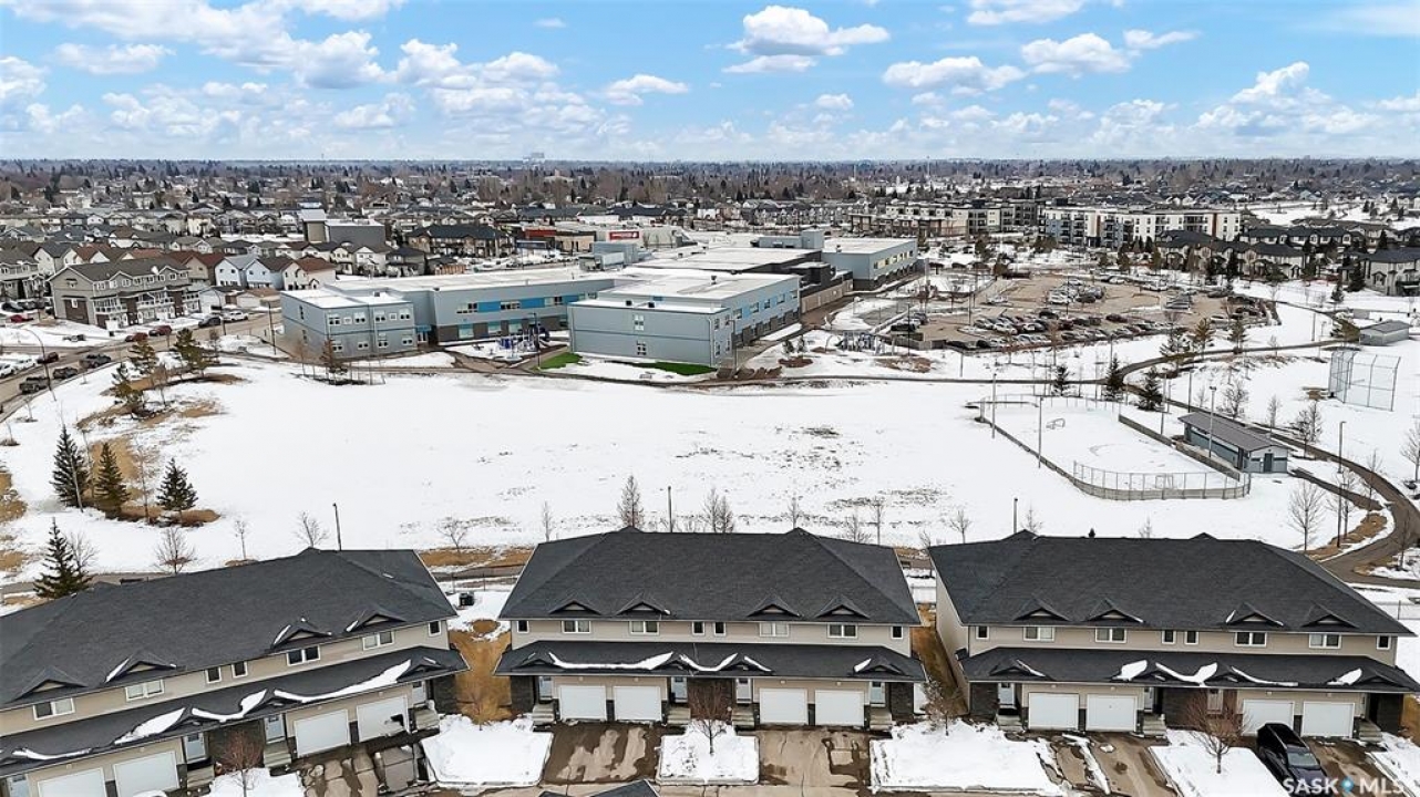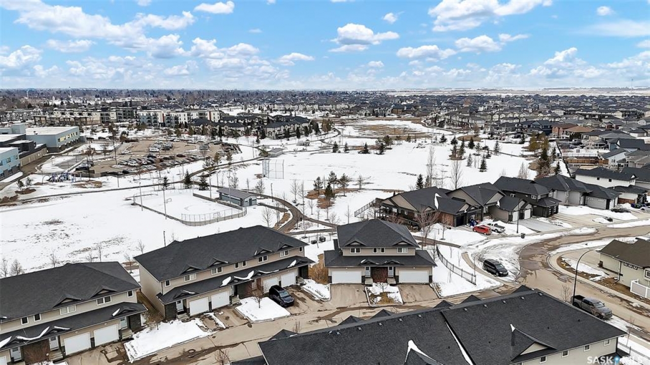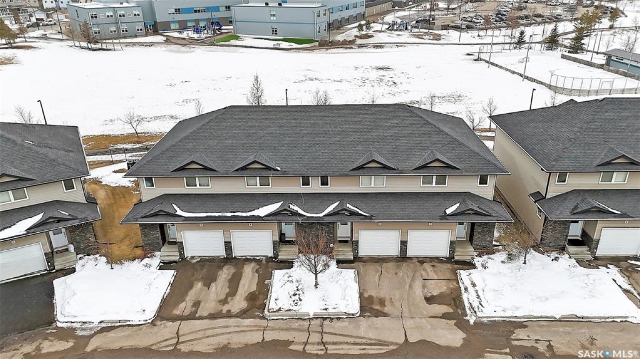 Experience the best of Hampton Village living in this stunning townhouse, perfectly positioned with a premium location backing directly onto the park and school grounds. Built by Fraser Homes, this home at 9-365 Dawson Crescent offers an expansive, open-air feel that is rare to find in townhouse living, complete with the added convenience of an attached garage and private driveway. This home makes a striking impression with a bright, open main floor centered around a contemporary white kitchen. The layout is designed for both function and flair, offering a seamless flow that is perfect for entertaining. Large windows not only flood the space with natural light but also provide peaceful, unobstructed views of the greenery behind the home. The south-facing exposure ensures the living area is bathed in warm, natural sunlight all day long, creating an inviting and cherry atmosphere. The upper level is thoughtfully configured with three spacious bedrooms, including a primary suite that serves as a true retreat with its own private four-piece ensuite. An additional four-piece bathroom conveniently serves the rest of the top floor, ensuring plenty of space for family or guests. With the lush park and school fields right at your back door, you have a massive outdoor "backyard" that requires zero maintenance while offering maximum enjoyment for kids, pets, or quiet morning strolls. Beyond your doorstep, the convenience of the neighborhood is unmatched. You are just minutes away from the vibrant retail hub of Hampton Village, featuring Shoppers Drug Mart, and Dairy Queen, as well as local favorites like The Canadian Brewhouse. With Ernest Lindner and St. Lorenzo Ruiz schools just steps away, and quick access to the Saskatoon Airport, the Blairmore shopping district, and Circle Drive, this home offers the perfect blend of a quiet sanctuary and effortless city connectivity.