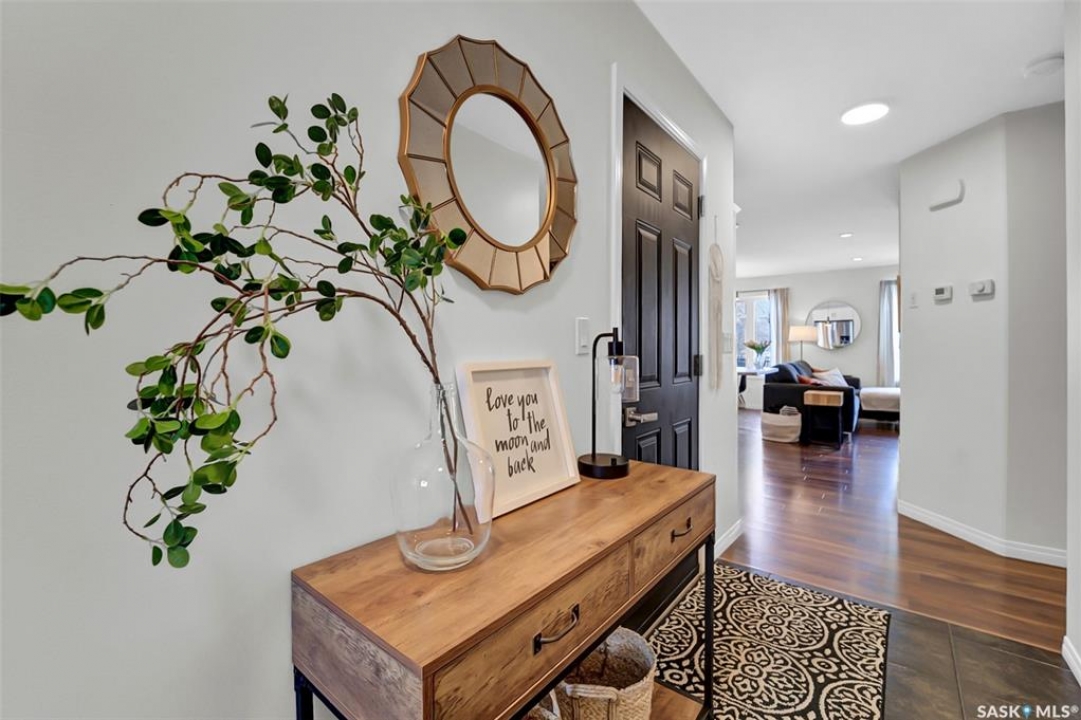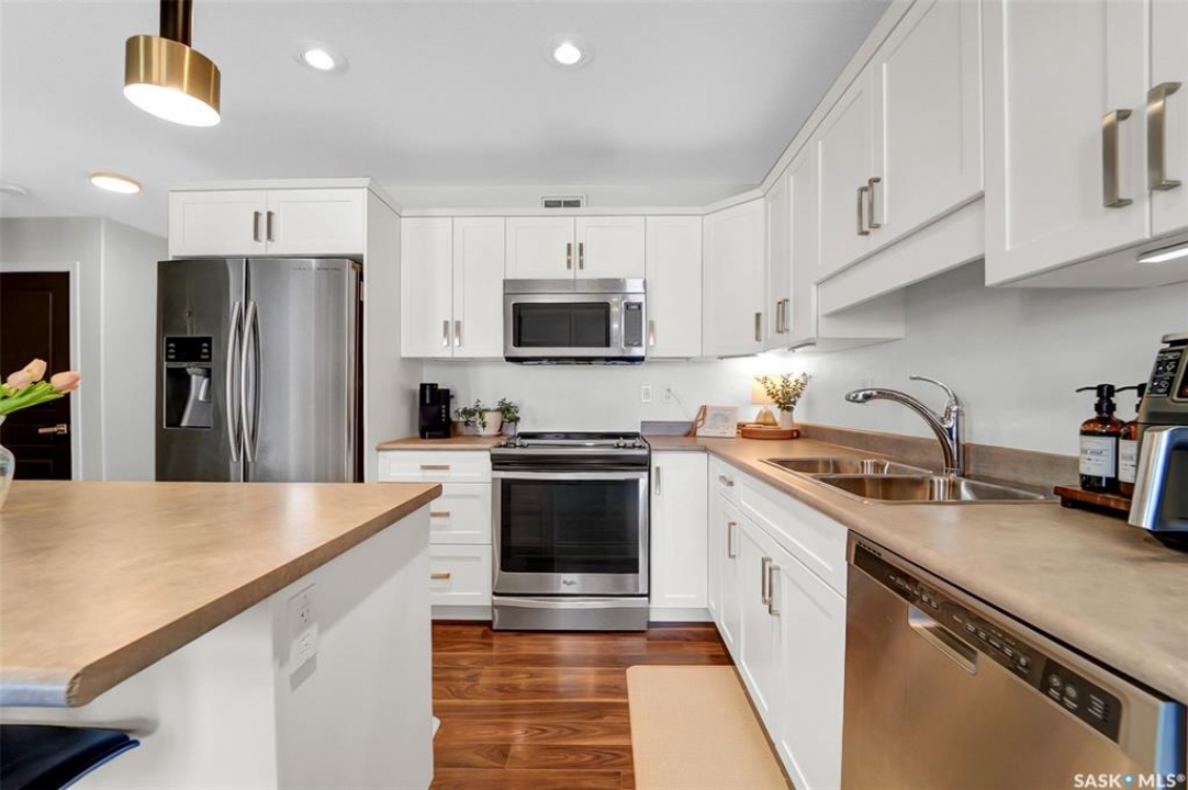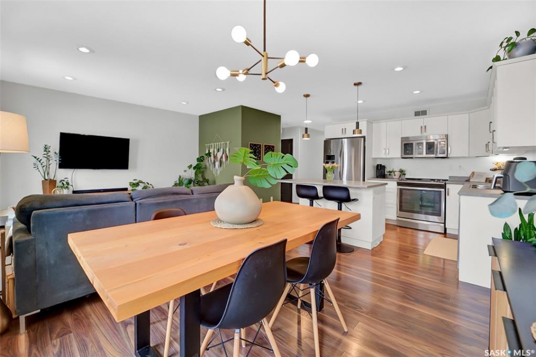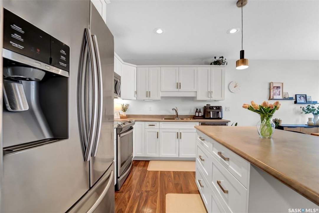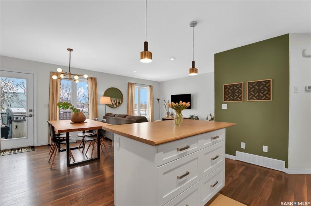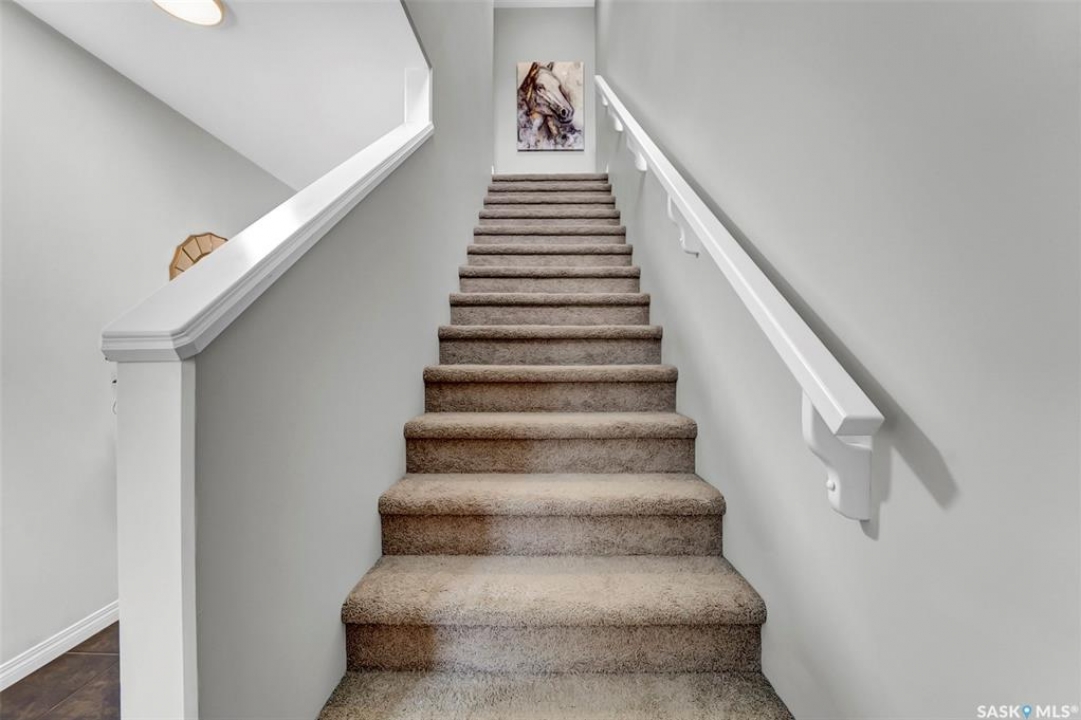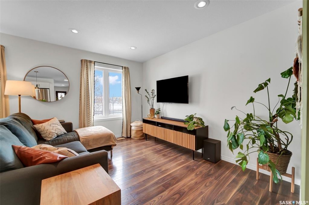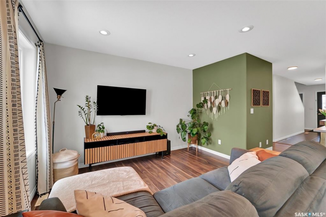 Experience the best of Hampton Village living in this stunning townhouse, perfectly positioned with a premium location backing directly onto the park and school grounds. Built by Fraser Homes, this home at 9-365 Dawson Crescent offers an expansive, open-air feel that is rare to find in townhouse living, complete with the added convenience of an attached garage and private driveway. This home makes a striking impression with a bright, open main floor centered around a contemporary white kitchen. The layout is designed for both function and flair, offering a seamless flow that is perfect for entertaining. Large windows not only flood the space with natural light but also provide peaceful, unobstructed views of the greenery behind the home. The south-facing exposure ensures the living area is bathed in warm, natural sunlight all day long, creating an inviting and cherry atmosphere. The upper level is thoughtfully configured with three spacious bedrooms, including a primary suite that serves as a true retreat with its own private four-piece ensuite. An additional four-piece bathroom conveniently serves the rest of the top floor, ensuring plenty of space for family or guests. With the lush park and school fields right at your back door, you have a massive outdoor "backyard" that requires zero maintenance while offering maximum enjoyment for kids, pets, or quiet morning strolls. Beyond your doorstep, the convenience of the neighborhood is unmatched. You are just minutes away from the vibrant retail hub of Hampton Village, featuring Shoppers Drug Mart, and Dairy Queen, as well as local favorites like The Canadian Brewhouse. With Ernest Lindner and St. Lorenzo Ruiz schools just steps away, and quick access to the Saskatoon Airport, the Blairmore shopping district, and Circle Drive, this home offers the perfect blend of a quiet sanctuary and effortless city connectivity.