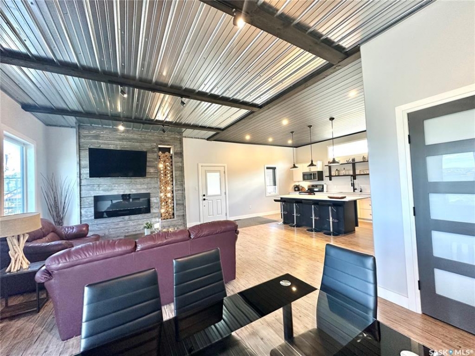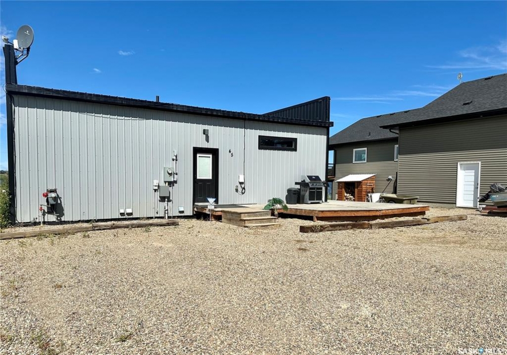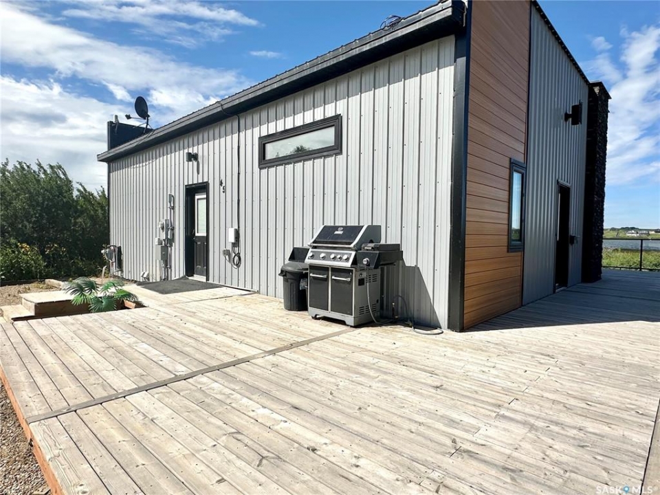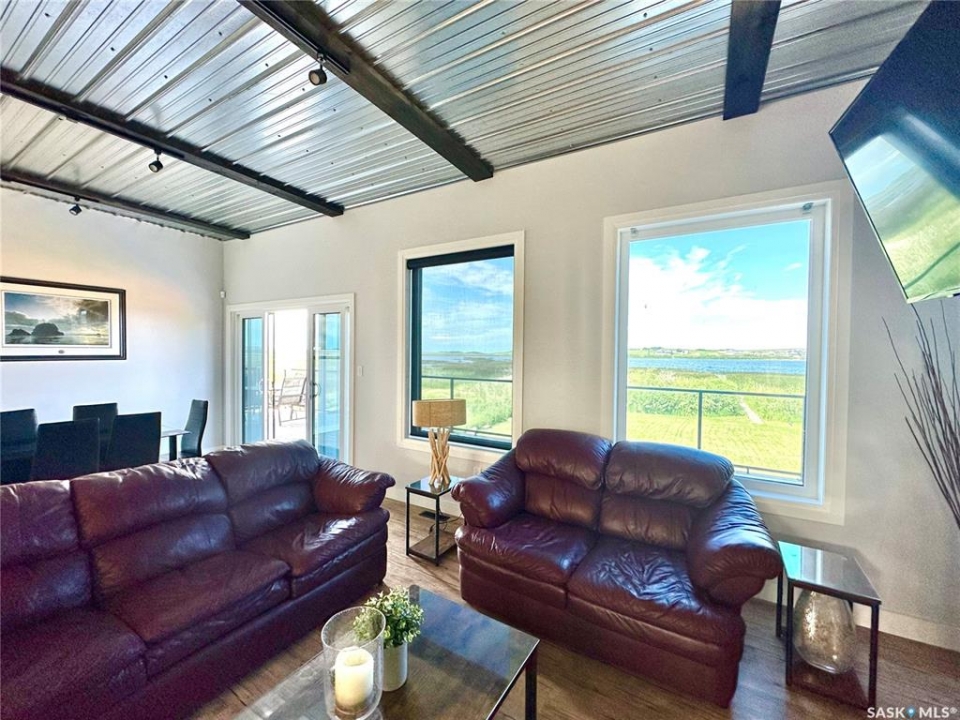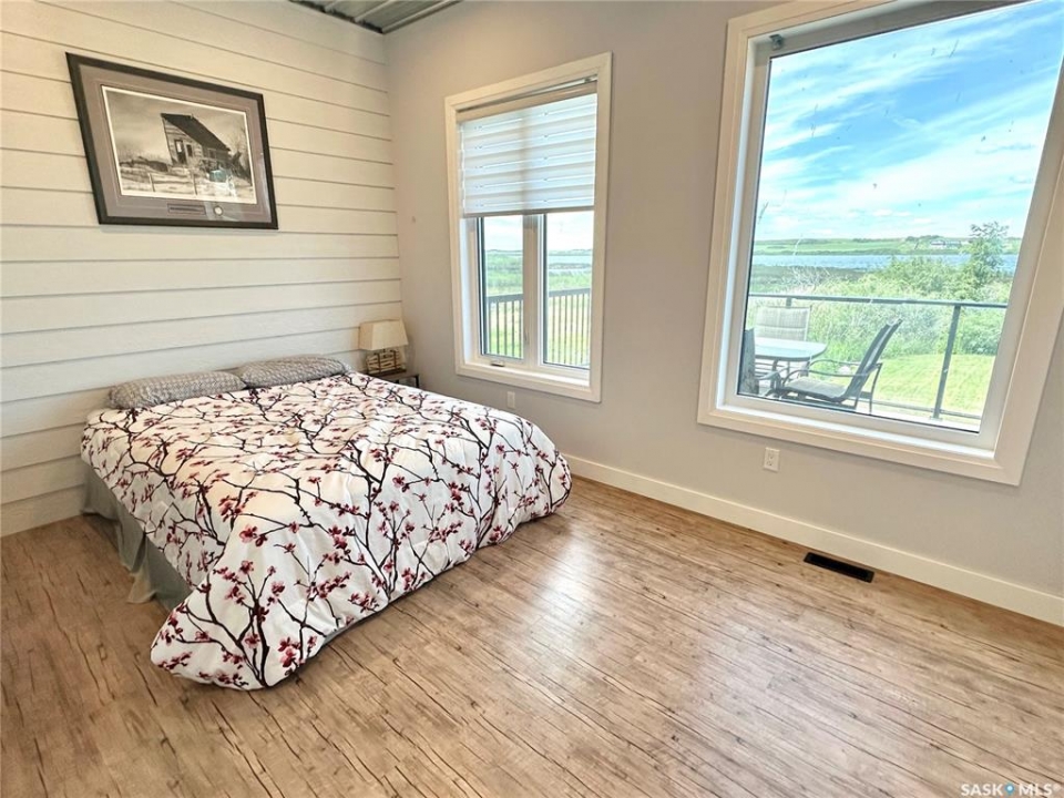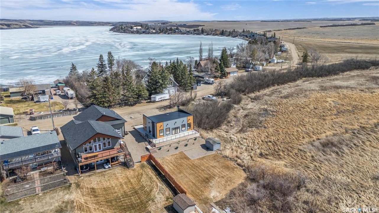 Where modern, high end finishing meets lakefront living. This unique home comes complete with all the upscale extras you'd want and as a bonus it's year-round! This 1200 sq ft 2020 built home was moved onto the large lot with flat frontage in 2023. Step inside and you'll take note of the high, vaulted ceilings, pot lighting, open concept and expansive views of the lake from the large windows. The kitchen is sleek and modern with quartz countertops, stainless appliances and an abundance of storage. The open living room/dining room makes this an ideal place to host family gatherings with plenty of seating space and a cozy fireplace with recessed wood storage. There are two spacious bedrooms and a large 4 piece bathroom. The master bedroom has a walk in closet and lakefront views! The second bedroom is large enough to house 2 queen beds, ideal for guests . This property had a new furnace, hot water on demand and water heater installed when moved onto the lot. Other additional features are the attractive gemstone lighting, large deck with glass railing to enjoy the view and a landscaped yard with space for your family to enjoy. Enjoy the convenience of the nearly maintenance free exterior with metal roofing and metal siding. There is a septic tank and the water is approximately $600.00 annually. Call for your showing on this truly outstanding property today!