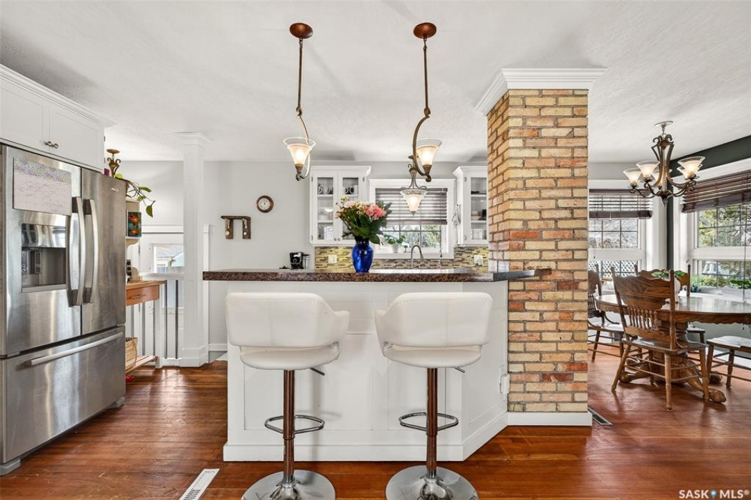 Adorable craftsman style character home located on a stunning tree line street in the heart of Moose Jaw's Avenues! Featuring 2+1 bedrooms, 2 bathrooms, this home is thoughtfully finished inside and out. The main floor has an open concept floor plan with a nice sized living room, kitchen with eat-up island and a cozy dining area showcased by corner windows. Down the hall you will find 2 nice sized bedrooms and a lovely and bright 4pc bathroom. The fully finished basement has a family room which has a gas fireplace and lots of room for a dedicated office or rec space. The spa like bathroom, nice sized bedroom and the tidy and efficient laundry/utility room completes the lower level. Outside, enjoy a tranquil back yard that features mature trees and perennials, garden area, a cool BBQ pergola and endless options to entertain. The double detached garage was designed to extend living space with its garden doors and a roof line that extends to feature a covered patio area! Everything about the back yard has been so wonderfully designed which makes for an incredible space to spend time with your family and friends! Don't miss your opportunity to own this rare and charming home!