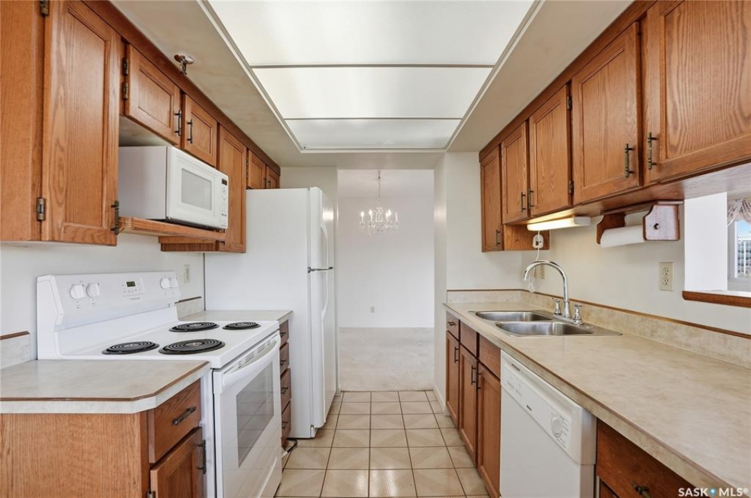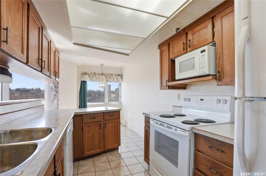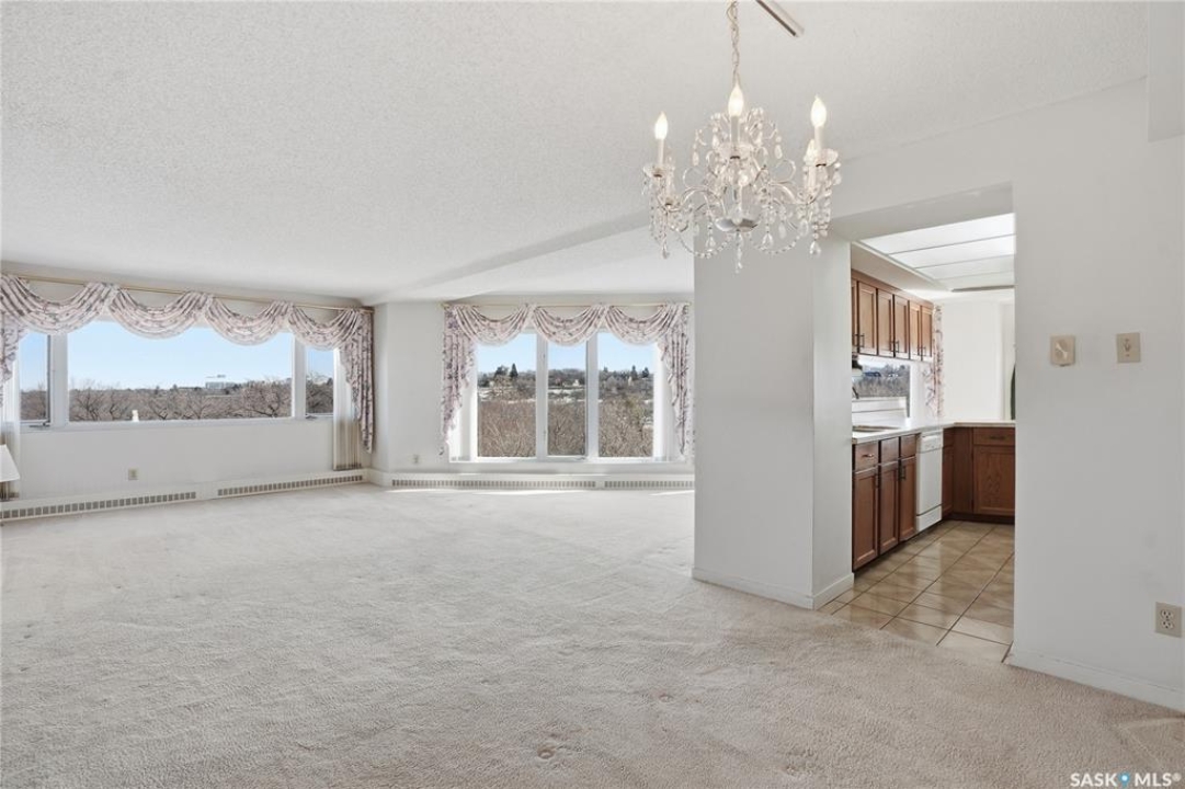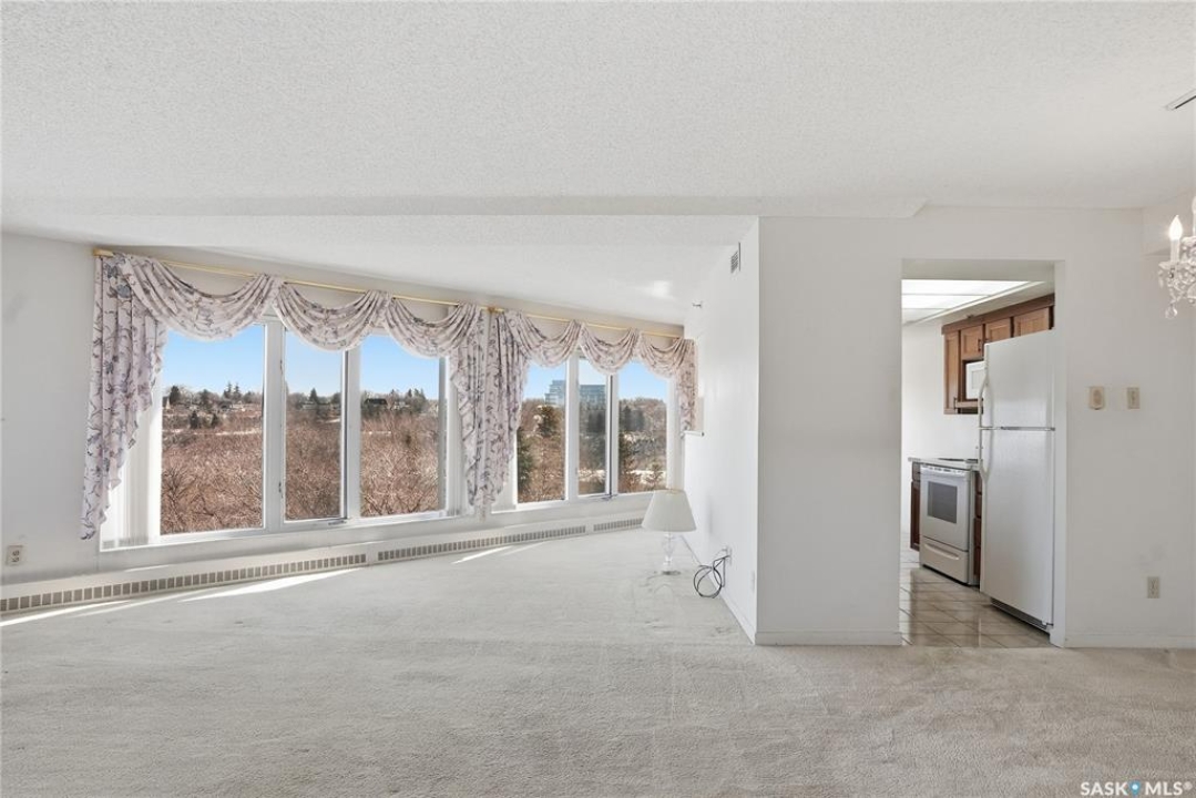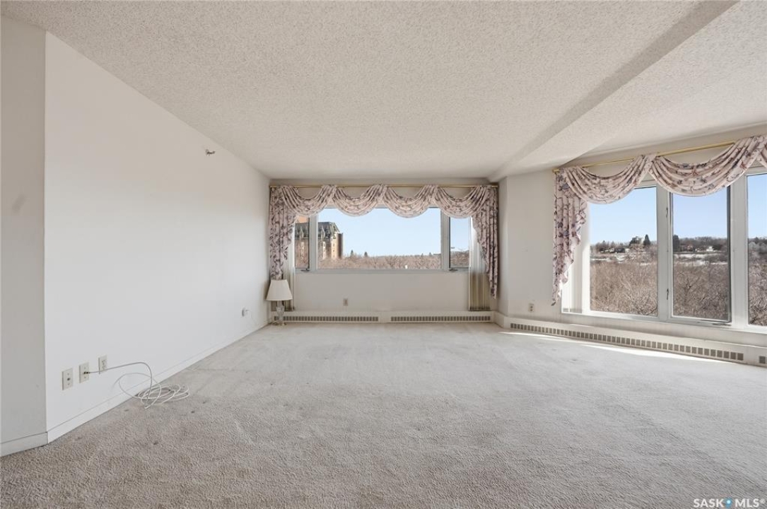 An incredible suite location in Saskatoon's downtown district overlooking beautiful Kiwanis Memorial Park, with views of the river and the historic Delta Bessborough Hotel! Enjoying what is arguably the best floor plan in the building (40), the sun-filled suite offers an east-facing position and nearly 1,200 square ft of architecturally designed space, a large window wall across the entire entertaining area, 2 bedrooms & 2 full bathrooms, formal dining, and impressive views of the Bessborough Hotel from both bedrooms. Whether considering a modest or high-level remodel, this is a most attractive opportunity to renovate a river-front condo to your personal tastes. Additional interior features include a white Oak kitchen, radiant heating, double-wide bedroom closets, tiled kitchen & bathroom flooring, private entry, and in-suite laundry. The Renaissance enjoys a large resident lobby, heated underground parking and storage facilities, an indoor pool, spa & waterslide, gym, and sound reserve fund. This river-front location is within a 5min walk of Broadway and River Landing, and offers the best in daily conveniences and walkable city life with easy access to the downtown's and Nutana's amazing parks, cafés, globally-renowned eateries, and fantastic shopping. Saskatoon's many music, festival sites, and cultural venues also take centre stage in the Summer months in the river valley mere minutes from your door.! The suite comes complete with a full appliance package, 1 underground parking stall, and a heated storage locker (strata fees of $702.50 include heat & water utilities). You are invited to inquire with your local realtor to schedule your private tour. Open House Sun, Apr. 12, 11am-Noon.