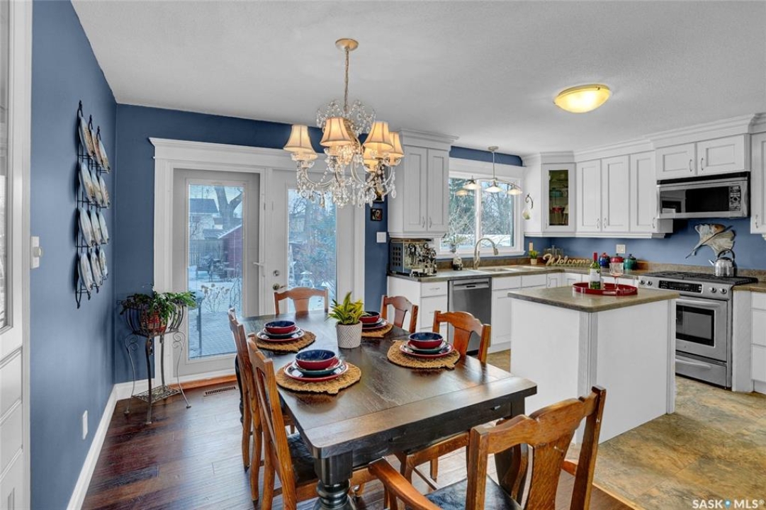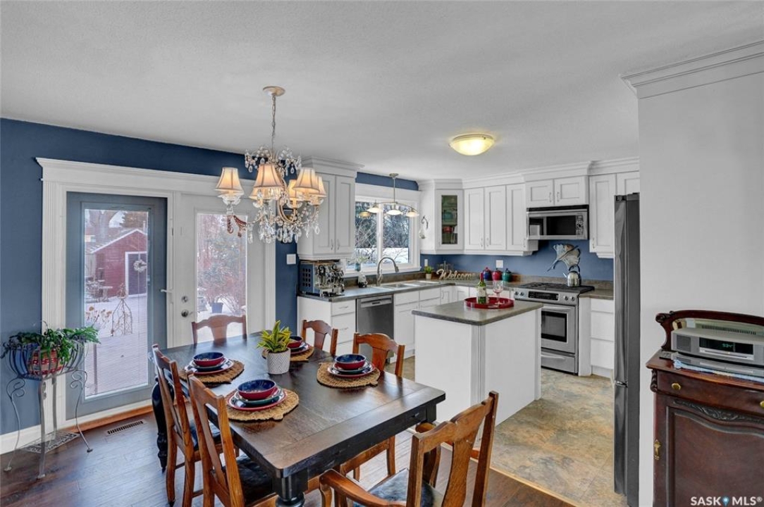 Discover your next home in Sunningdale neighourhood, set on a spacious lot in a quiet crescent close to parks, walking paths, & school. This property offers a setting for family life. Step into the welcoming foyer, showcasing a bright living room w/large picture window that fills the space with natural light, highlighting the hardwood floor extending into the dining area. The updated kitchen boasts antiqued cabinetry, a central island, built ins & patio doors to a deck with a built-in BBQ w/natural gas hookup. On the 2nd floor, find 3 bedrooms, w/the primary suite featuring a 2pc. ensuite & patio doors to a deck complete with a hot tub. A 4pc. bath w/a tub surround & spacious vanity completes this level. The 3rd floor offers fantastic windows, a cozy family room with a wood-burning fireplace, & decorative shelving/cabinetry for ample storage. This level also features a wet bar and extra area currently used for crafts. Also, a laundry & 3pc. bath (needing your final finishes) on this floor. From this level is direct access to the att. single garage adding extra convenience. On the 4th floor, enjoy a theater room w/tiered seating, recliners, & AV equipment (excluding a couple of speakers) included, plus abundant storage and utility space finish this floor. The beautifully landscaped backyard is nearly park like, with a large deck accessible from both the dining area and the primary bedroom. Enjoy mature trees & flower beds creating a relaxing and entertaining space. With updates including shingles, windows, kitchen upgrades, built-in cabinetry, wet bar, & fresh trims/baseboards, this home is nestled in a prime location, waiting for you to make your next move. CLICK ON VISUAL TOUR LINK FOR A TOUR and call today!