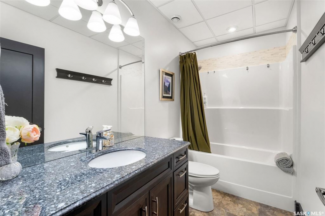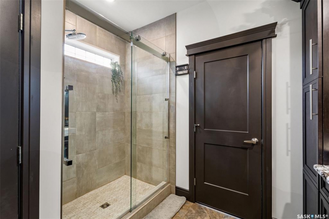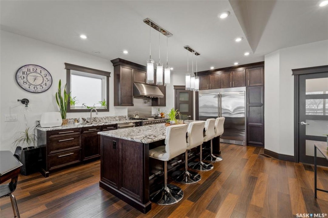 Lakefront Executive Style home at Humboldt Lake! Welcome to this stunning lakefront executive bungalow offering 1,733 sq. ft. of refined living space in a serene and private setting. Elegant Interiors & Gourmet Kitchen: The open-concept main living area features soaring vaulted ceilings and a striking natural gas slate fireplace, creating both warmth and elegance. A chef's dream kitchen awaits with gleaming granite countertops, a large island with seating, and a THOR Professional six-burner gas stove with griddle and pot filler tap. High-end appliances—double drawer dishwasher, ,including a built-in coffee maker, Miele speed oven, Miele espresso/coffee maker , Miele dish warming drawer and a well-planned butler's pantry—make entertaining effortless. Thoughtful Design & Luxurious Details: This home offers five bedrooms and three bathrooms, including a lakeside master retreat complete with walk-in closet and spa-inspired ensuite. A spacious foyer off the 1,000 sq. ft. attached garage with mezzanine sets the tone for style and function, while in-floor heating in both the garage and basement ensures year-round comfort. Outdoor Living & Recreation: The west-facing lot is perfect for evening sunsets, enjoyed from the covered deck with direct basement access. A dedicated sauna room overlooks the 6 person hot tub with waterfall feature, providing the ideal spot to relax after a day on the water. The basement boasts 9 ft ceilings, a large family room, an exercise area, and a versatile sauna/games room. Modern Comfort & Efficiency: Equipped with natural gas forced-air heating and central air conditioning, in floor heat in the basement and garage, this home blends contemporary convenience with lakeside tranquility. Experience the unmatched lifestyle of the Lakefront Executive at Humboldt Lake—where luxury meets comfort at every turn. Call today to arrange your private viewing!