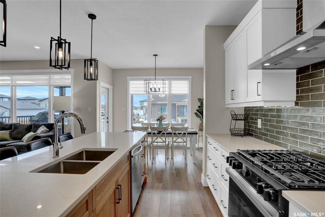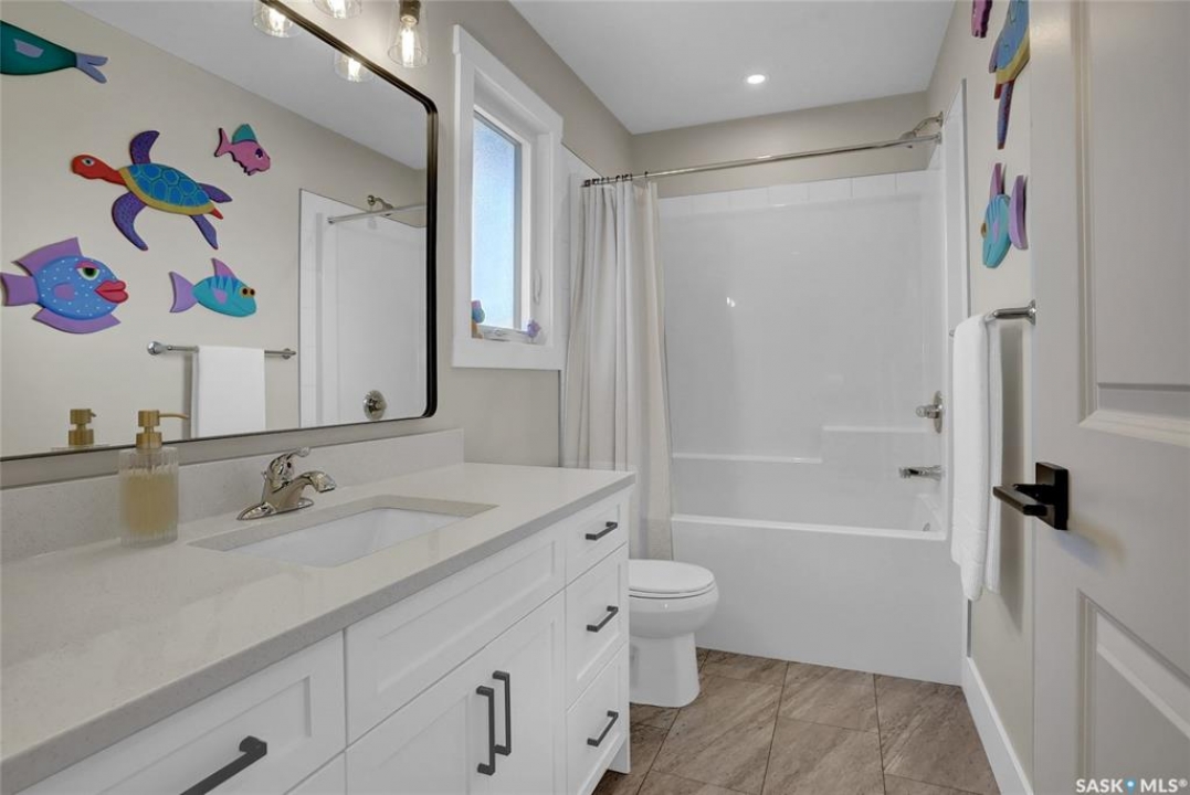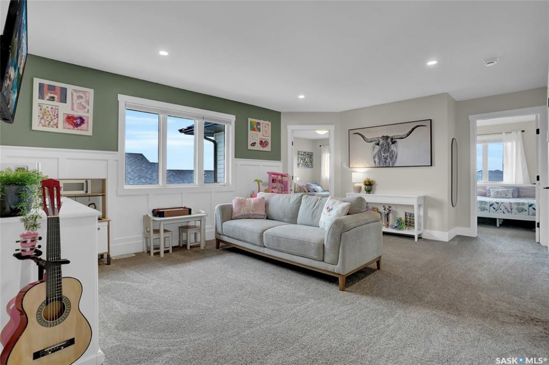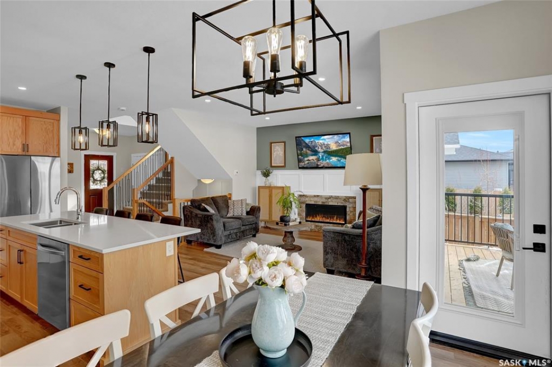 Discover a remarkable family home in the desirable West Park Village neighborhood of Moose Jaw. This property is better than new, fully finished & beautifully landscaped, offering everything a family needs. This home provides ample space, including a bonus family room on the 2nd floor. The open-concept design is illuminated by an abundance of windows, filling the home with natural light. Enter through the inviting front covered steps into a spacious foyer that leads to the main living area. The living room, featuring a cozy gas fireplace, seamlessly connects to a modern kitchen. This chef's haven boasts cabinetry to the ceiling, a gas stove, a corner pantry, and a center island, all adorned with elegant quartz countertops. Adjacent to the dining area, step out onto the covered deck, complete with durable composite decking, perfect for future screening to provide indoor/outdoor living. The main floor also includes a convenient 2pc. bath & a mudroom designed for family life. Upstairs, you'll find 3 bedrooms, including a luxurious primary suite w/5pc. ensuite including a soaker tub & a generous walk-in closet. The expansive bonus room is ideal for adapting to your family's needs & the floor also features a 4pc. bath & well-appointed laundry room w/cabinetry, counter, and sink. The lower level is perfect for family movie night, with a family room, 2 additional bedrooms, a 4pc. bath, and excellent storage all w/impeccable finishes. The oversized Dbl. Att. garage is insulated & heated, providing ample space for vehicles and more. Outside, the yard is a haven with a covered deck, composite decking, natural gas BBQ hookup & newly landscaped yard & fenced. This fantastic family home is located just steps from park and walking paths, this dream home in West Park Village is a place to love and live beautifully. Remaining Home Warranty will be transferred. CLICK ON THE MULTI MEDIA LINK FOR A VISUAL TOUR and call today for your personal viewing.