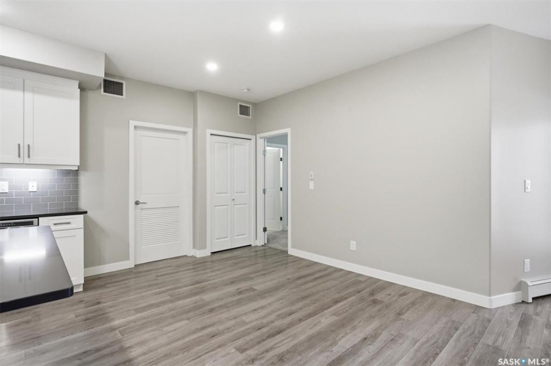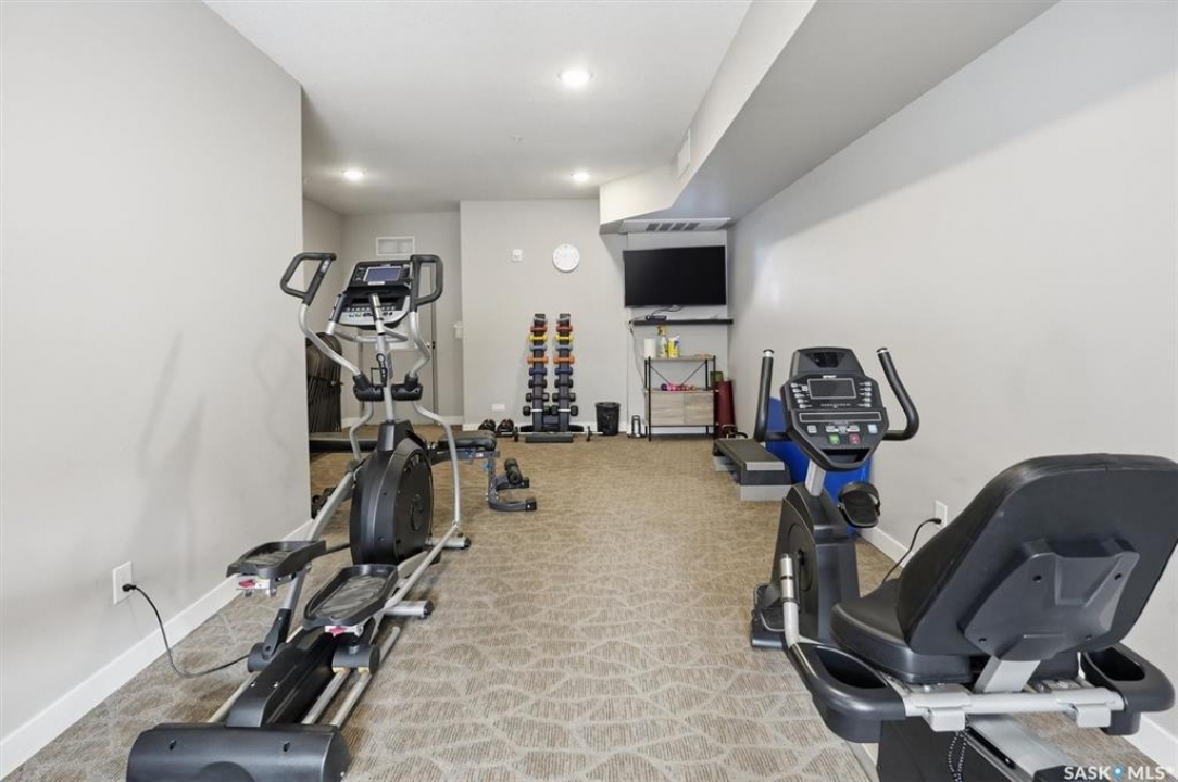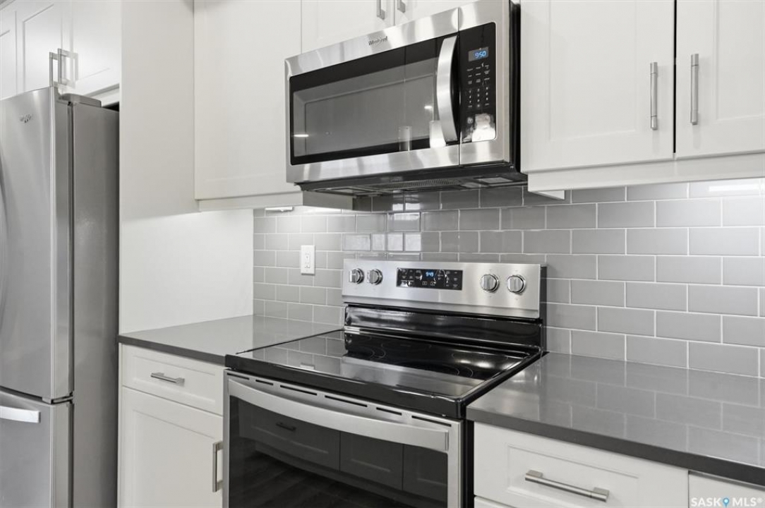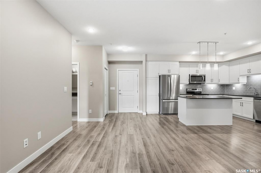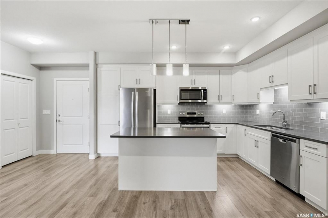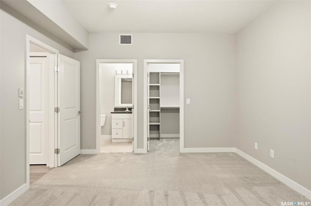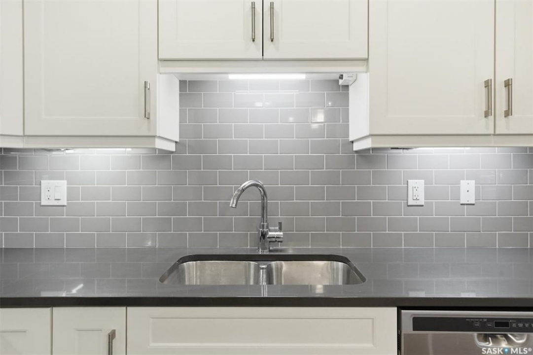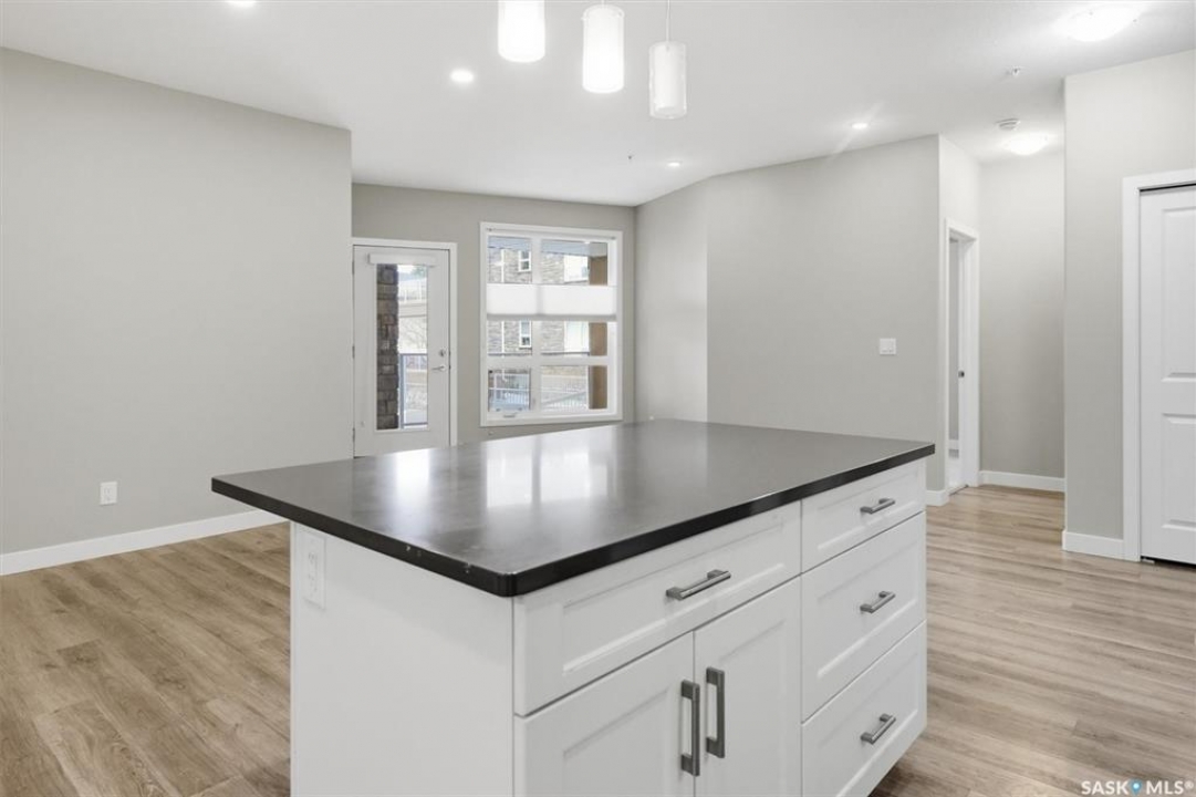 Experience easy living in this well-appointed 2-bedroom condo in The Bentley, a sought-after River Heights complex. The bright, open-concept layout centres around a stylish kitchen featuring quartz countertops, tile backsplash, soft-close cabinetry, under-cabinet lighting, and 4 stainless steel appliances. A pantry cabinet with rollout drawers adds functional storage, while the eat-up island is perfect for casual meals. There's ample space for both a dining table and additional furniture without feeling crowded. The living room is warm and inviting, with oversized windows, up/down blinds, and dimmable pot lights. Garden doors lead to a large covered balcony with natural gas BBQ hookup—ideal for summer evenings. The spacious primary bedroom is complemented by a 3-piece ensuite, while a second bedroom and full 4-piece bathroom offer flexibility for guests or a home office. A dedicated laundry room with washer and dryer adds everyday convenience. Additional features include one underground parking stall and a heated storage unit in the parkade. Residents enjoy access to a fitness centre, amenities room, and guest suite for overnight visitors. Located just steps from the river and walking paths, and close to shopping, dining, and transit—this is low-maintenance living in a prime location. Perfect for downsizers or investors looking for a solid, well-designed property. Some photos are virtually staged.