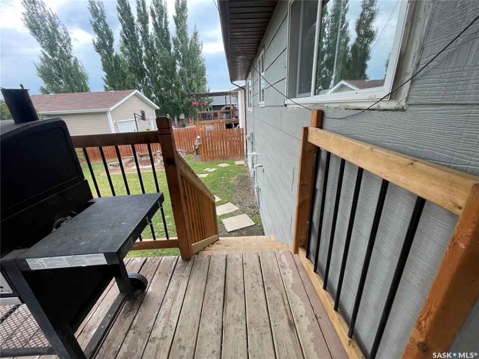 Welcome to 31 O'Connor Crescent in the desirable Rosedale subdivision of Kindersley, Saskatchewan! This charming five-bedroom, two-bathroom home is move-in ready and awaiting its new owners. As you step through the front door of this bi-level home, you'll find yourself on the main floor, which boasts an updated kitchen featuring beautiful white cabinets, new countertops, and a spacious island with seating for your family, alongside ample space for a dining table. This open-concept area flows seamlessly into the living room, illuminated by large windows that invite abundant natural light. Garden doors lead out to a lovely covered deck, perfect for outdoor enjoyment. Down the hall, you'll discover three comfortable bedrooms, including a generously sized master bedroom that offers a convenient cheater door to the main bathroom. This four-piece bath has been updated with a new toilet, tub, cabinets, and fresh paint. The lower level provides additional living space with two good-sized bedrooms and a renovated three-piece bath, complete with a new shower, flooring, vanity, and toilet. You'll also find a large living room and a bonus room situated directly off one of the bedrooms. A spacious utility room houses the washer/dryer, furnace, water heater, sump pump, and a water softener (currently not in use). The expansive 6400 sq. ft. yard offers plenty of grassy area for children to play, along with a shed tucked behind a shrub line. This home has received numerous updates over the years, ensuring comfort and peace of mind: * **Furnace and Central Air:** 2016 * **Shingles:** 2013 * **Living Room/Dining Space Insulation:** Updated * **Water Tank:** 2019 * **Deck Railing:** 2019 * **Deck Stairs:** 2023 * **Windows:** Almost all windows have been updated between 2017 and 2023. Call your realtor to view today!