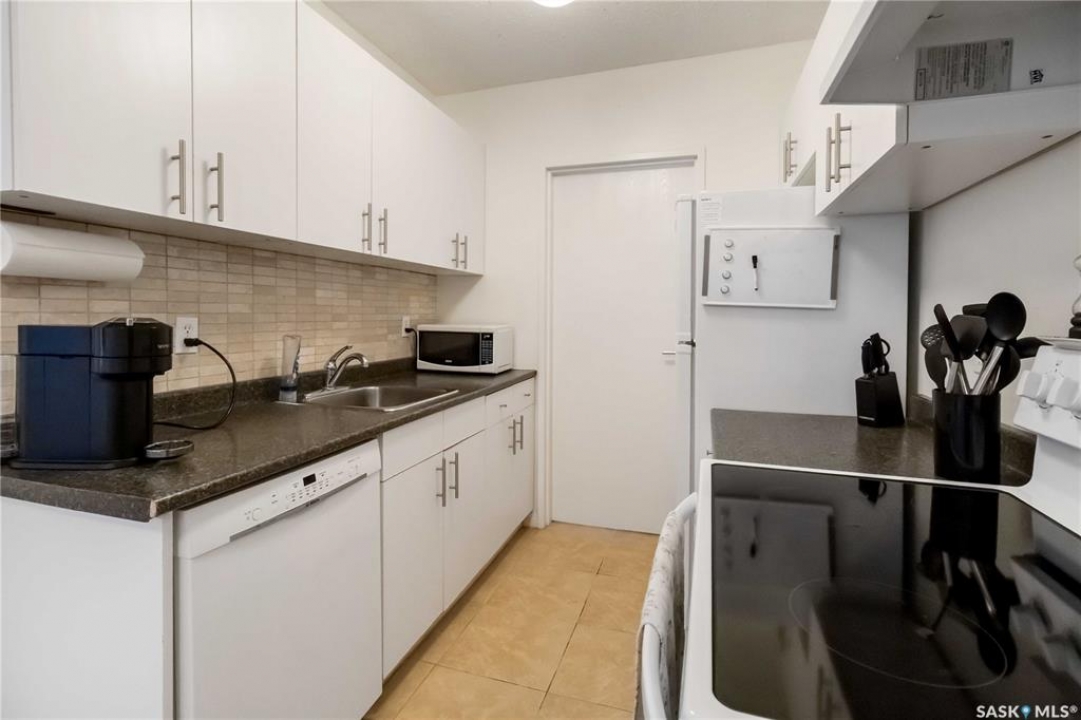 Welcome to this beautifully maintained top-floor condo in the popular Wildwood neighborhood. Perfect for first time buyers, students and investors. This bright and inviting 2-bedroom, 1 bathroom unit offers a functional layout with a warm west-facing exposure, filling the space with natural light and the perfect setting to enjoy sunsets on your updated balcony. The home has seen numerous updates including newer windows, an upgraded kitchen and 4-piece bathroom. You will appreciate the spacious bedrooms and large closets with built-in organizers. The open layout living and dining area offers plenty of room for a kitchen table. The large in-suite storage room/laundry room features a full size washer and dryer, adding both convenience and extra space. Condo fees include water, heat, common insurance, reserve fund, snow removal, lawn care and janitorial services. The condo backs walking paths, Wildwood golf course and is steps to Lakewood Civic Centre as well as many amenities on 8th Street.