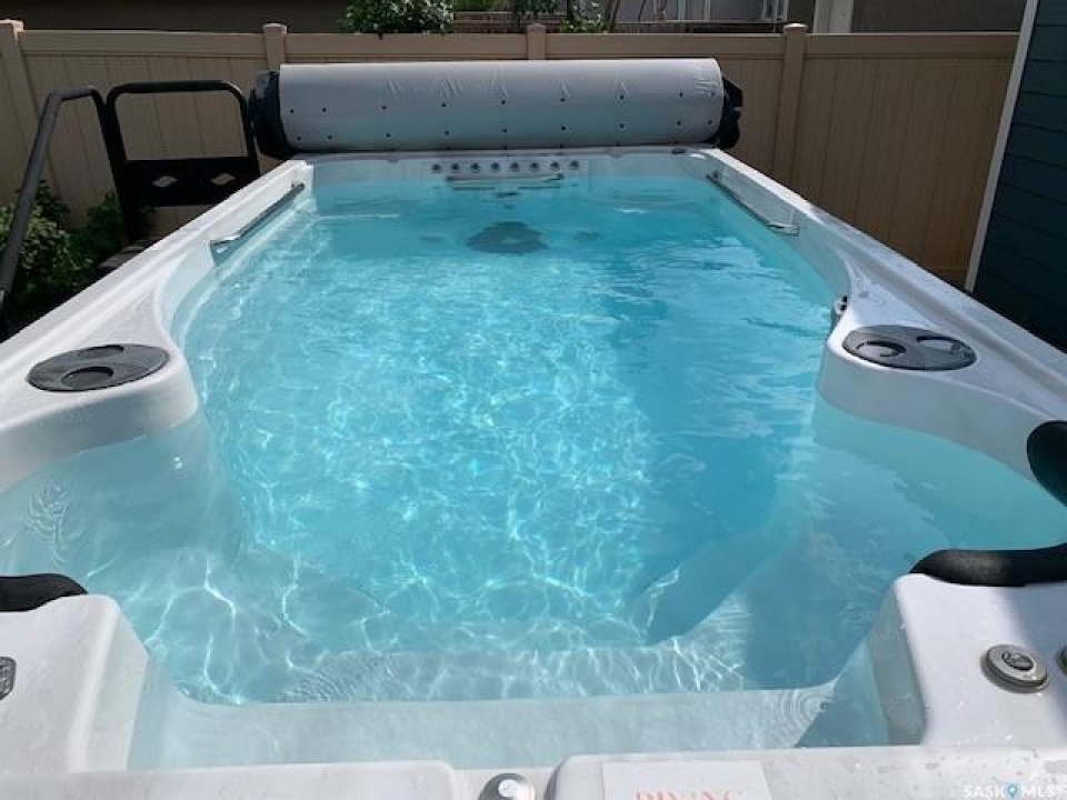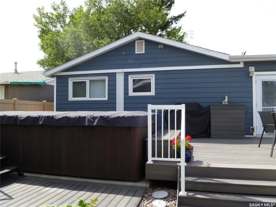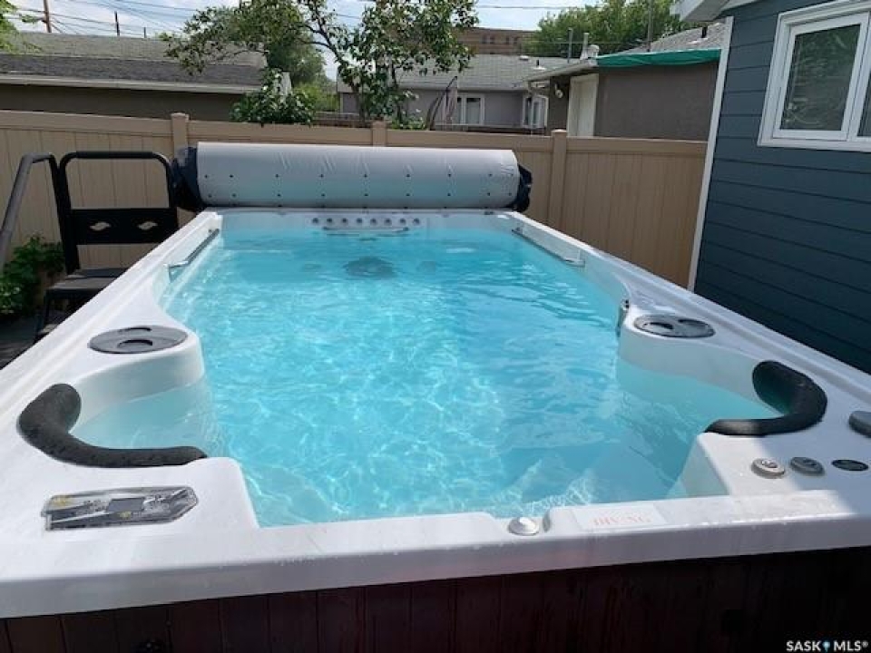 Welcome to this excellent, move-in ready bungalow, boasting a stunning backyard Hydropool Swim Spa! The main floor offers three comfortable bedrooms, a stylish IKEA kitchen outfitted with custom-cut granite countertops, a spacious great room, and a renovated bathroom. Enjoy modern updates throughout, including new flooring, windows and doors, and newer appliances. Downstairs, you'll find a laundry and mechanical room, an office and den, a large three-piece bathroom with updated shower, and a spacious family room complemented by a dedicated storage space. Upgrades in this area include windows, luxury vinyl tile flooring, flame retardant ceiling and a 200 amp electrical panel. The high-efficiency furnace, installed in December 2025, comes with transferrable warranties. OUTDOOR EXPERIENCE: Step through the garden doors from the kitchen onto a maintenance-free composite deck, ideal for relaxing beside the impressive Hydropool Swim Spa. The versatile pool is a true showpiece. It can serve as a peaceful water feature, complete with lights and a Bellagio fountain, or a hot tub that comfortably fits eight or more adults, or a refreshing pool for casual swims and play in cooler water. It can also be used to lane swim, turn on the jets and there are two lanes for swimming! This well-maintained home also has numerous exterior enhancements that contribute both to its curb appeal and functionality. Exterior upgrades include application of insulation and Hardy Board siding, plus soffits, facia and eavestroughs. The property has no maintenance vinyl fencing plus hardscaping of front and back yards, front with perennials. Updates to the double detached garage include a steel garage door and opener, exhaust fan and 220 volt plug. In addition, the alley and yard along the fence have been planted with strawberries and there are several raspberry bushes beside the garage. Excellent property, close to schools, U of S, shopping, 8th Street amenities and has easy access to Circle Drive!