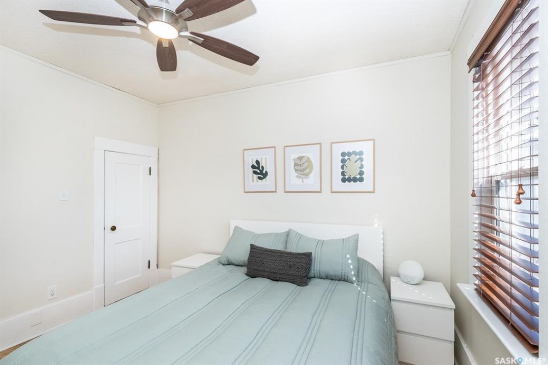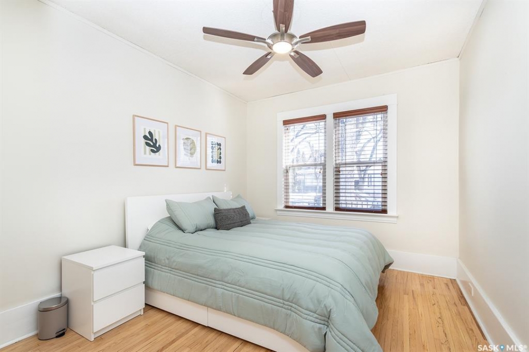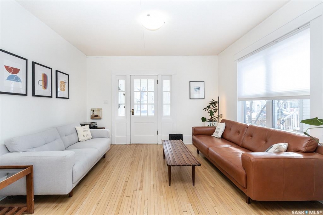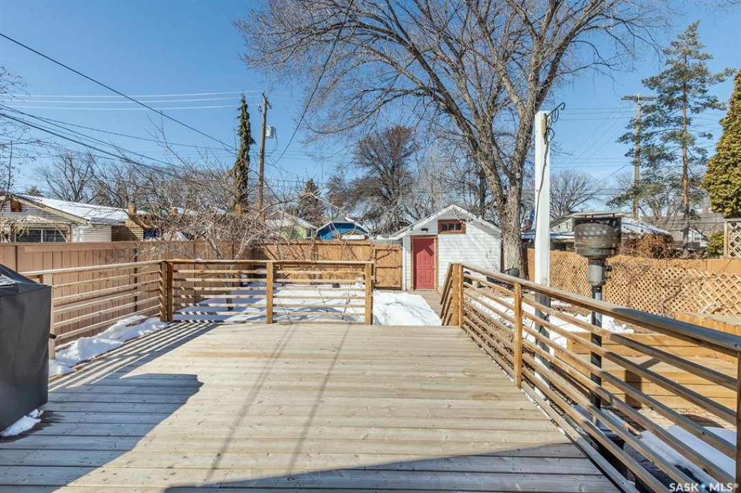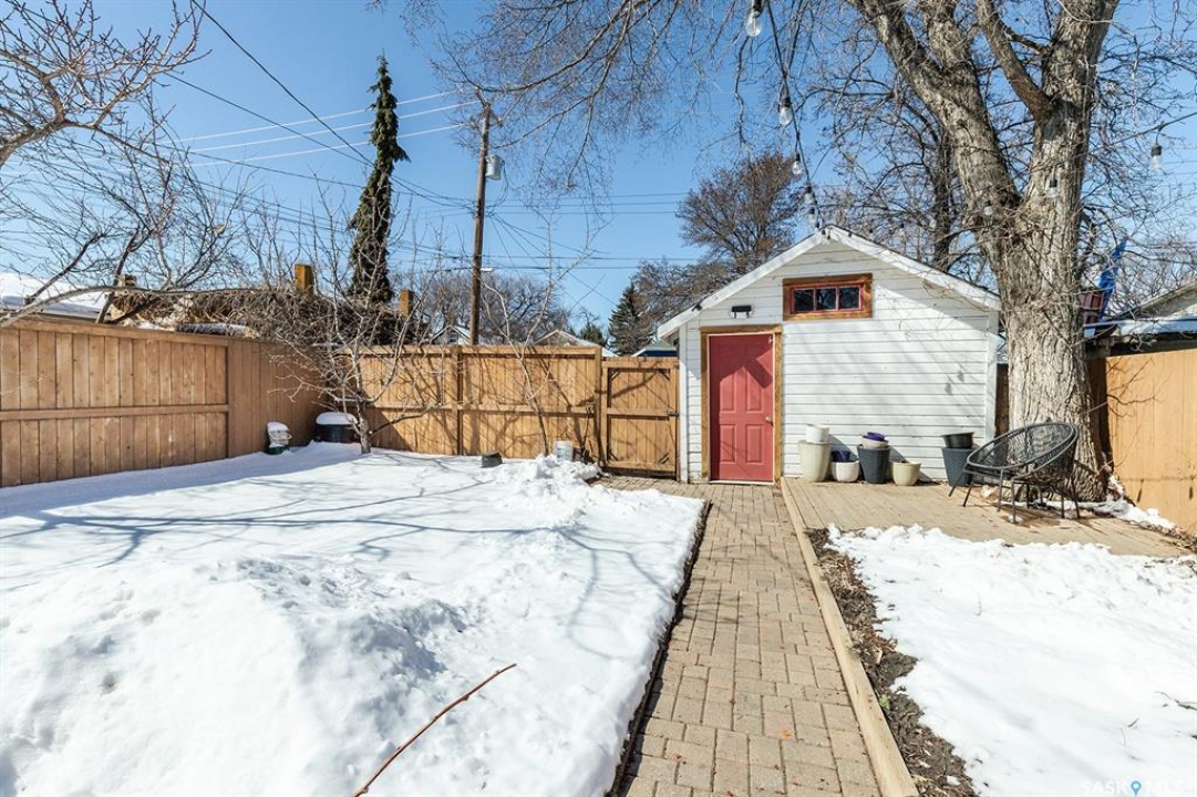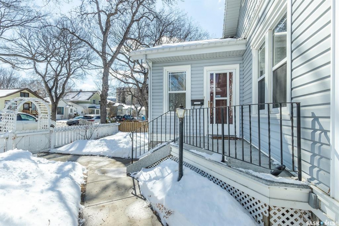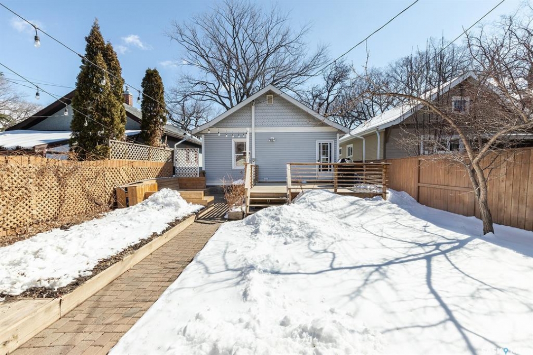 This super cute, updated bungalow is fully developed and conveniently located in the heart of City Park near downtown, hospitals, the U of S and riverbank walking trails. With 931 square feet (plus the spacious porch) this home is a good size. The porch has large windows that let lots of light into the living area & is very functional with attractive built in seating and shelving for footwear etc. Open floor plan on main with refinished hardwood flooring. Kitchen has been updated with maple cabinetry, quartz countertops, tile backsplash, stainless steel appliances and eat up bar. There are 2 spacious bedrooms on the main; one has walk in closet. The main bathroom has a clawfoot tub with a shower. The basement is very functional and has lots of good sized windows and full height ceiling. There is a laundry room with a window, cupboards, sink & stacking washer/dryer, a den with a window that is currently used for storage, updated 3 pice bathroom with a shower, large L shaped family room has newer carpet and a nook that is a good spot for an extra bed or work out area. Updated electrical and plumbing, city water line 2017/18, newer air conditioning unit, windows, furnace, hot water & shingles. Huge deck in backyard has newer flooring and railing & natural gas BBQ hookup. Sellers recently added a cozy patio area with paving stones and seating area. Yard is fully fenced with garden space and detached single garage (used for storage) and double concrete pad for extra parking on the back. All appliances (including stand up freezer in basement) and window coverings are included. This home is very well cared for and ready for the next owner to enjoy! Offer presentation Tuesday, April 14 @ 7:30 PM.