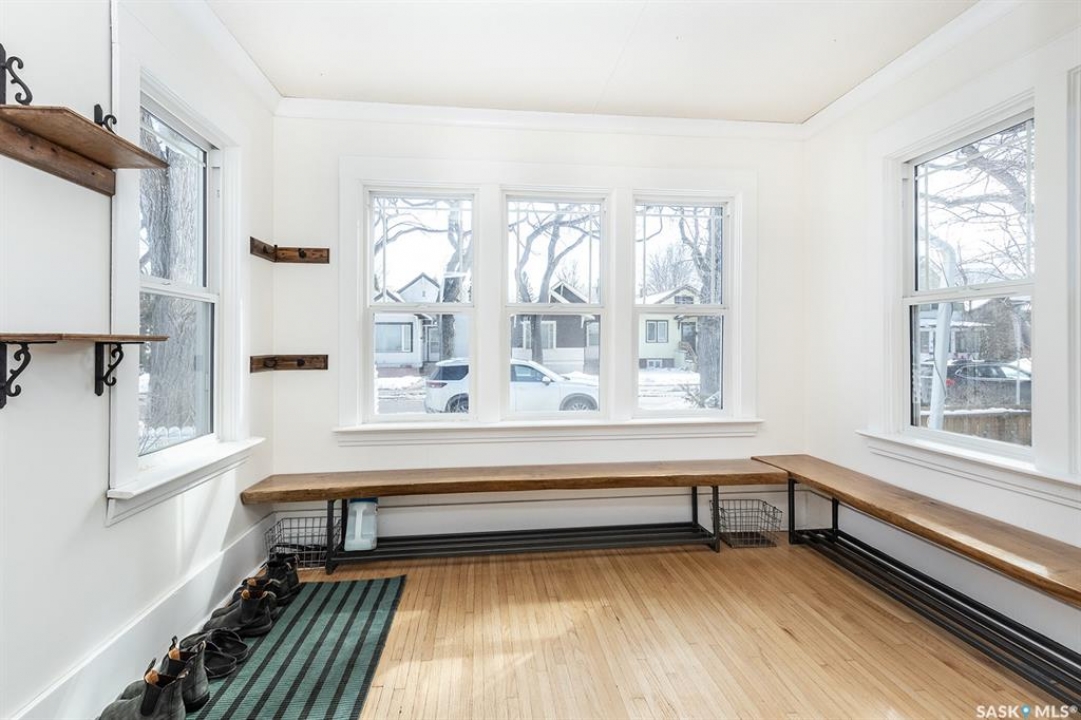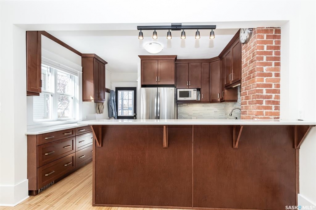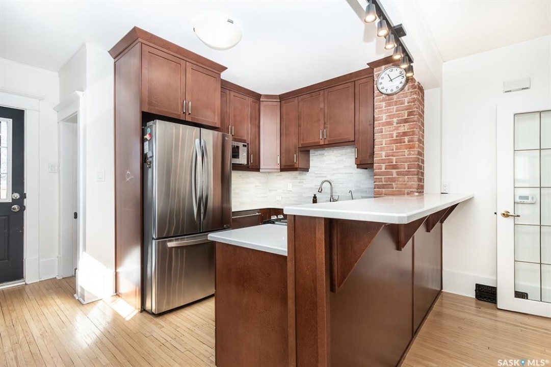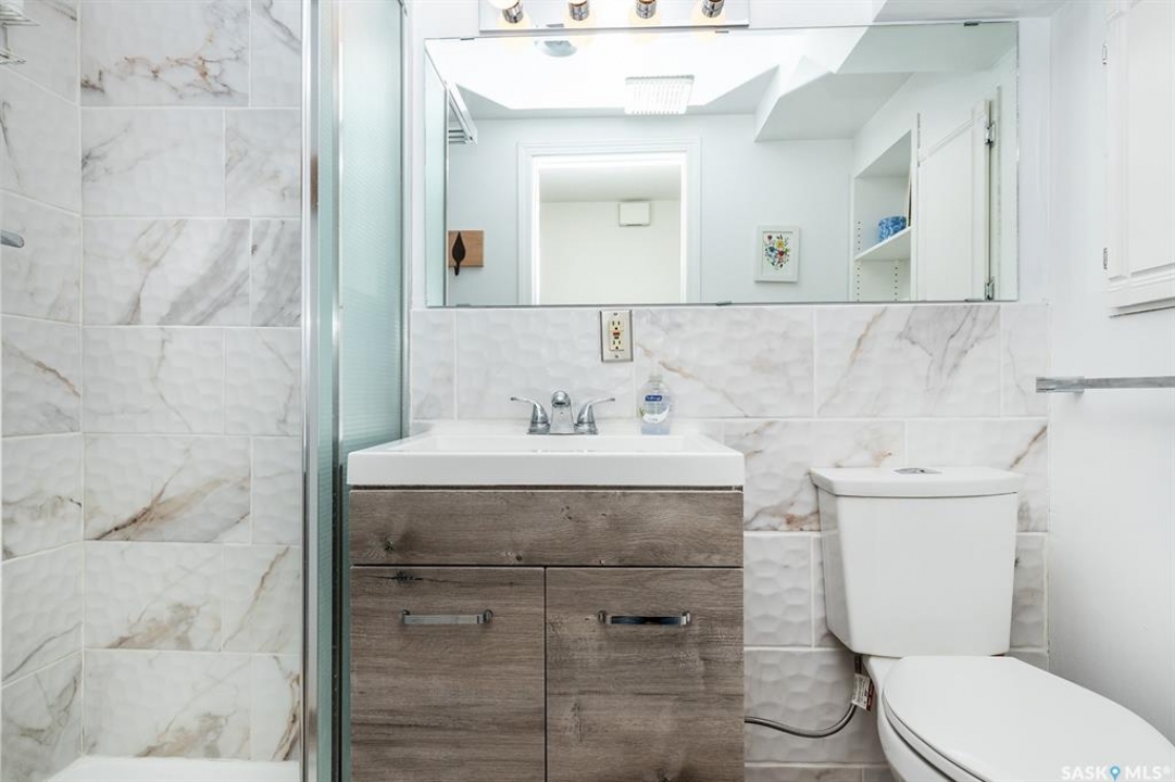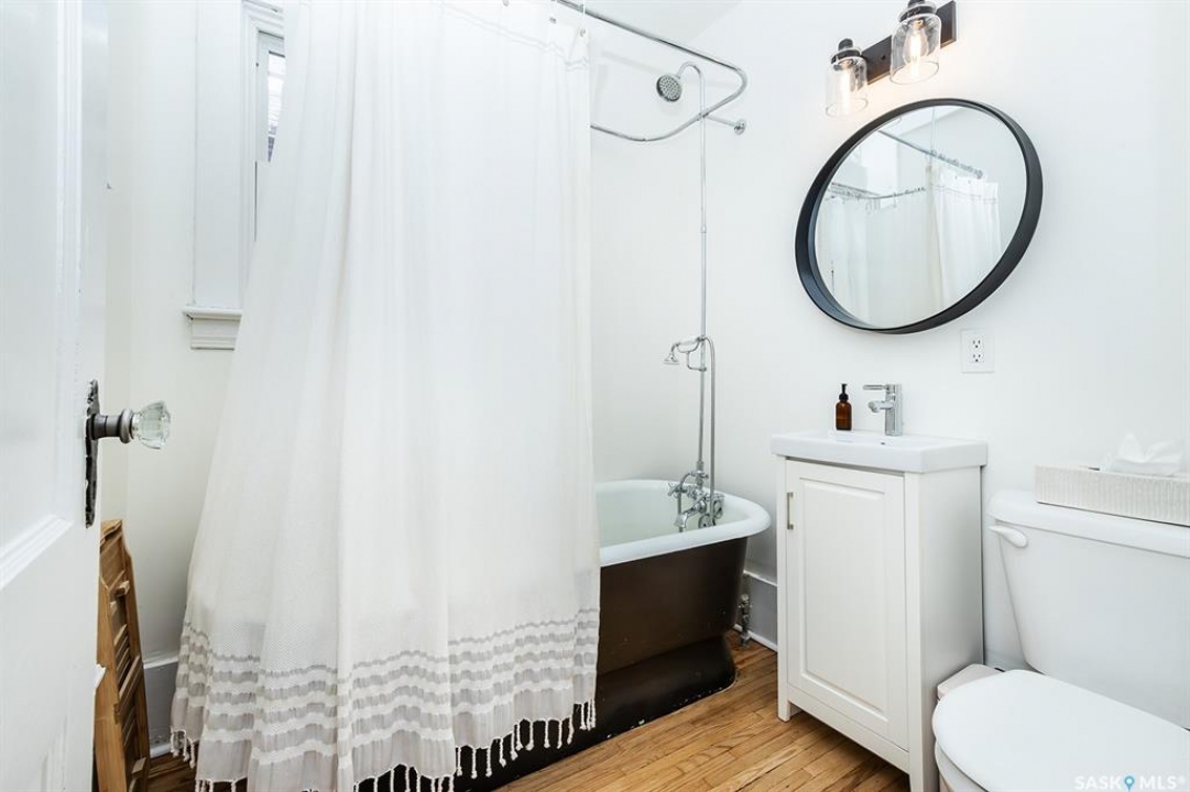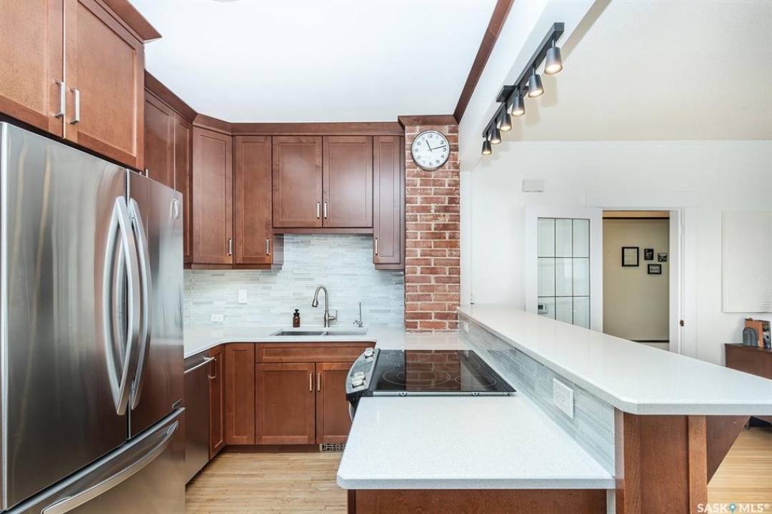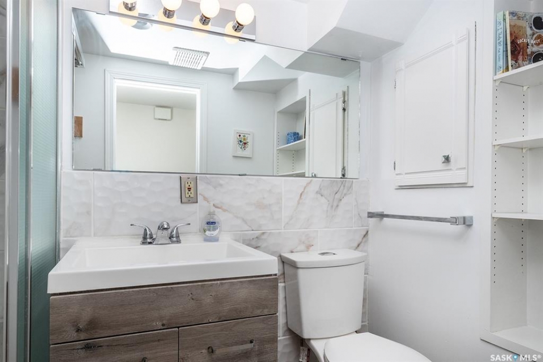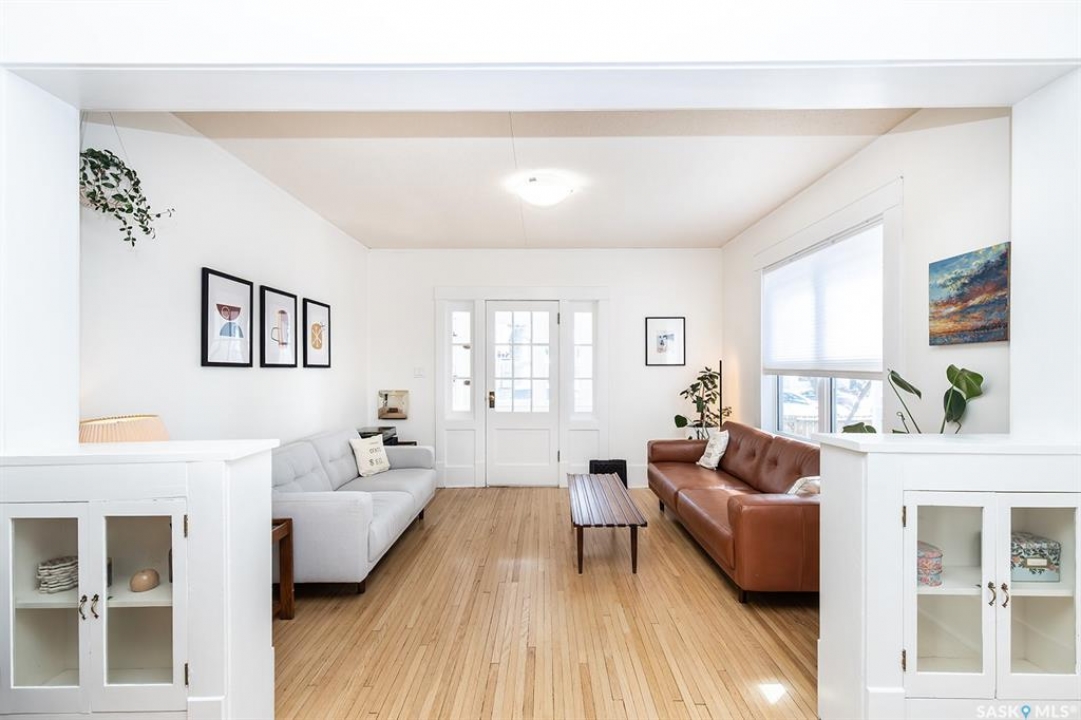 This super cute, updated bungalow is fully developed and conveniently located in the heart of City Park near downtown, hospitals, the U of S and riverbank walking trails. With 931 square feet (plus the spacious porch) this home is a good size. The porch has large windows that let lots of light into the living area & is very functional with attractive built in seating and shelving for footwear etc. Open floor plan on main with refinished hardwood flooring. Kitchen has been updated with maple cabinetry, quartz countertops, tile backsplash, stainless steel appliances and eat up bar. There are 2 spacious bedrooms on the main; one has walk in closet. The main bathroom has a clawfoot tub with a shower. The basement is very functional and has lots of good sized windows and full height ceiling. There is a laundry room with a window, cupboards, sink & stacking washer/dryer, a den with a window that is currently used for storage, updated 3 pice bathroom with a shower, large L shaped family room has newer carpet and a nook that is a good spot for an extra bed or work out area. Updated electrical and plumbing, city water line 2017/18, newer air conditioning unit, windows, furnace, hot water & shingles. Huge deck in backyard has newer flooring and railing & natural gas BBQ hookup. Sellers recently added a cozy patio area with paving stones and seating area. Yard is fully fenced with garden space and detached single garage (used for storage) and double concrete pad for extra parking on the back. All appliances (including stand up freezer in basement) and window coverings are included. This home is very well cared for and ready for the next owner to enjoy! Offer presentation Tuesday, April 14 @ 7:30 PM.