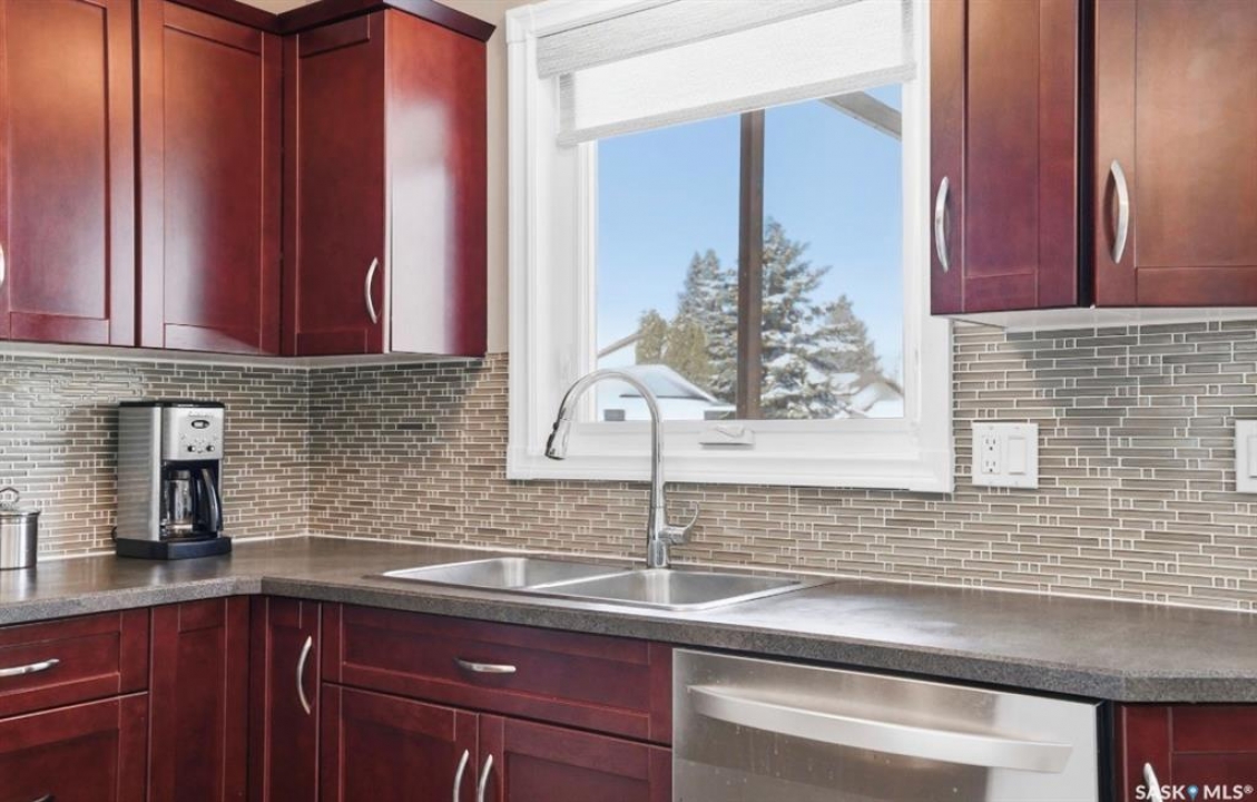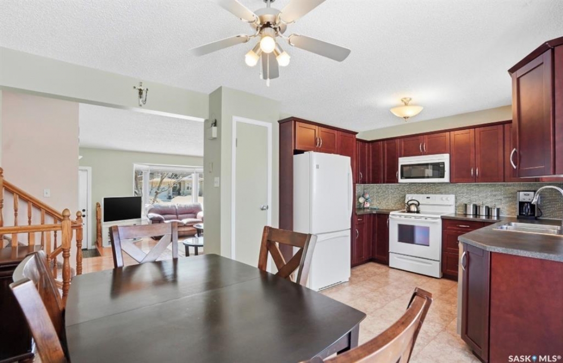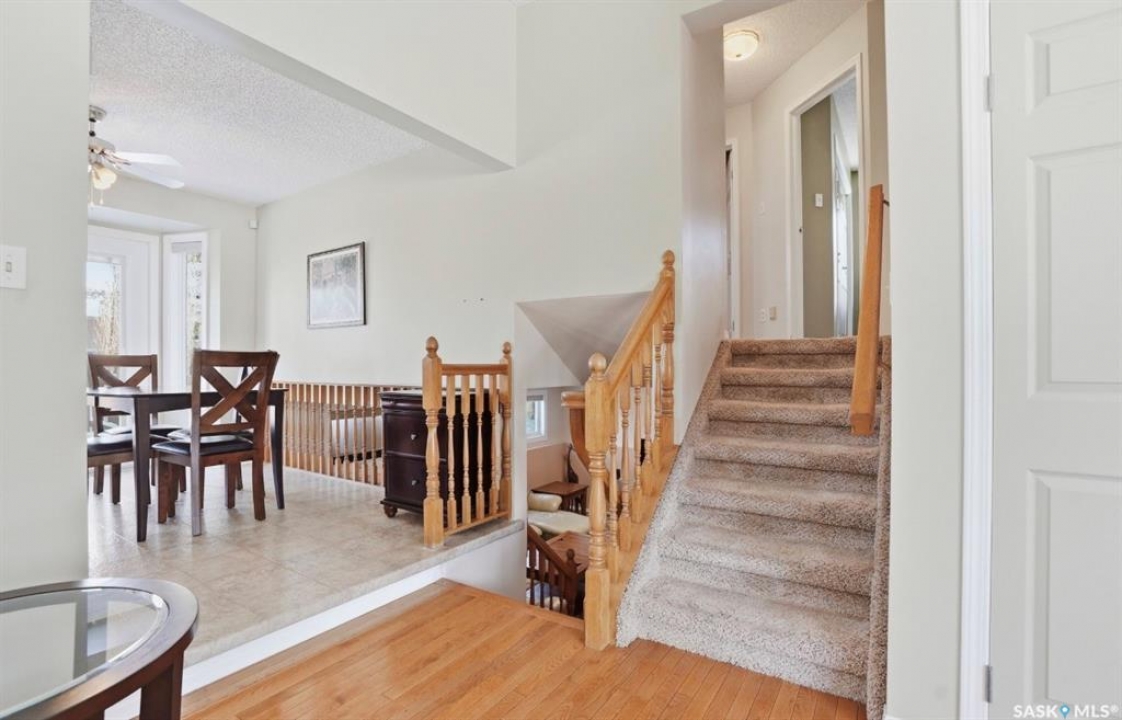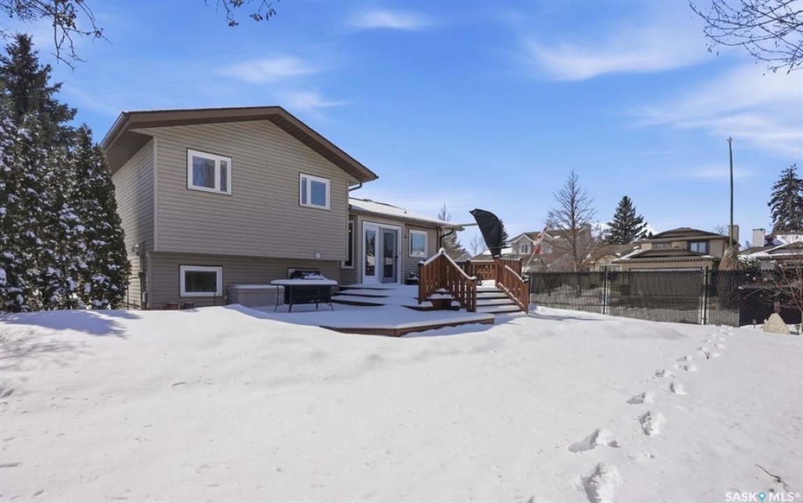 Fully developed four-level split located in the beautiful community of LakeRidge, set on a desirable corner lot on a quiet crescent. This extremely well-maintained family home offers 1,011 sq. ft. on two levels, PLUS TWO MORE additional fully developed levels providing exceptional living space. The exterior presents beautiful, manicured landscaping that truly stands out in the neighbourhood. This yard is the envy of the neighborhood! Inside, you're welcomed into a bright, spacious living room featuring hardwood flooring and a large front window, flowing into the updated kitchen with solid classic wood cabinets and dining area. From here, enjoy views of the backyard, complete with a newer two-tier treated deck—perfect for summer barbecues and family gatherings. The upper level offers three spacious bedrooms and an updated four-piece bathroom with a one- piece tub surround. Just a few steps down from the main, the third level features a very spacious family room and games area with large raised windows that bring in plenty of natural light, along with an additional three--piece bathroom—an ideal space for relaxing or entertaining. There is even more space in this home! The fully developed fourth level includes three finished rooms, currently used as a laundry area, den, and office, along with additional storage and utility space. This home has been lovingly maintained and includes numerous updates: underground sprinklers (front and back), maintenance-free fencing, fabulous two-tier deck, furnace (2008), hot water tank (2008), central air (2005), central vacuum (never used), shingles (2011), replaced windows (2020), updated kitchen (2012), and hardwood flooring in the living room and hall. An excellent opportunity to own a fully developed home in one of Saskatoon's (eastside) established and desirable areas with two excellent schools close by, and parks, shopping and restaurants. Presentation of offers Monday Apr 13, 5:00 PM.