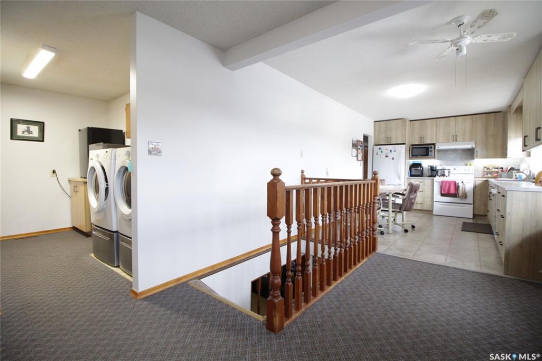 Welcome to this spacious and well-maintained 4 bedroom/2 bathroom home offering the perfect blend of comfort, functionality, and location. Situated on a large lot in a highly desirable area; close to the schools and daycare. This property is ideal for families! The main level features a large entrance, main floor laundry, and a beautifully updated kitchen with an abundance of counter and cupboard space. Down the hall you'll find 3 bedrooms along with an updated 3pc bathroom. Recent exterior updates, including shingles and siding, add to the home's overall curb appeal. The fully developed basement offers excellent additional living space with a cozy family room, a rec room complete with a bar, an additional bedroom, a 3-piece bathroom, and a cold room—perfect for storage. There's also a double attached garage along with a detached heated workshop, providing ample space for projects, tools, and toy storage. Outside, enjoy a nicely landscaped yard featuring a patio—perfect for relaxing or entertaining. Additional BONUSES include central air conditioning, central vacuum, and NEW dishwasher. This is a fantastic opportunity to own a well-cared for home in a prime location!