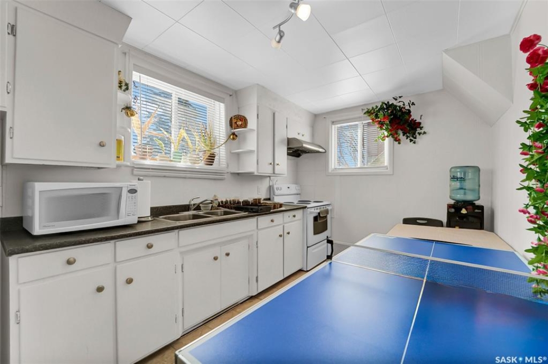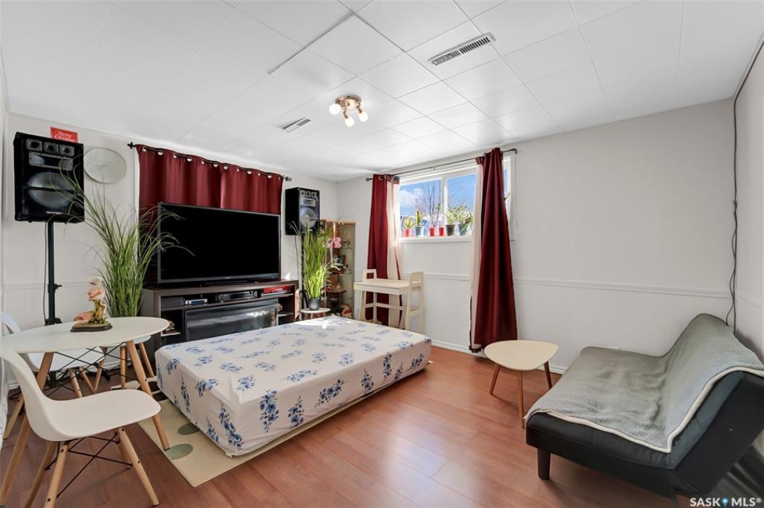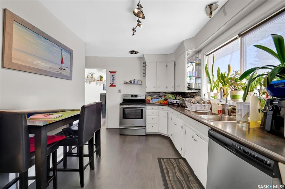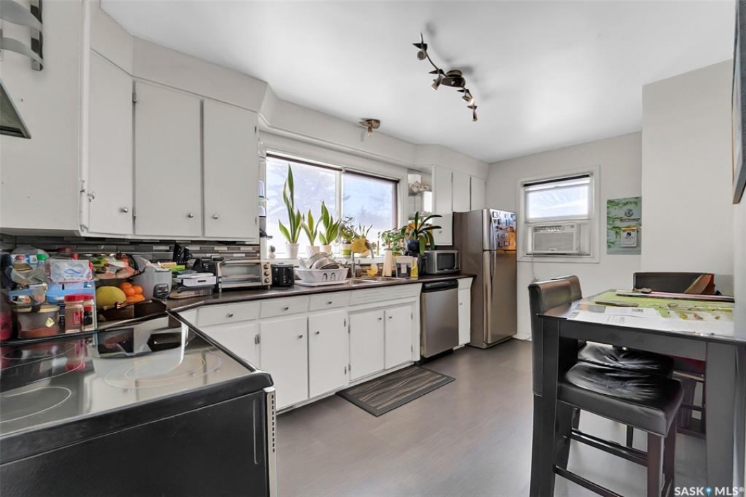 768 Sq Ft Raised Bungalow with Legal Suite + Double lot – Excellent Income Potential! This well-maintained home offers a fantastic opportunity for homeowners or investors alike, featuring a fully legal basement suite to help offset your mortgage. The kitchen showcases a modern glass tile backsplash, newer vinyl plank flooring, and stainless steel appliances. The main level also offers a spacious living room, an updated 4-piece bathroom, and two generously sized bedrooms. The primary bedroom includes patio doors that open onto a balcony overlooking the backyard. Step outside to a beautifully set-up yard, perfect for entertaining, complete with a large pressure-treated deck and a sunny west-facing exposure on a 50' x 125' lot. The basement features a separate entry leading to a well-designed 1-bedroom legal suite, complete with large windows, a comfortable living area, full kitchen, bedroom, and a 4-piece bathroom—ideal for rental income or extended family.