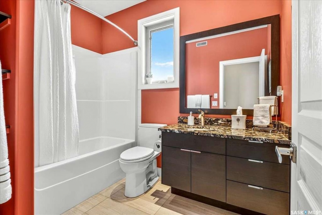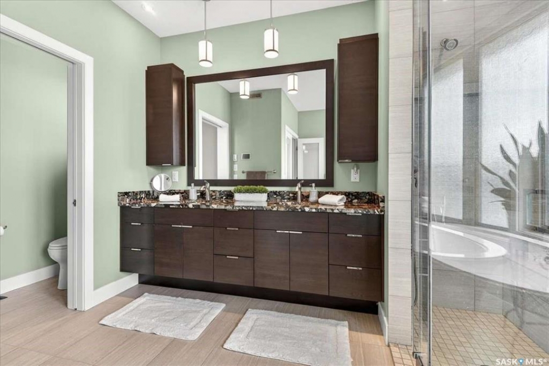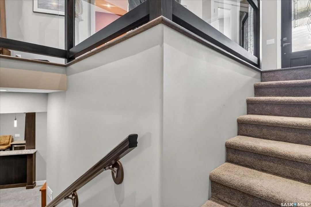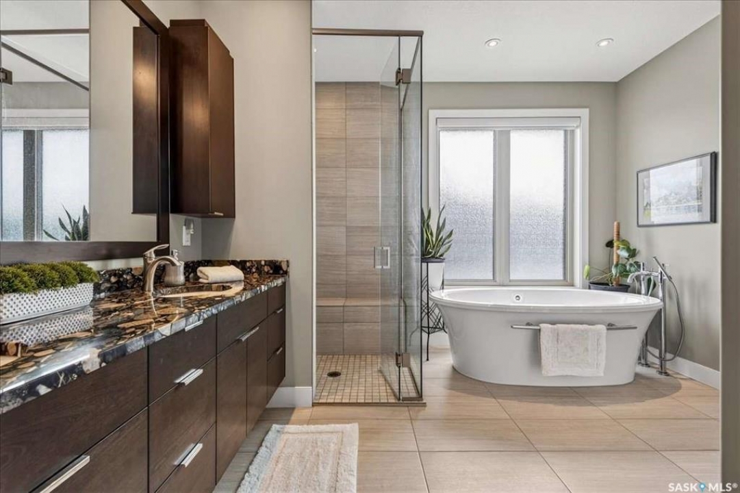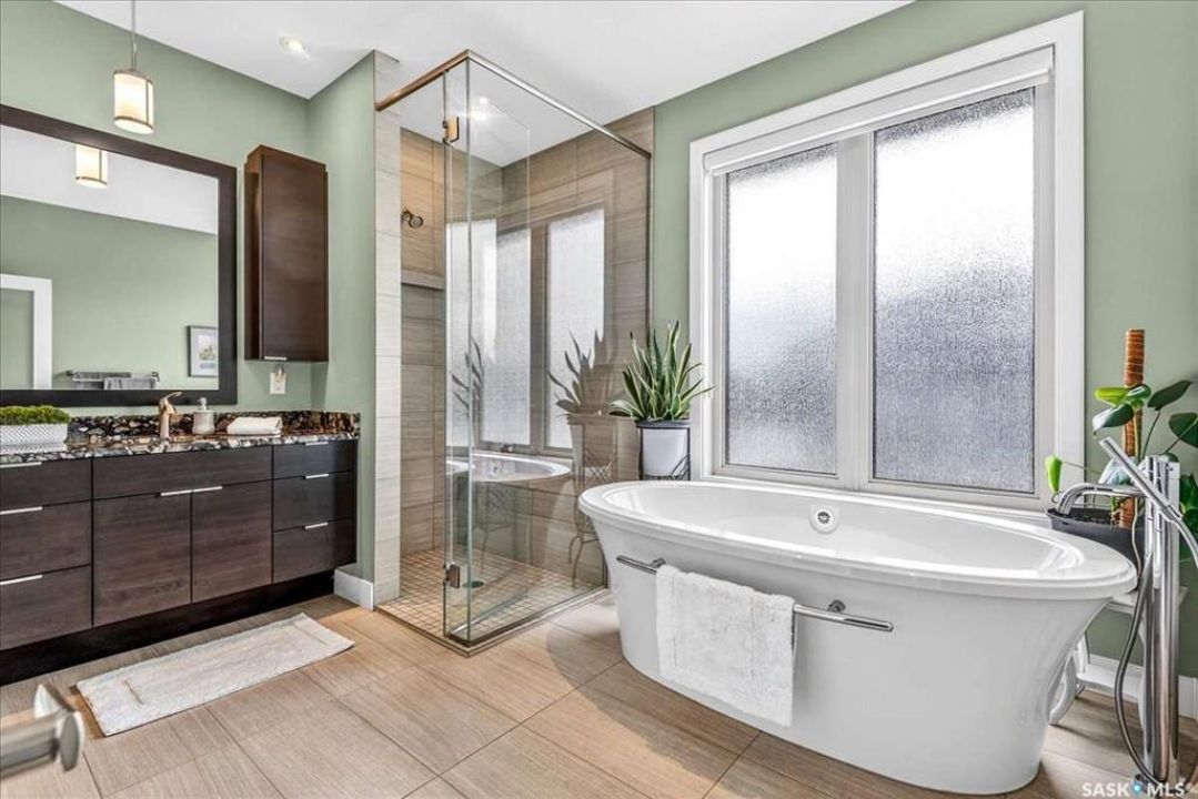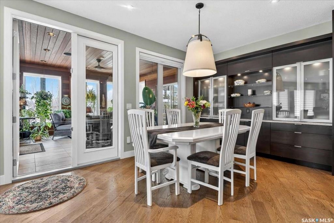 For more information, please click the "More Information" button. 4134 Timber Creek Place, Regina, Saskatchewan S4V 3G7 is a beautifully crafted custom Munro home offering 2,273 sq ft on the main floor, designed with high-end finishes throughout. The home welcomes you with 9-foot ceilings, hardwood flooring, and large windows with electric light-filtering blinds that bring in abundant natural light. The open-concept layout features a spacious living room with a stunning stone gas fireplace, built-in shelving, and cabinetry. The kitchen centers around a large island with granite countertops and includes premium appliances such as a Decro 6-burner gas stove, wall oven, microwave, Sub-Zero fridge/freezer, and a walk-in pantry. The dining area includes matching cabinetry and opens to a four-season sunroom with radiant in-floor heating, along with an adjacent screened and covered space featuring a Hot Springs hot tub. The primary bedroom is generously sized with a large closet and a luxurious ensuite featuring a soaker tub, custom tiled shower, and dual sinks. The main floor also includes an additional bedroom, bathroom, den, and a laundry room with custom cabinetry. The finished basement offers two more bedrooms, a 4-piece bathroom, and a large recreation room with a granite bar and appliances, ideal for entertaining. The mechanical room includes a Control-4 system managing heating, cooling, sound, and TV, plus a Sub-Zero freezer. The garage, basement, and sunroom all feature in-floor heating supported by a Triangle Tube boiler, Navien system, and Bryant furnace. The triple garage includes 15-foot ceilings, epoxy heated floors, and a vehicle lift. Outside features include a patio, planters, mature trees, a Generac generator, gemstone lighting, and a security system, with snow and lawn care handled by the bare-land strata.