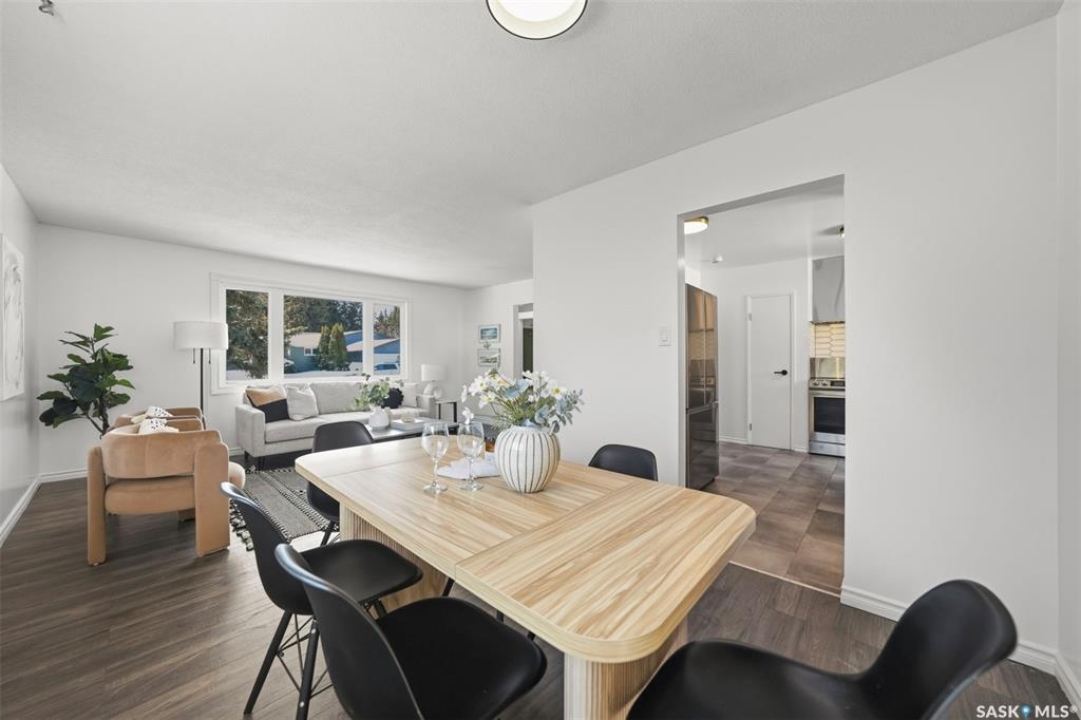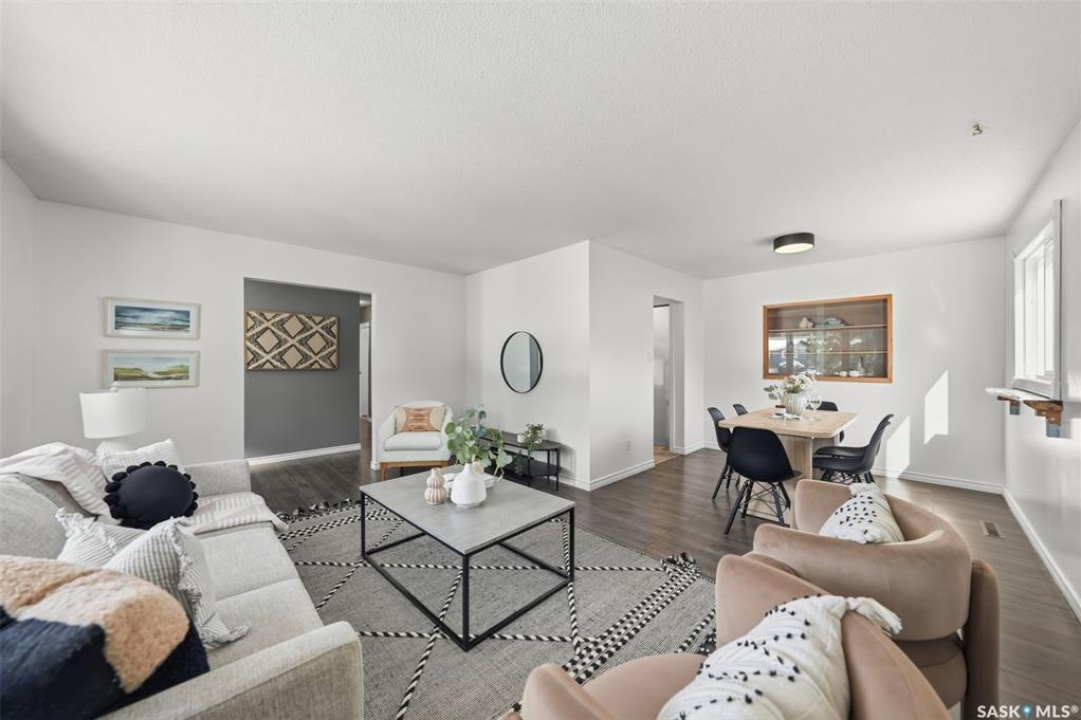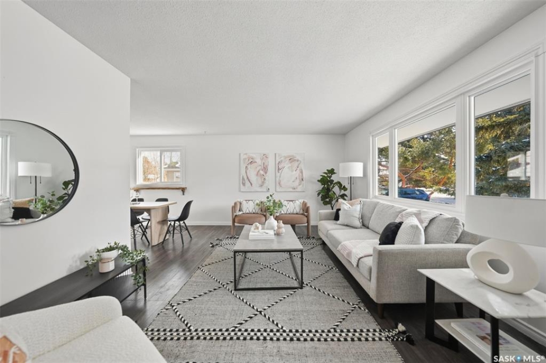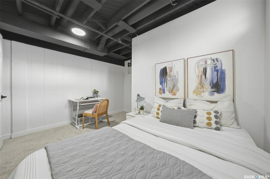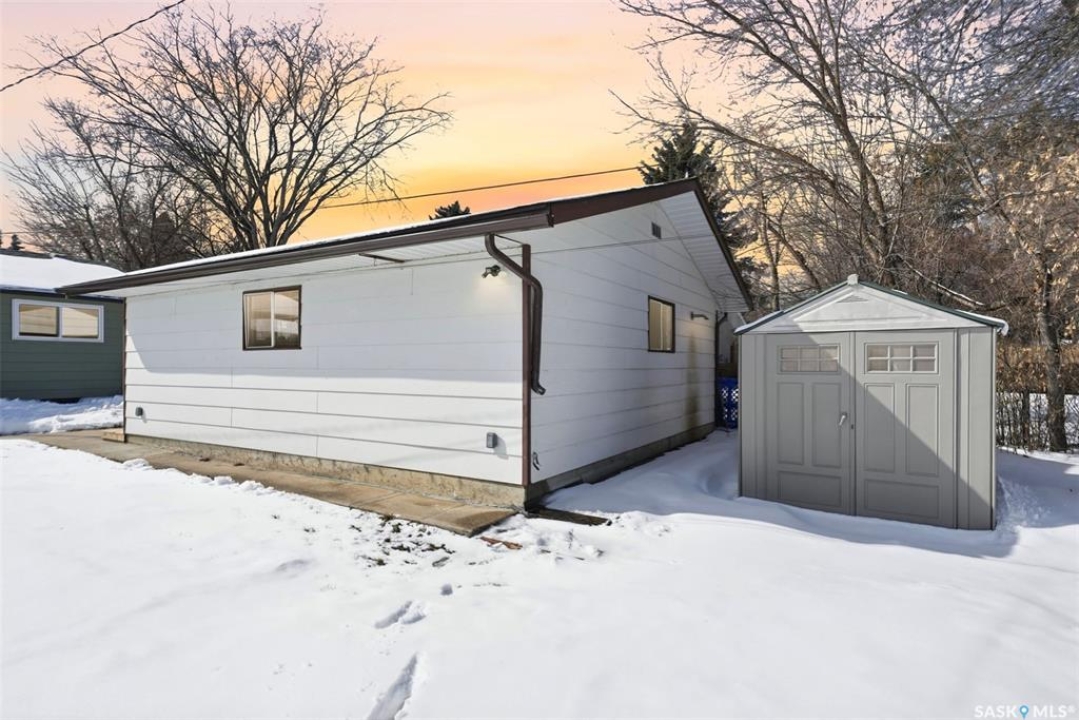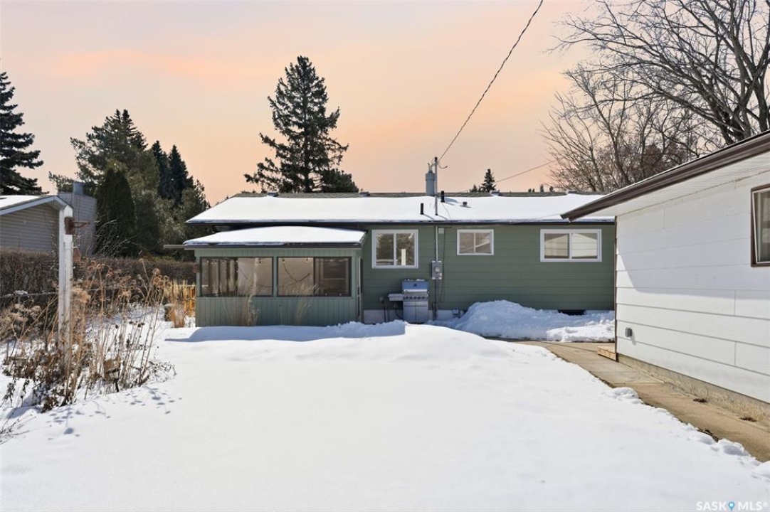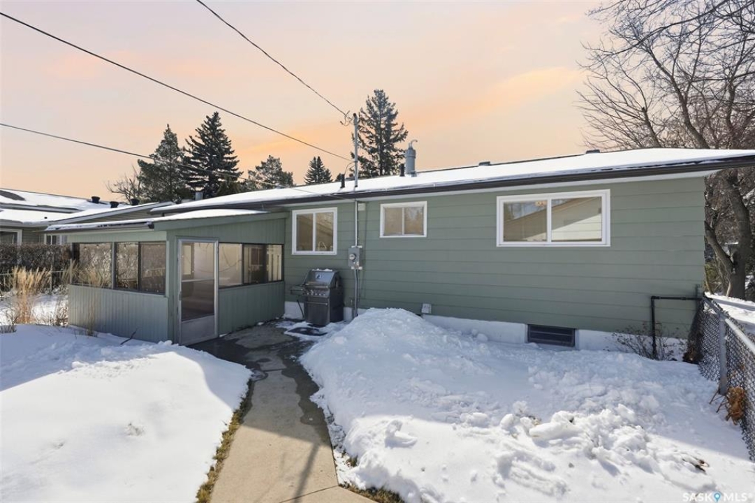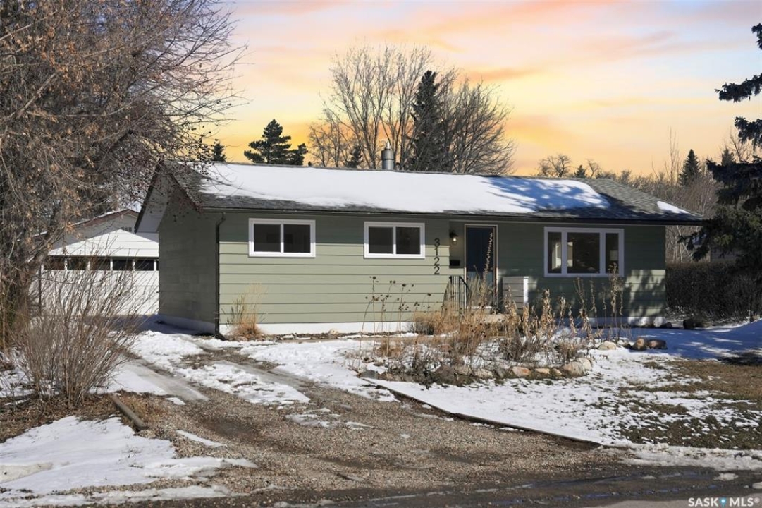 Welcome to 3122 Mountbatten Street in Saskatoon—this charming, move-in ready bungalow sits on nearly 12,000 square feet of land in Montgomery, a unique community that feels like a small town within the city with its spacious, park-like yards and quiet atmosphere; inside, you'll find a bright, open main floor where the sunny living room flows into the dining area and into a modernized kitchen featuring floating shelves, butcher block countertops, and stainless steel appliances, while down the hall are three updated bedrooms and a beautifully renovated four-piece bathroom; the mostly finished basement adds even more living space with a large family room, den, additional bedroom, stylish three-piece bathroom, and a functional laundry area; at the back, a cozy sunroom extends your living space and opens onto a beautifully landscaped yard filled with perennials, and the property is complete with a heated 24x26 garage, RV parking, and a charming fire pit area—don't miss your chance to own this incredible home, book your private showing today!