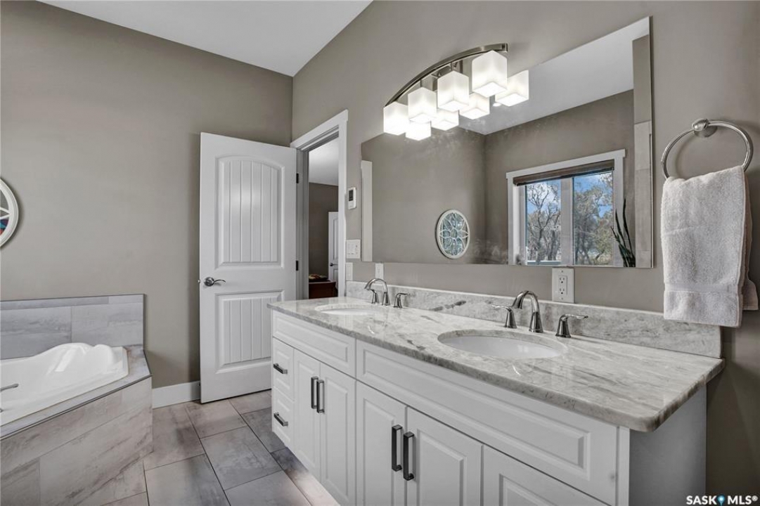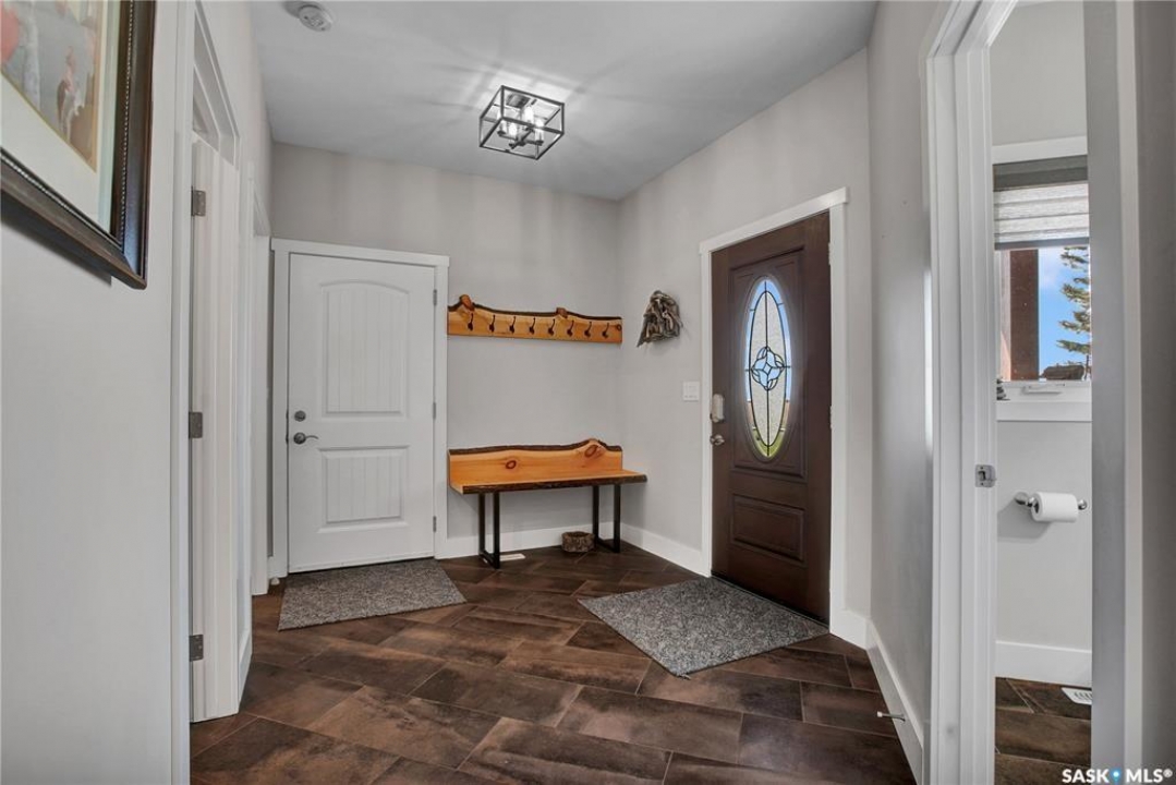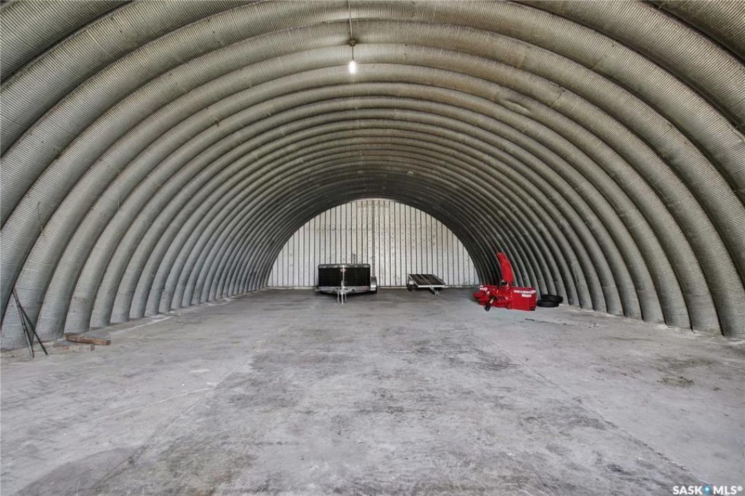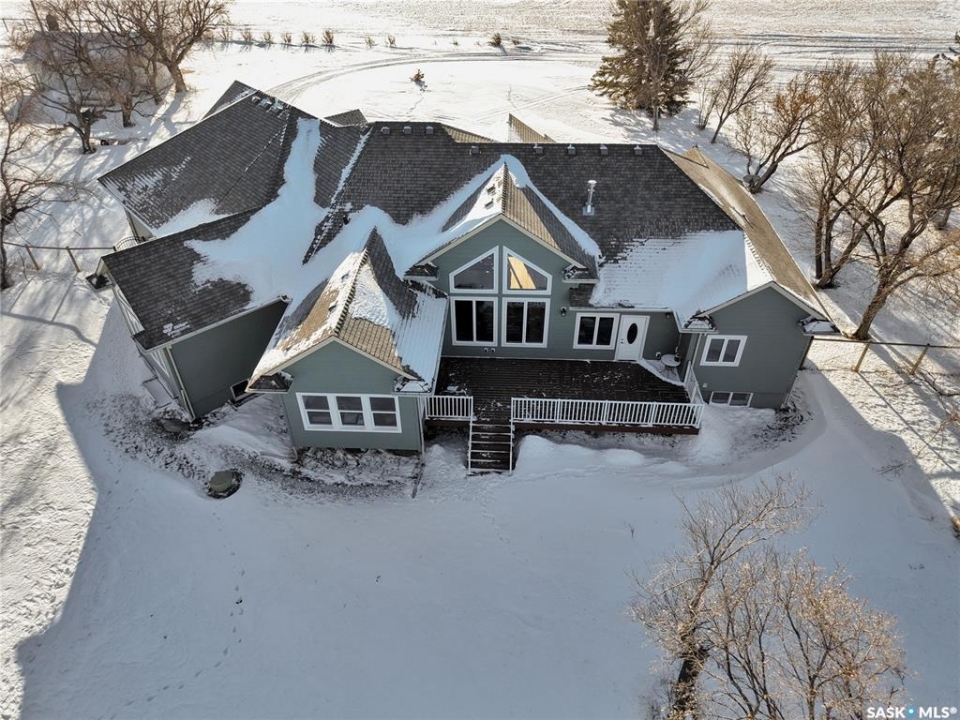 This beautiful, private acreage features 5 bedrooms, 4 bathrooms, a triple-car attached garage, and multiple outbuildings. Located just 22 minutes from Saskatoon, this acreage sits just outside the town of Delisle which features all amenities such as schools, grocery, gas, recreational activities and more. This 2020 built bungalow was customized with high building standards. The veranda at the front of the home provides entry into both the dining room and front hall. The spacious front entry gives access to the triple attached heated and insulated garage, half bathroom and main floor laundry room. The kitchen offers a large island, custom soft closet cabinets and drawers, glass tiled backsplash, quartzite countertops, large pantry and Jenn Air appliances. The kitchen is open to the family room with vaulted ceilings, a propane fireplace and large windows providing both a scenic view and an abundance of natural light. The sun room is fully insulated and can be used year round with a space heater or by leaving the doors open to the main living space. The great room boats 18ft ceilings and a second propane fireplace. Down the hall are three bedrooms including the master suite and the main bathroom. The master offers a walk in closet, five-piece ensuite with a water-air tub, separate stream shower, double sinks and access to the back deck. The outbuildings include the following: Quonset (42 X 70), Shop (20.5 X 33), Horse Stable, 24.5 X 14.5). The workshop is heated and insulated. The large Quonset is finished with a concrete floor and large double doors. The horse stable features two sliding doors and is perfect for horses. The home is finished with 50 year fiberglass shingles, commercial grade ROXUL insulation, triple pane windows, fiberglass doors, high efficient furnace and 100 gallon hot water tank with circulation system. There is a two stage system septic field with pump out and 1500 gallon – fiberglass tank.