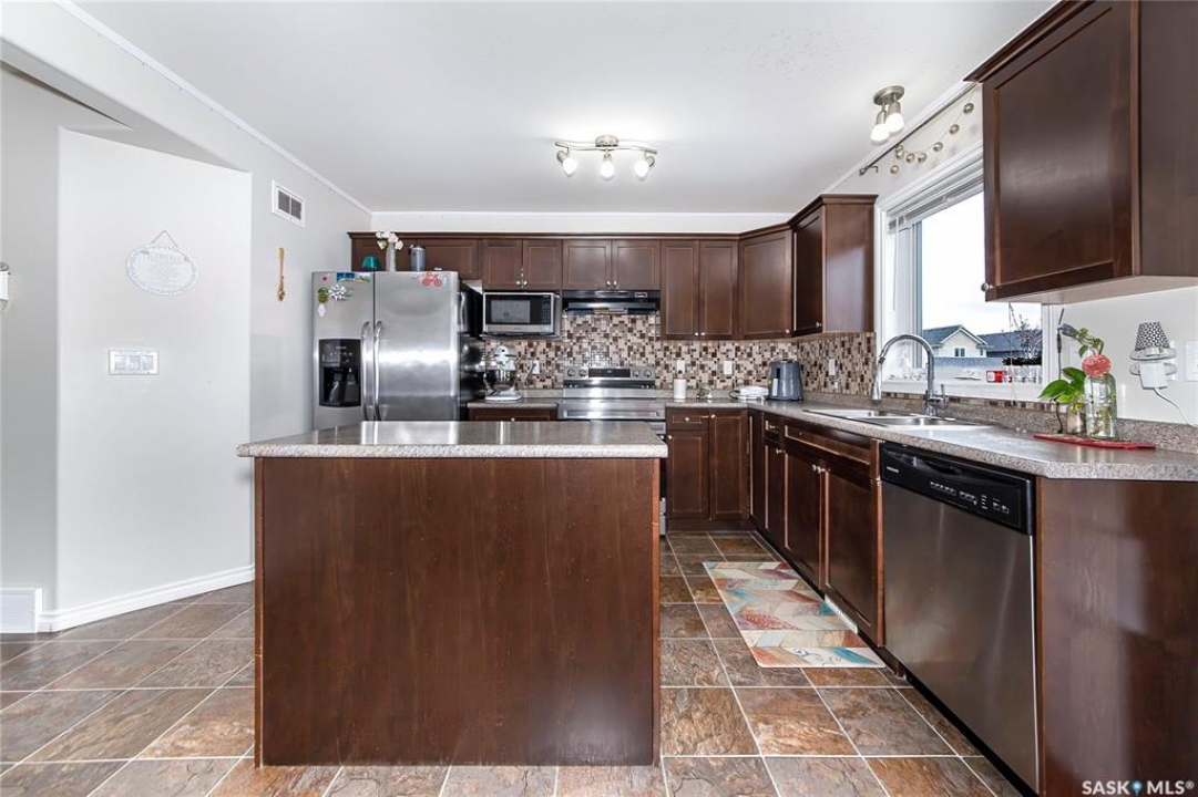 Welcome to this wonderful family home located in the desirable community of Hampton Village. This 5-bedroom, 3-bathroom home offers a bright front living room featuring beautiful laminate flooring and a large window that fills the space with natural light. The main floor also includes a convenient 2-piece guest bathroom, a functional kitchen with a double sink overlooking the backyard, a prep island with storage, and stainless steel appliances. The spacious dining area provides direct access to the back deck through garden doors. Upstairs, you'll find a 4-piece main bathroom and 3 well-sized bedrooms, including the primary bedroom complete with its own 4-piece ensuite. The partially finished basement features a cozy kitchen area with a double sink and appliances included, along with two good-sized bedrooms (one requiring finishing), 4 piece bathroom, and a large utility room with laundry and ample storage space. Outside, the fully fenced backyard offers plenty of room to enjoy, along with a large shed and access to a detached double garage via back alley. Ideally located within walking distance to schools, parks, and walking paths, and close to all amenities in Hampton Village. Book your showing today!