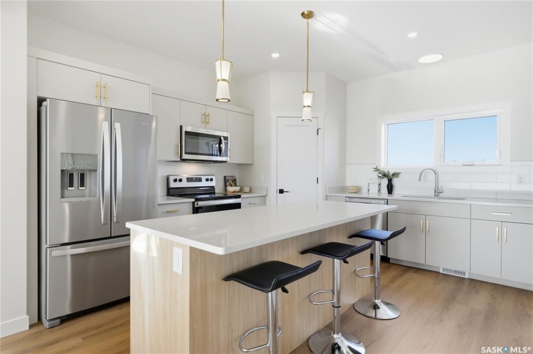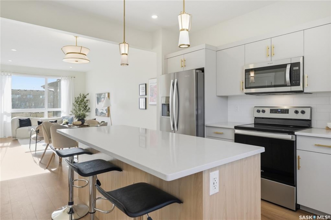 Introducing The Easton! Perfectly positioned next to Brighton's Amphitheatre and surrounded by scenic walking paths and parks, this home offers the ideal balance of outdoor recreation, everyday convenience and NO CONDO FEES! With Brighton Marketplace just minutes away, shopping, dining, and essentials are always within easy reach. The Easton by North Prairie Developments is a charming 1,396 sq. ft. two-storey home featuring 3 bedrooms and 2.5 bathrooms. The main floor welcomes you with a bright, open-concept living space, where a spacious kitchen with a large island flows seamlessly into the inviting living room and dining area—perfect for entertaining. A mudroom and half bath are conveniently tucked just off the kitchen for added functionality. Upstairs, the owner's suite is a private retreat, complete with a walk-in closet and an ensuite featuring a built-in makeup counter. Two additional generously sized bedrooms, a full bathroom, and a second-floor laundry room provide comfort and convenience for the whole family. Enjoy the privacy of your own backyard—perfect for relaxing, entertaining, or creating your own outdoor oasis. Plus, homeowners have the option to add a detached garage for extra convenience and storage. Looking for more space? The optional 594 sq. ft. basement includes a bedroom, a bathroom, and a large recreational room with a separate entrance to the basement. Best of all, there are no condo fees! *First-Time Home Buyer Price: $448,786 * Eligibility for the First-Time Home Buyer GST rebate is determined solely by CRA. Purchasers are responsible for confirming they meet all eligibility requirements. If a rebate is not approved or is reduced, the Purchaser is responsible for paying the full GST amount. Pictures may not be exact representations of the unit, used for reference purposes only.