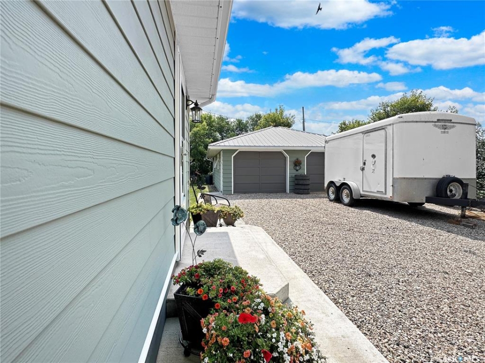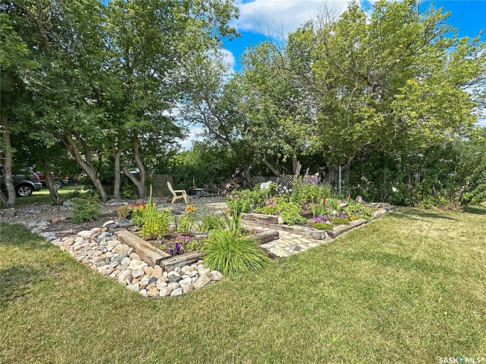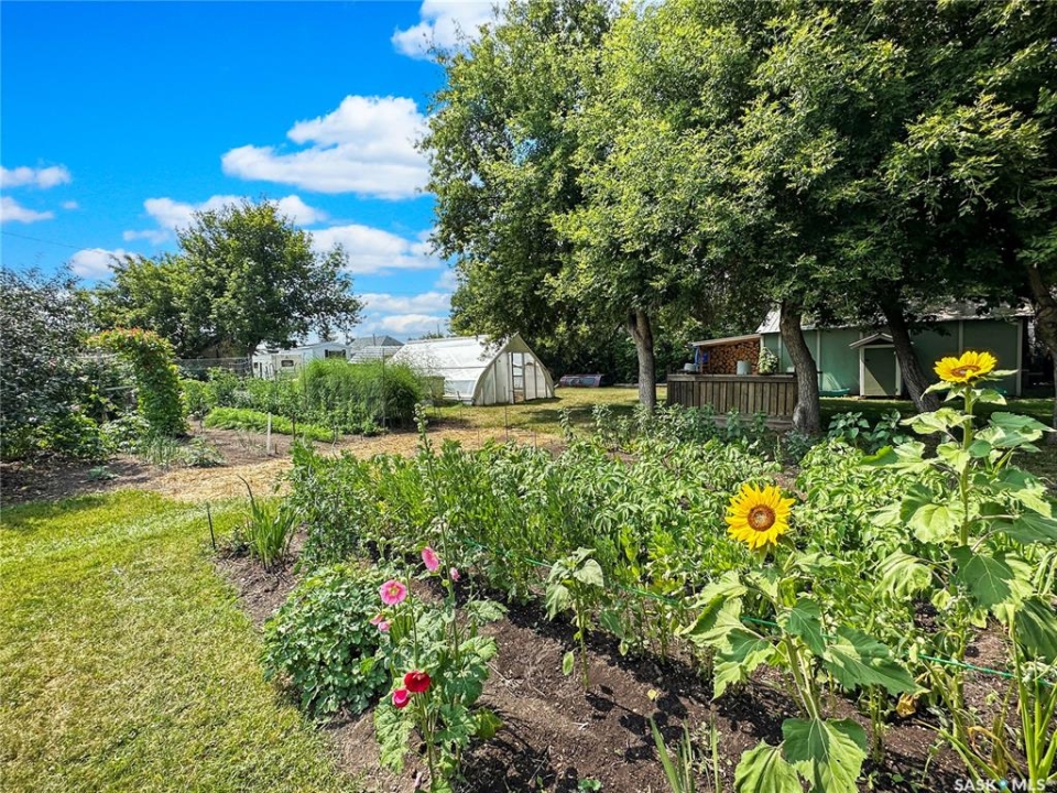 Welcome to the charming community of Edgeley, just a short 30-minute commute to Regina—offering the perfect blend of small-town ease with an acreage-like setting. Tucked within the RM of South Qu'Appelle, this hidden gem delivers space, privacy, and a lifestyle that's increasingly hard to find. Set on a huge, beautifully maintained lot, this property is a dream for anyone craving a more self-sufficient way of living. Enjoy your own garden, greenhouse, large shed, and wood storage (wood included), along with an incredible variety of established perennials and edibles including grapes, apples, haskaps, pie cherries, plums, raspberries, asparagus, and mature shrubs and flowers. It's a truly turnkey opportunity to grow your own food and embrace country living—without sacrificing convenience. The home itself is immaculate and feels like a romantic country retreat. A spacious entry welcomes you in, leading to a warm and inviting kitchen featuring a striking real metal backsplash and a large pantry. The dining area is bright and open, perfect for everyday living or hosting. The main floor also offers a versatile office that could easily function as a bedroom, a beautifully updated bathroom with charming antique-style fixtures, and a comfortable bedroom. Newer windows throughout enhance both efficiency and natural light. Downstairs, you'll find an additional bedroom, a convenient half bath, a generous laundry area, and a cold room ideal for food storage. A cozy wood stove adds to the home's character, while the high-efficiency gas furnace keeps utility costs manageable. If you've been searching for a peaceful, turn-key property with space to breathe, grow, and live more intentionally—while still enjoying an easy commute to the city—this is it. Contact your favorite local agent for details and your private showing.