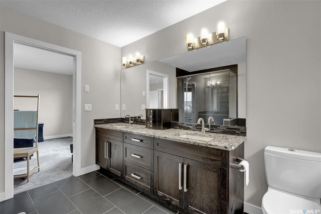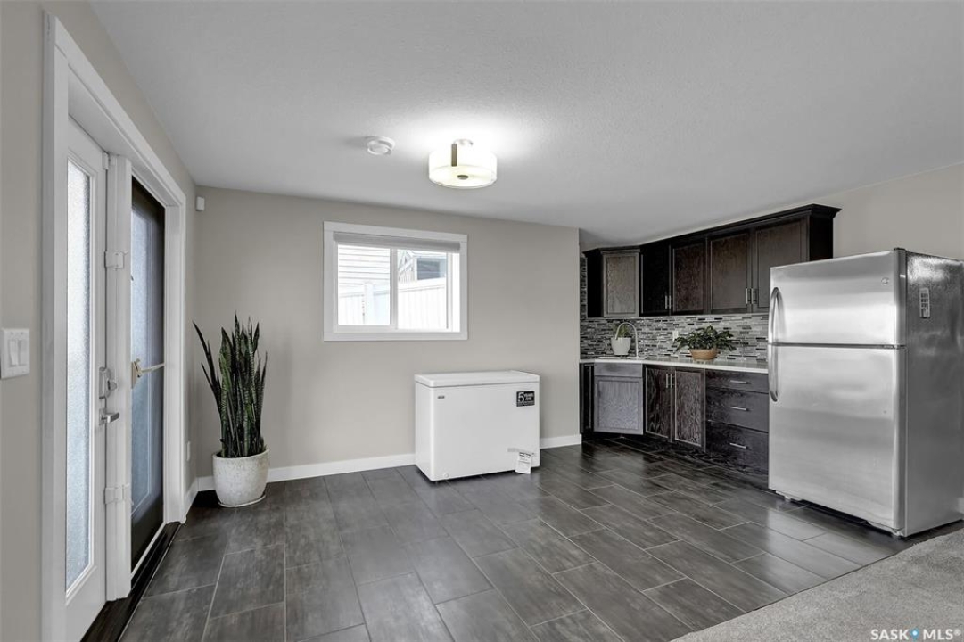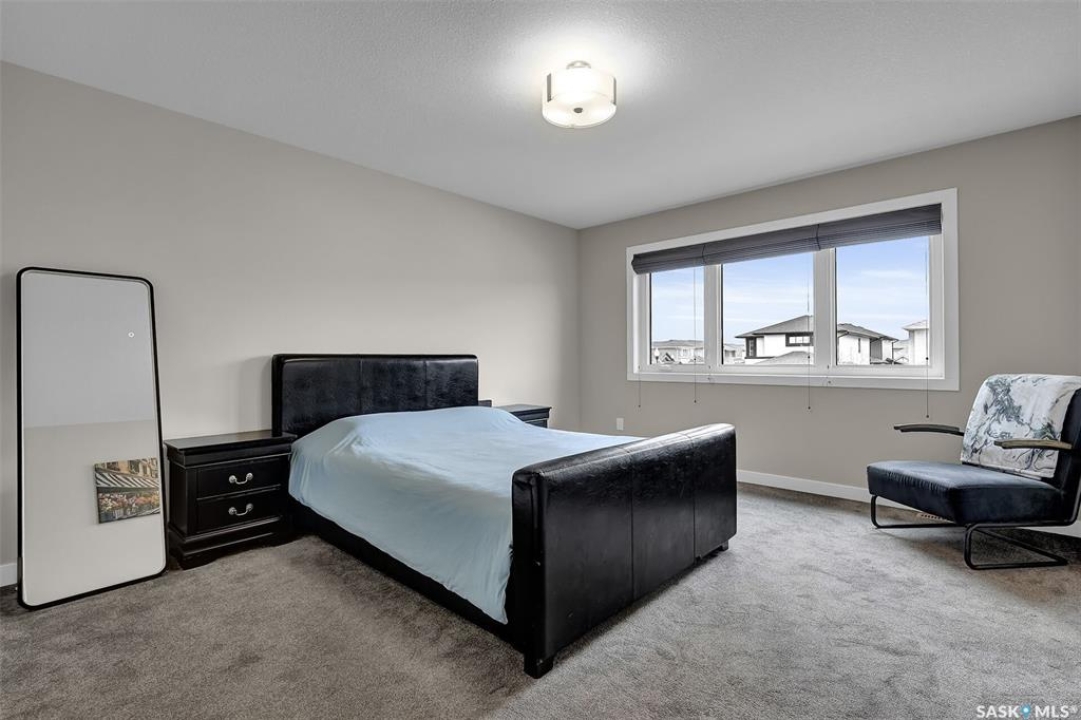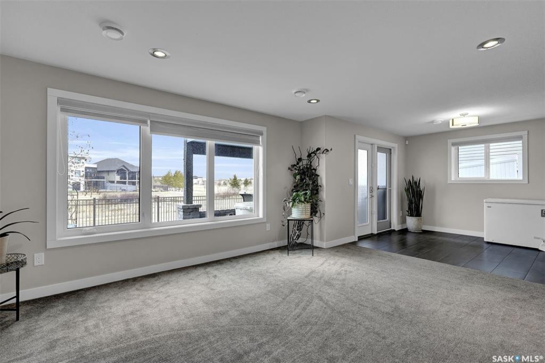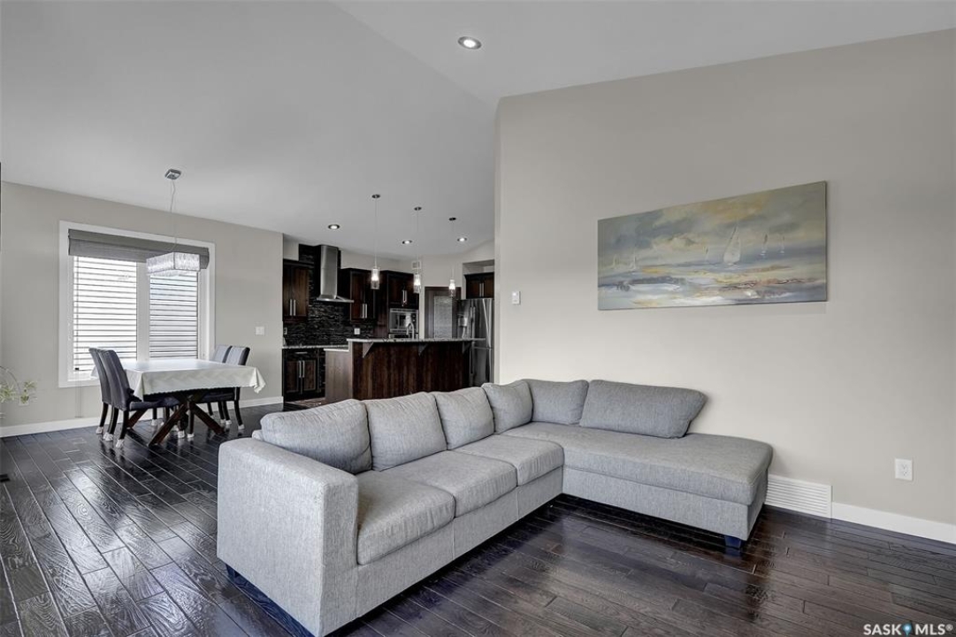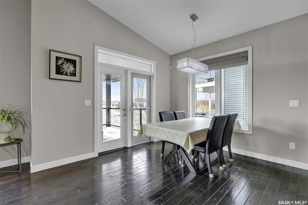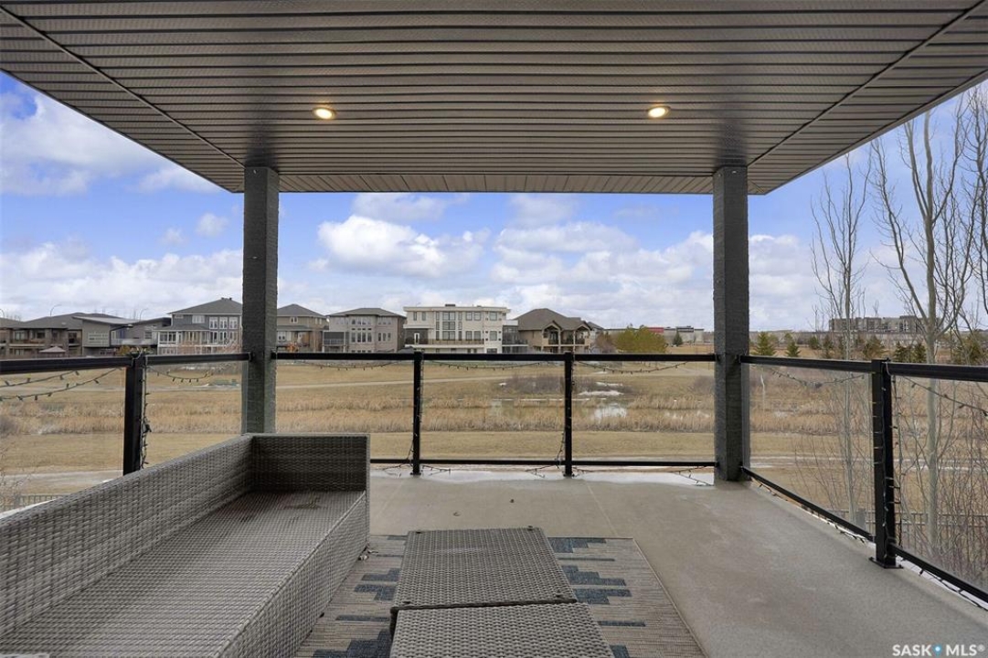 Custom-built home on piles with a walk-out basement! Welcome to this beautiful bi-level offering 5 bedrooms and 3 bathrooms. The open-concept main floor features impressive 11' ceilings and hand-crafted hardwood flooring throughout the kitchen, living, and dining areas. The kitchen showcases extensive maple cabinetry, elegant quartz countertops, tile backsplash, a large island, and a walk-in pantry. The dining area provides access to a spacious covered balcony with glass railing, overlooking the landscaped yard, green space, and walking paths. The bright and inviting living room offers generous space, a fireplace, and a stylish brick feature wall, complemented by large windows that fill the home with natural light. The main floor includes 3 bedrooms and 2 full bathrooms. The primary suite features large windows, a walk-in closet, and a well-appointed ensuite with tile flooring, separate shower, corner soaker tub, and dual sinks. Two additional good-sized bedrooms, a full bathroom, and a convenient laundry/storage area complete this level. The fully developed walk-out basement expands the living space with 2 additional bedrooms, a spacious family room, kitchen/bar and dining area, an additional full bathroom, and plenty of storage. The double attached garage is fully insulated and drywalled, with wiring in place for a future heater. Ideally located just steps from parks, an elementary school, green spaces, and walking paths, this home offers a fantastic location with beautiful views.