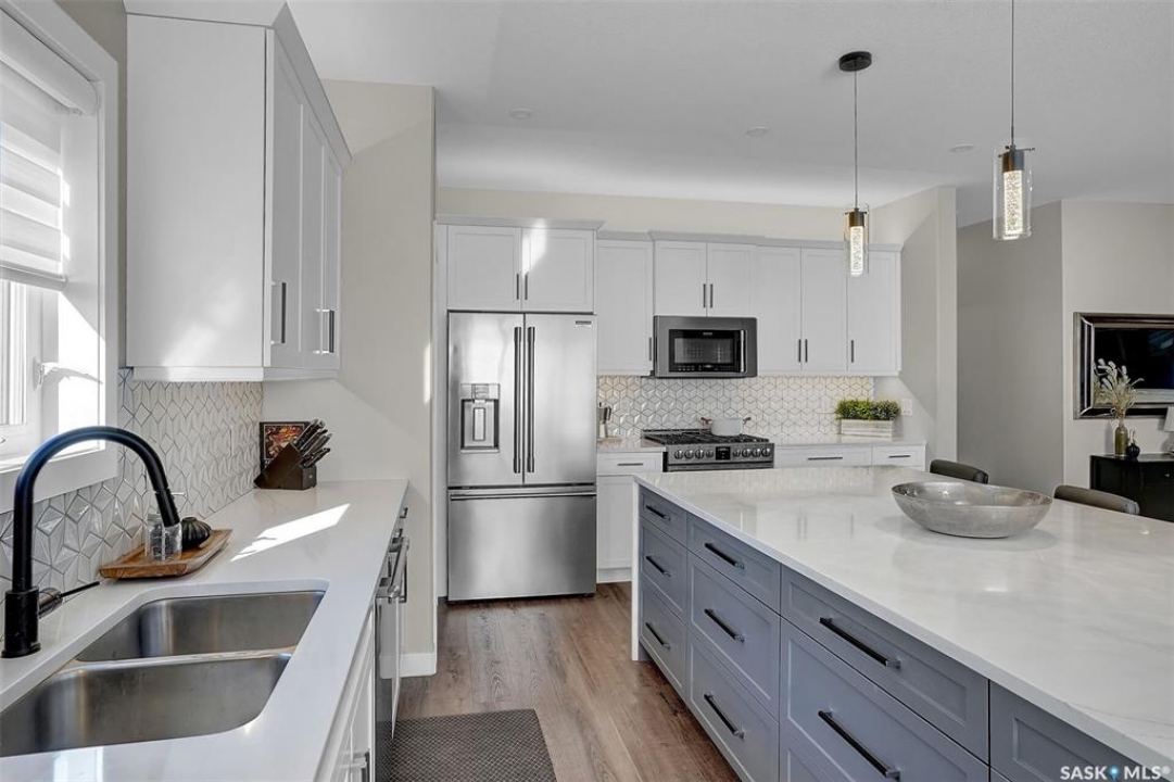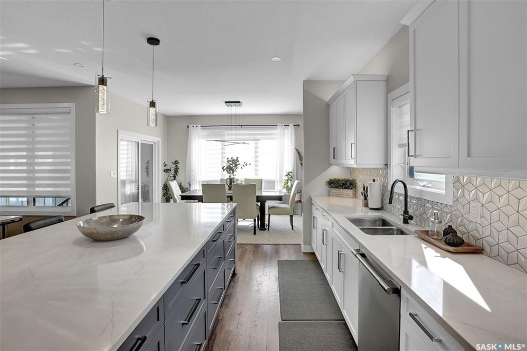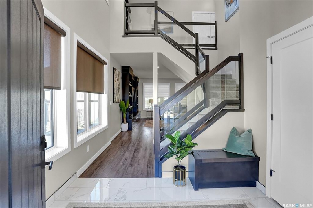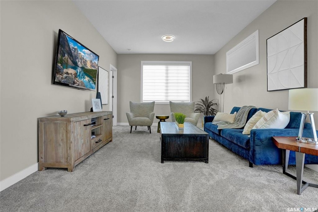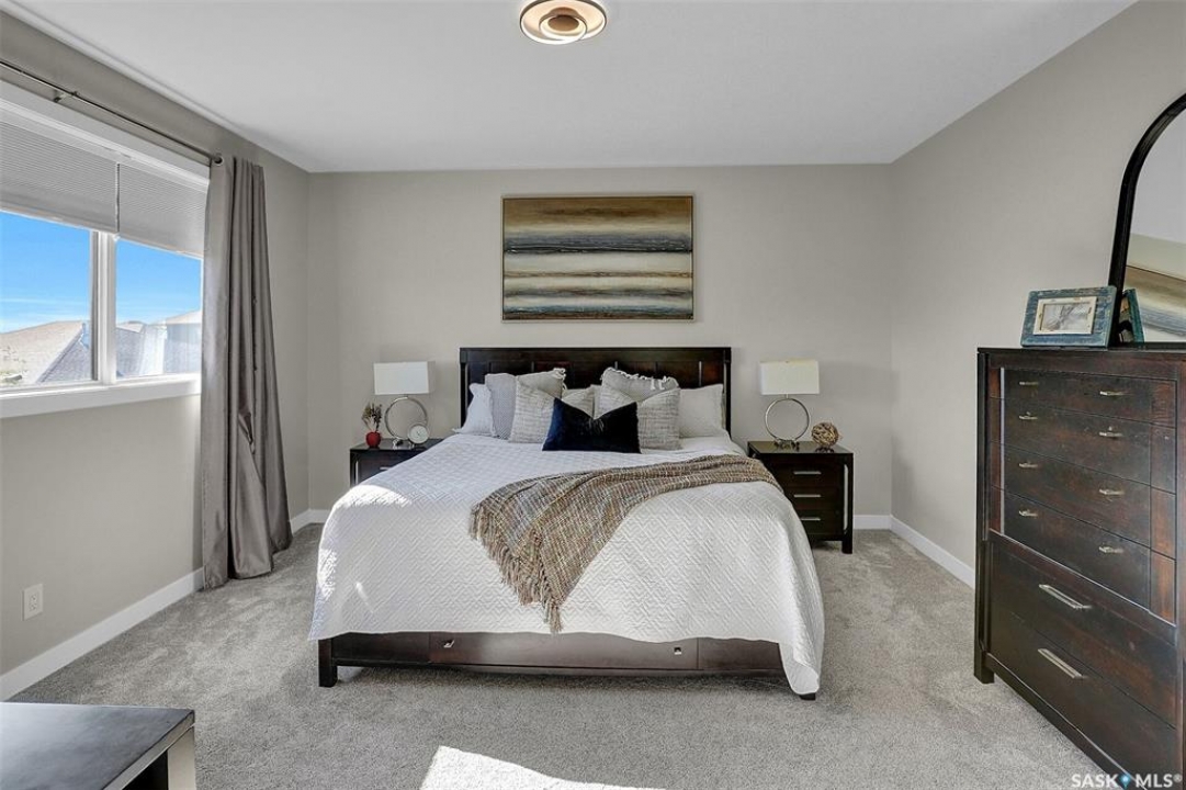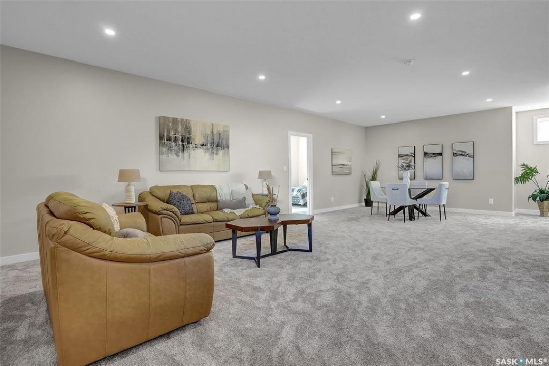 Welcome to 4244 Elderberry Crescent E, Where Luxury Meets Livability. Nestled in Regina's premier neighbourhood, The Creeks, this exceptional Gilroy-built home blends contemporary elegance with practical design. From the moment you turn onto the quiet crescent, you'll feel right at home. Sitting on a massive 11,000+ sq. ft. pie-shaped, park-view lot, this property offers endless potential to create your dream outdoor space. The acrylic stucco and stone-accented exterior paired with a grand entryway set an impressive tone from the moment of arrival. Step inside to a breathtaking two-storey foyer that opens into a spacious family room, complete with a full feature presentation wall. The chef's kitchen is a true showstopper, featuring a large eat-up island, abundant drawer storage, upgraded Chef's style appliances, and a walk-in pantry built for organization and convenience. A stylish 2pc bath, mudroom, and laundry area round out the main floor. The triple attached heated garage offers ample room for parking, projects, entertainment, and storage. Upstairs, unwind in the oversized bonus room overlooking the foyer or get productive in the dedicated office (or optional 4th bedroom). Two generously sized secondary bedrooms each feature their own walk-in closets. The primary suite is a private retreat, showcasing impressive square footage outfitted in plush carpeting, a spa-inspired ensuite with dual sinks, a deep soaker tub, and a custom-tiled shower, plus direct access to a beautifully designed walk-in closet. The newly finished basement adds even more living space, including a sprawling rec room, nook or workout area, a full bathroom, and a fifth bedroom ideal for guests or a growing family. To top it all off, enjoy year-round relaxation in the 4 season heated sunroom, complete with a hot tub, the perfect spot for entertaining or unwinding after a long day. 4244 Elderberry Crescent E is more than a home, it's a statement of quality, comfort, and modern luxury.