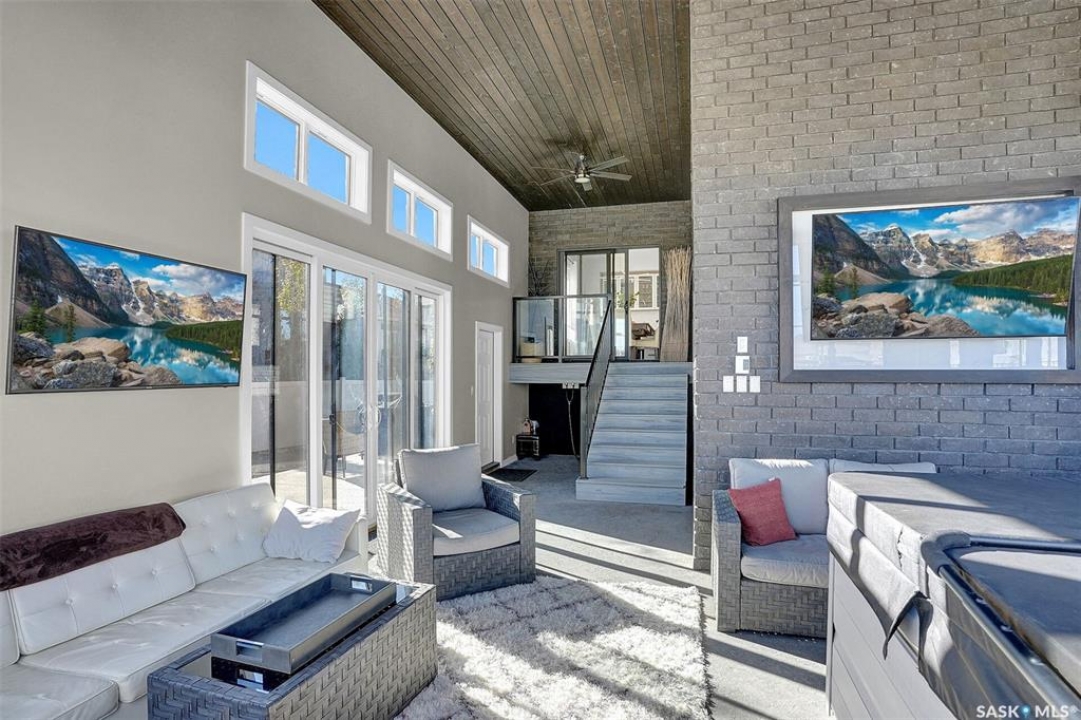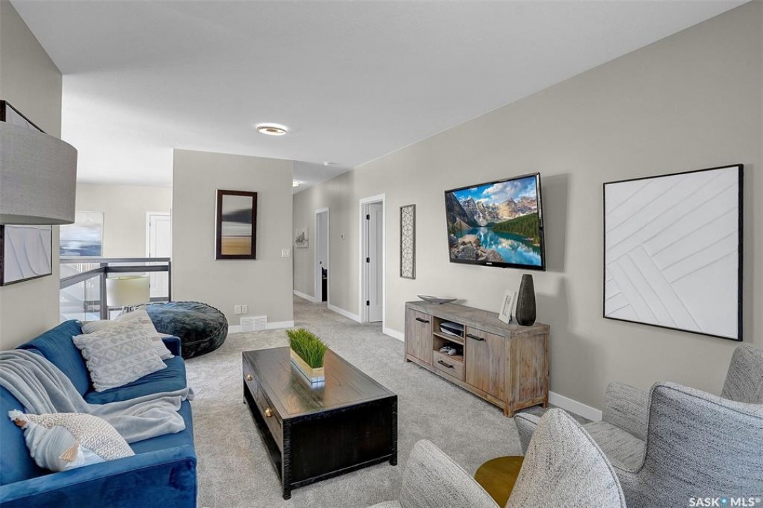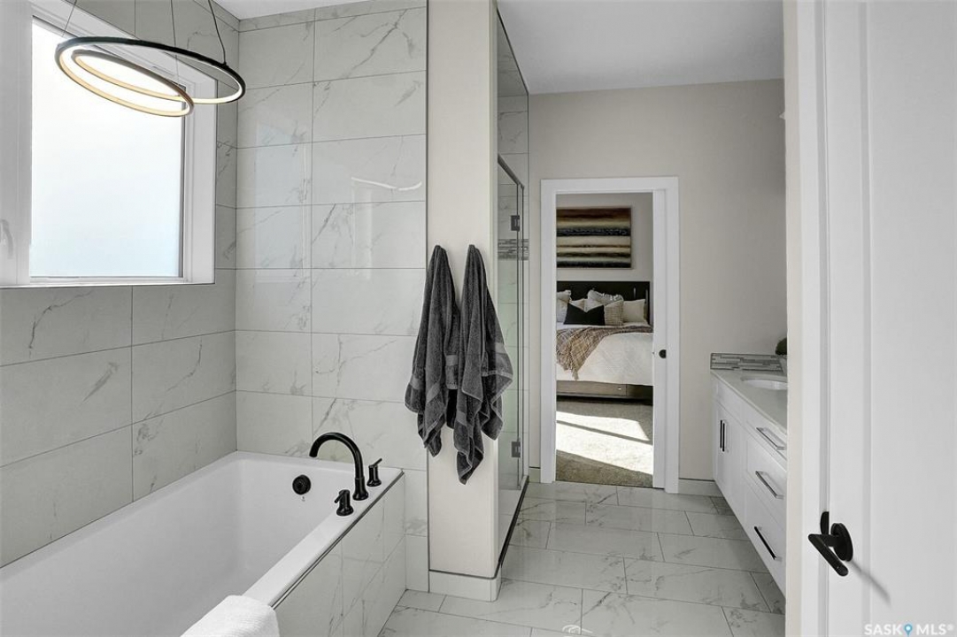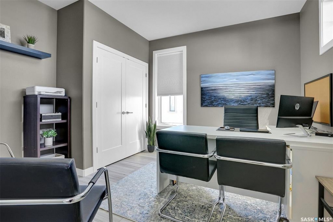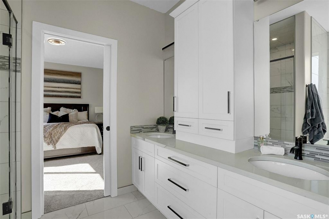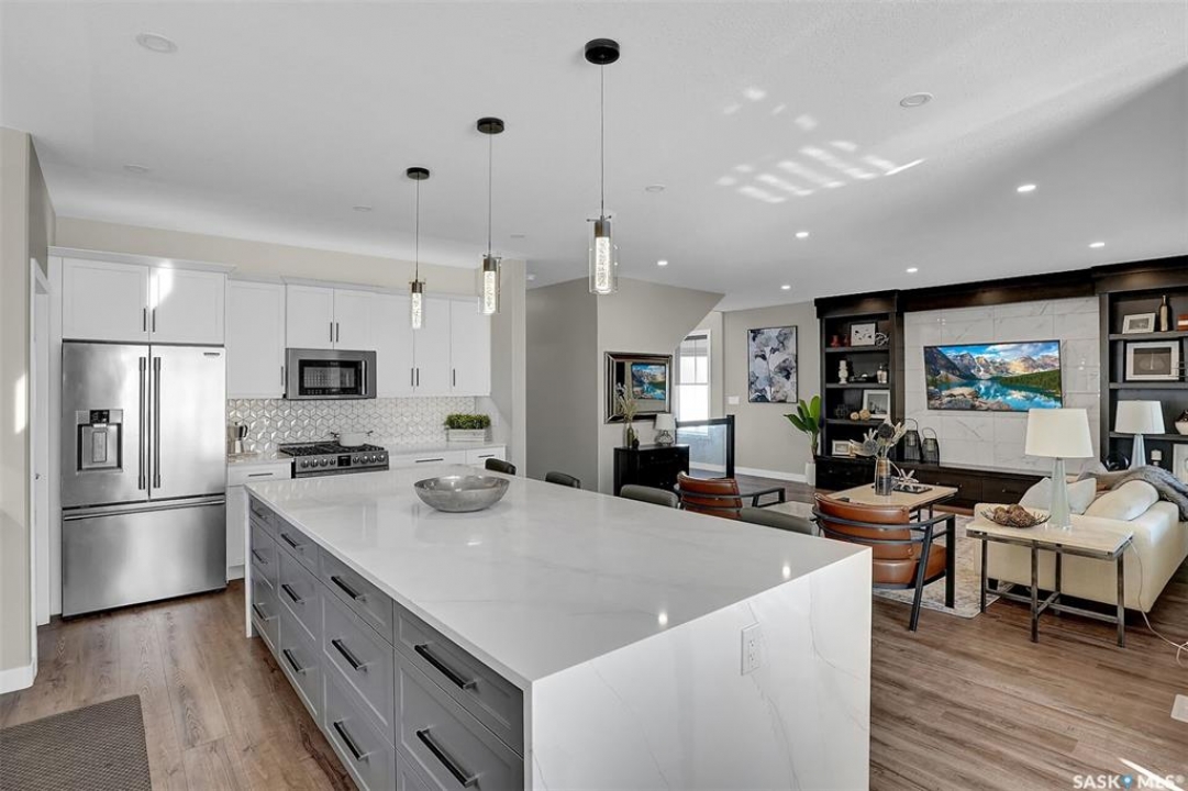 Welcome to 4244 Elderberry Crescent E, Where Luxury Meets Livability. Nestled in Regina's premier neighbourhood, The Creeks, this exceptional Gilroy-built home blends contemporary elegance with practical design. From the moment you turn onto the quiet crescent, you'll feel right at home. Sitting on a massive 11,000+ sq. ft. pie-shaped, park-view lot, this property offers endless potential to create your dream outdoor space. The acrylic stucco and stone-accented exterior paired with a grand entryway set an impressive tone from the moment of arrival. Step inside to a breathtaking two-storey foyer that opens into a spacious family room, complete with a full feature presentation wall. The chef's kitchen is a true showstopper, featuring a large eat-up island, abundant drawer storage, upgraded Chef's style appliances, and a walk-in pantry built for organization and convenience. A stylish 2pc bath, mudroom, and laundry area round out the main floor. The triple attached heated garage offers ample room for parking, projects, entertainment, and storage. Upstairs, unwind in the oversized bonus room overlooking the foyer or get productive in the dedicated office (or optional 4th bedroom). Two generously sized secondary bedrooms each feature their own walk-in closets. The primary suite is a private retreat, showcasing impressive square footage outfitted in plush carpeting, a spa-inspired ensuite with dual sinks, a deep soaker tub, and a custom-tiled shower, plus direct access to a beautifully designed walk-in closet. The newly finished basement adds even more living space, including a sprawling rec room, nook or workout area, a full bathroom, and a fifth bedroom ideal for guests or a growing family. To top it all off, enjoy year-round relaxation in the 4 season heated sunroom, complete with a hot tub, the perfect spot for entertaining or unwinding after a long day. 4244 Elderberry Crescent E is more than a home, it's a statement of quality, comfort, and modern luxury.