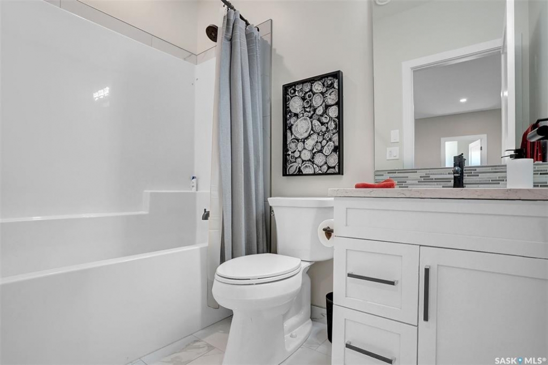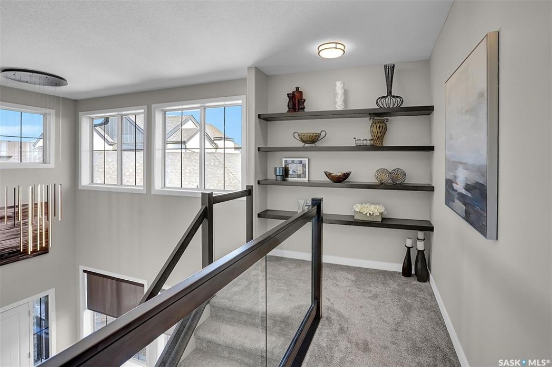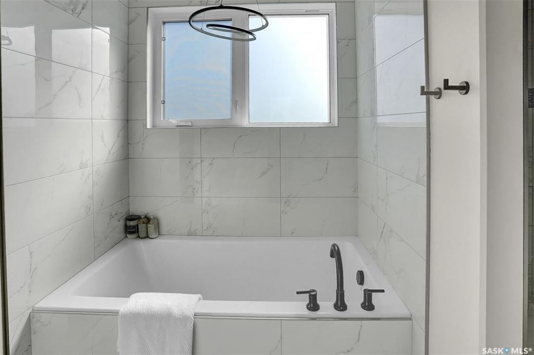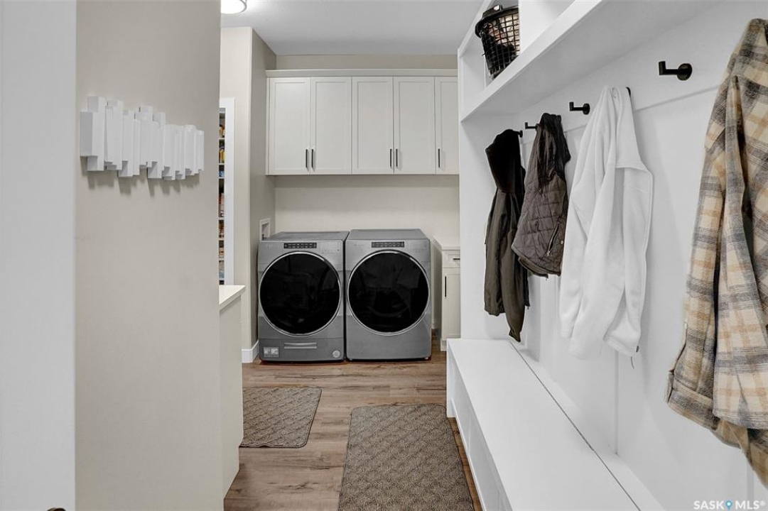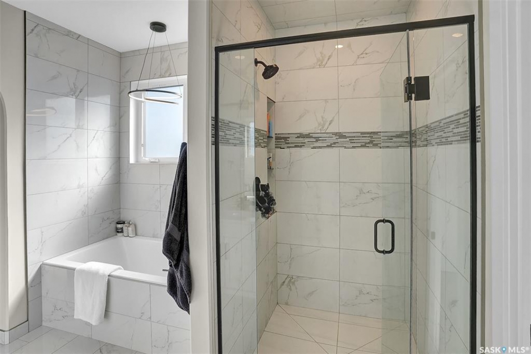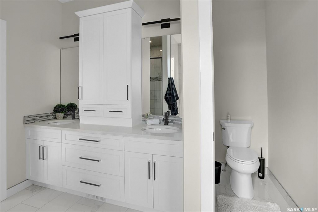 Welcome to 4244 Elderberry Crescent E, Where Luxury Meets Livability. Nestled in Regina's premier neighbourhood, The Creeks, this exceptional Gilroy-built home blends contemporary elegance with practical design. From the moment you turn onto the quiet crescent, you'll feel right at home. Sitting on a massive 11,000+ sq. ft. pie-shaped, park-view lot, this property offers endless potential to create your dream outdoor space. The acrylic stucco and stone-accented exterior paired with a grand entryway set an impressive tone from the moment of arrival. Step inside to a breathtaking two-storey foyer that opens into a spacious family room, complete with a full feature presentation wall. The chef's kitchen is a true showstopper, featuring a large eat-up island, abundant drawer storage, upgraded Chef's style appliances, and a walk-in pantry built for organization and convenience. A stylish 2pc bath, mudroom, and laundry area round out the main floor. The triple attached heated garage offers ample room for parking, projects, entertainment, and storage. Upstairs, unwind in the oversized bonus room overlooking the foyer or get productive in the dedicated office (or optional 4th bedroom). Two generously sized secondary bedrooms each feature their own walk-in closets. The primary suite is a private retreat, showcasing impressive square footage outfitted in plush carpeting, a spa-inspired ensuite with dual sinks, a deep soaker tub, and a custom-tiled shower, plus direct access to a beautifully designed walk-in closet. The newly finished basement adds even more living space, including a sprawling rec room, nook or workout area, a full bathroom, and a fifth bedroom ideal for guests or a growing family. To top it all off, enjoy year-round relaxation in the 4 season heated sunroom, complete with a hot tub, the perfect spot for entertaining or unwinding after a long day. 4244 Elderberry Crescent E is more than a home, it's a statement of quality, comfort, and modern luxury.