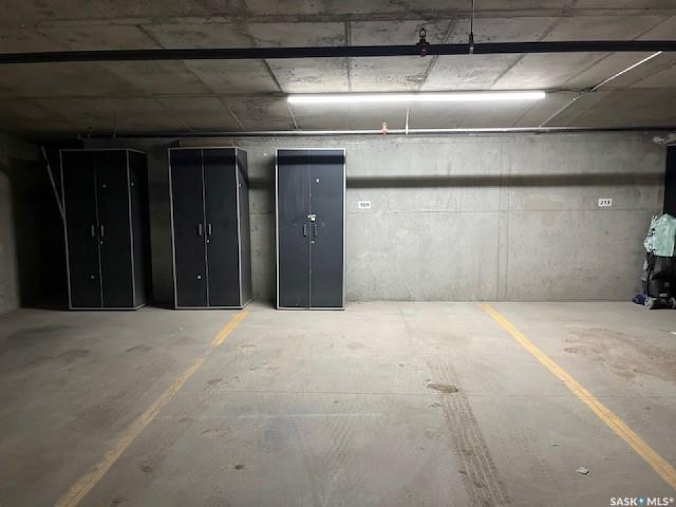 Easy Lifestyle Condo living in the prestigious Bellagio located in Hillsdale across from Wascana Lake with great access to the U of R, Downtown and all of Regina's South amenities. Well kept one bedroom condo unit boasts modern kitchen cabinets with eating bar, granite counter tops including bathroom, all appliances, fridge stove built in dishwasher, microwave hood fan, garburator in suite laundry with stackable washer dryer, spacious bedroom with walk thru closet to 4 piece bath and direct entry off living room to covered deck. This unit has been professionally painted in the last month. Underground parking. amenities and exercise room
