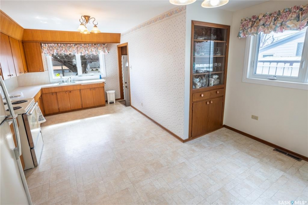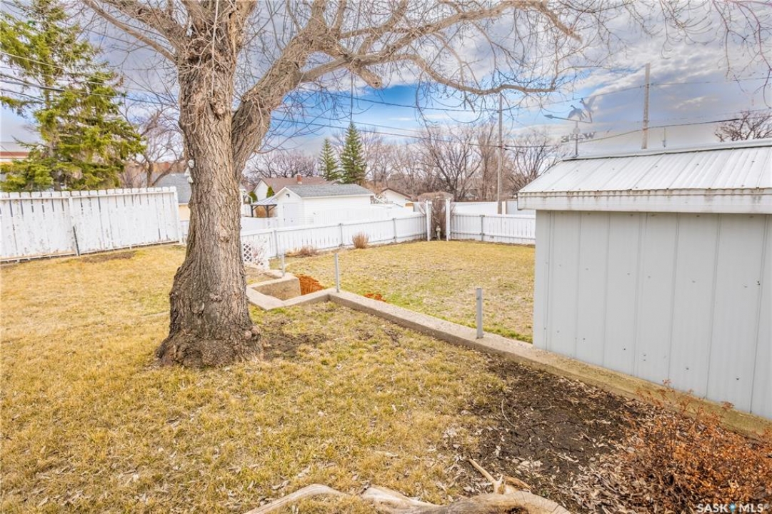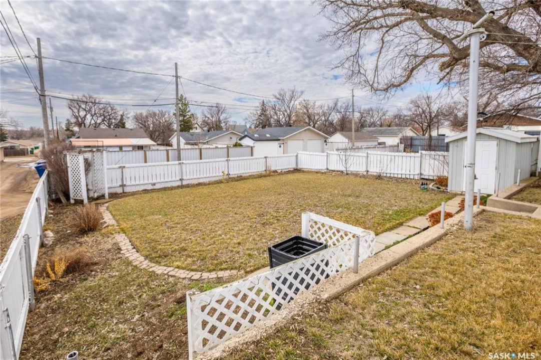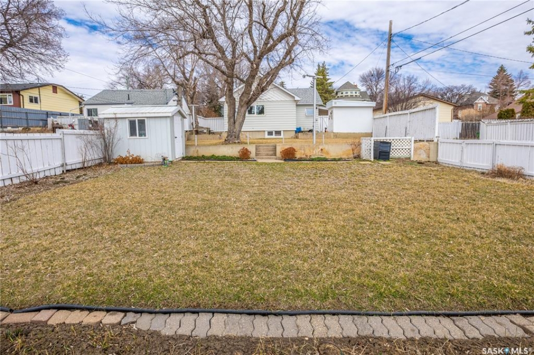 Located at 215 Oxford St W, close to Central Collegiate, St. Agnes, and King George School, this well-maintained home features a beautifully tiered backyard with mature trees, and plenty of gardening potential. You're greeted at the front by an interlocking paver driveway leading to a carport. Inside, a front porch opens into a bright living room with a large picture window. The space flows into a spacious kitchen and dining area at the back of the home, filled with south-facing light and overlooking the yard. The main floor includes a full bathroom and two bedrooms. Downstairs offers an additional bedroom, a second bathroom with shower, a large family room, utility area, and cold room for storage. Good ceiling height adds to the overall functionality of the lower level. This home has been owned by the same family since 1971 and has been well maintained over the years. Updates include siding, many triple-pane windows, exterior doors, eaves, soffit, roof, water softener (2025) and a water filtration system (owned).