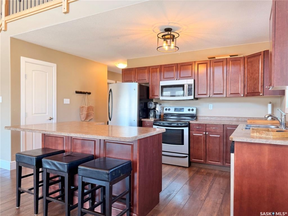 Welcome to this stunning cabin in Hitchcock Bay, offering 1,612 sq ft of inviting living space with soaring vaulted ceilings and warm pine finishes that create a true lakehouse feel. A beautiful floor-to-ceiling stone fireplace anchors the living room, adding warmth and character while large windows frame peaceful views of the surrounding green space. The open-concept main floor is designed for gathering, featuring a spacious living and dining area alongside a well-appointed kitchen with a large island, perfect for hosting family and friends after a day at the lake. Two generous bedrooms, full laundry, and a 5-piece bathroom with dual sinks complete the main level. Upstairs, the loft offers a private retreat with a spacious primary bedroom, cozy bonus sitting area, and a 4-piece bathroom, creating your own quiet escape at the end of the day. Step outside to the expansive wrap-around deck, ideal for morning coffee, evening sunsets, and summer entertaining. The 28 x 28 double garage provides ample room for vehicles, boats, and all your lake essentials. Located just a short walk to playgrounds and backing green space. Located just a short walk to playgrounds and backing green space. Hitchcock Bay offers an incredible lifestyle with access to a double boat launch, beaches, playgrounds, a 9-hole golf course, mini golf, fish filleting shack, community center, pickleball and multi-sport courts, summer programs for kids, swimming lessons, and exceptional fishing, making every season something to look forward to. Enjoy year-round potable water and high-speed internet. Call your favourite realtor to view today.