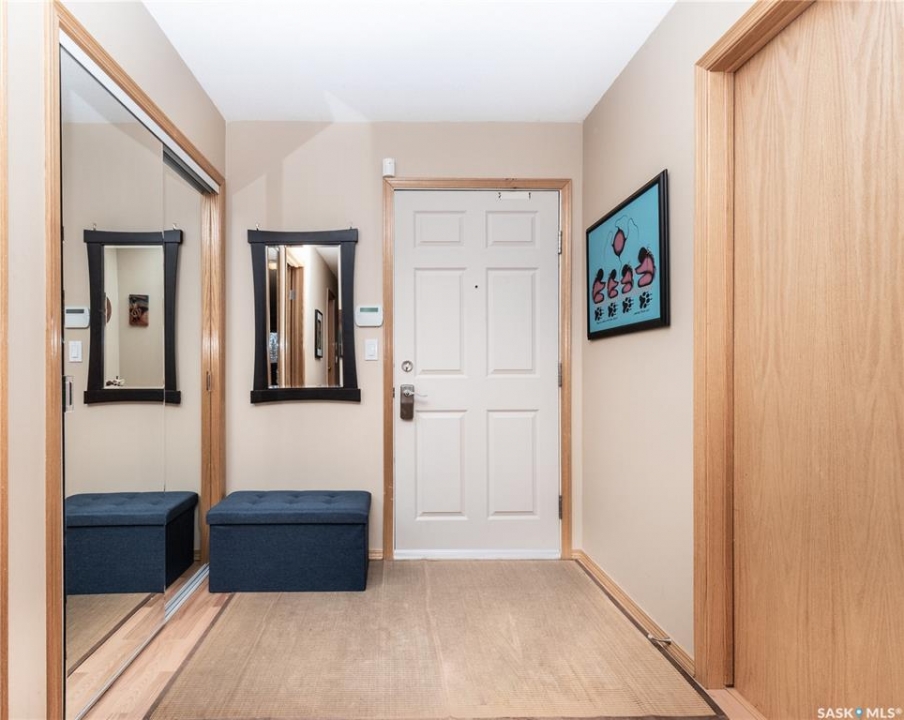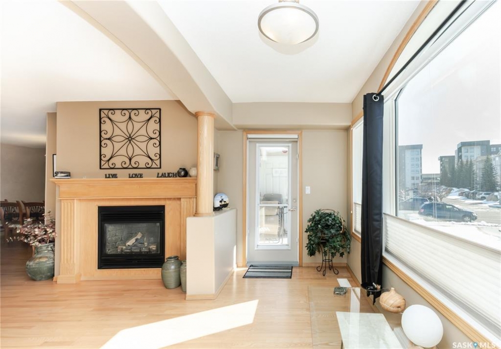 Welcome to #106 – 314 Nelson Road, a beautiful 1220 square foot, 2-bedroom, 2-bath condo in University Heights, one of Saskatoon's most walkable and connected communities. The Living Room is very spacious with a built-in gas fireplace and a sunroom-style space, which leads to a Southwest facing balcony with gas BBQ hookup. The kitchen is bright and functional, while the generous dining area easily accommodates a side hutch or china cabinet — a rare find in condo living. The primary suite is spacious and private, featuring a 3-piece ensuite with walk-in shower and spacious walk-in closet. Laundry/storage room is huge compared to most, with room for a freezer and a desk if you so choose. This main floor layout gives you the feeling of being in a house rather than an apartment. This well-managed building includes underground parking, elevator, storage room, guest suite, and an amenities room for social gatherings. Located within walking distance to groceries, restaurants, salons, clinics, and more — it's the perfect setup for a retiree seeking space, style, and simplicity. Condo's this size do not come up very often. Call your Realtor to view today!