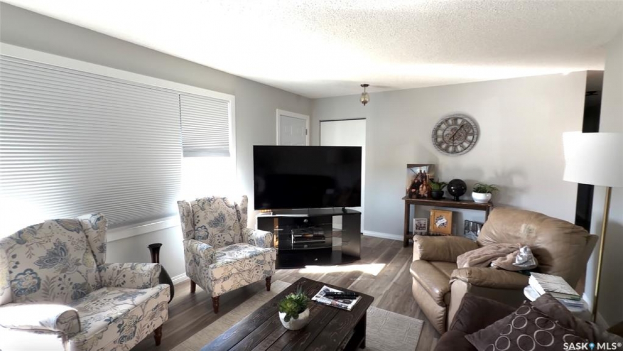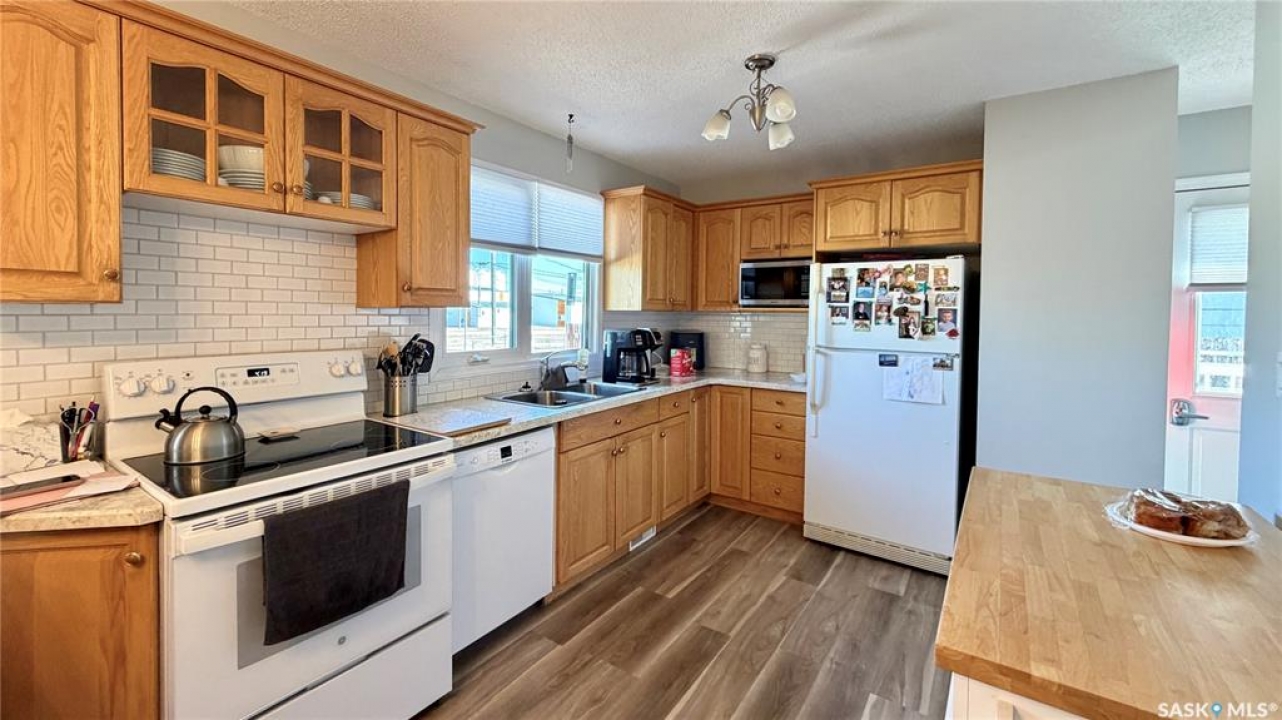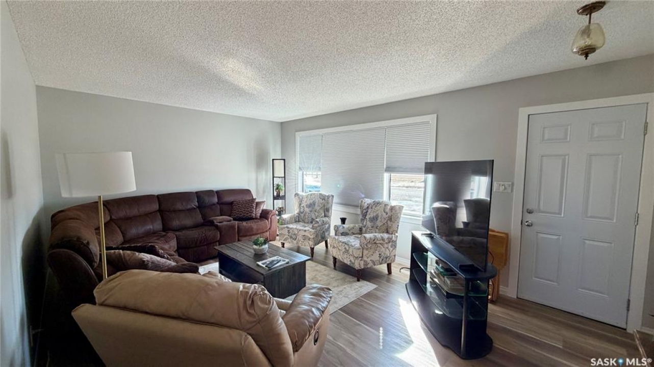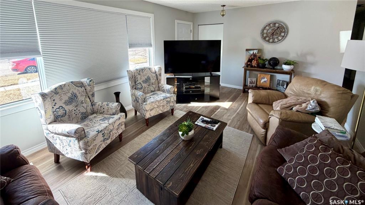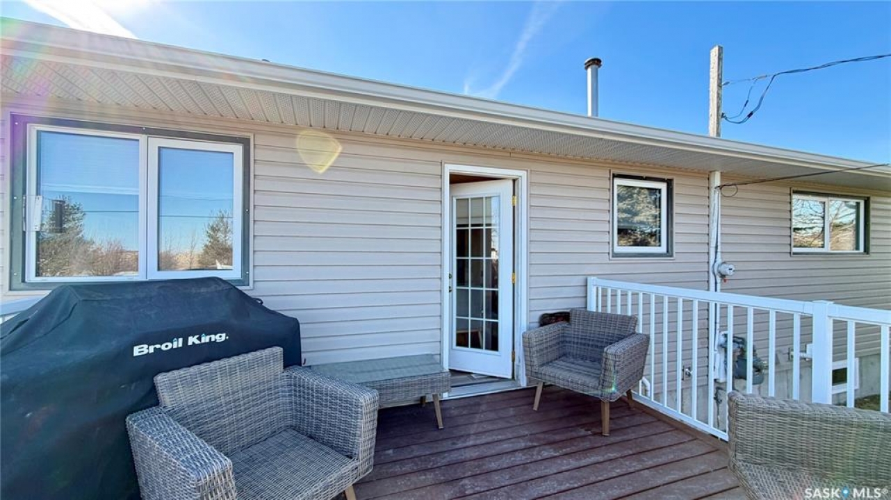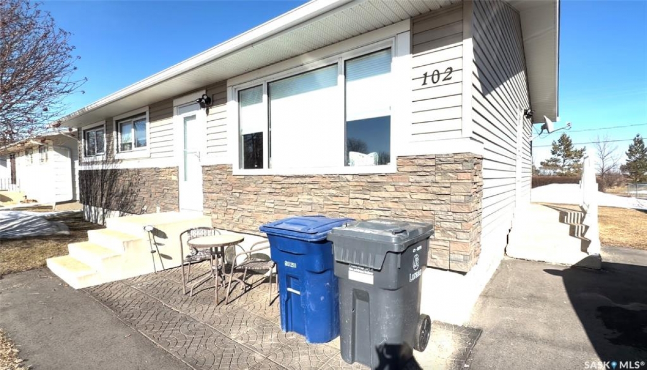 Welcome to 102 Government Road in DAVIDSON, SK. This WELL-MAINTAINED 4-bedroom, 2-bathroom bungalow offers 1,040 sq ft on the main floor with a bright living space, functional kitchen and dining area, and THREE BEDROOMS up. The fully finished basement adds a large family room, additional bedroom, office, storage, and a 2-piece bath, giving you plenty of flexible living space. NUMEROUS UPDATES include furnace (2013), shingles (approx. 2021), windows (approx. 10 years ago), refurbished deck (2023), front door (2026), tub surround (2025), stove (2025), new blinds (2026), and updated flooring (2023). Situated on a 62 x 120 ft lot, this property features mature trees, a spacious yard, and an asphalt driveway with parking for 4 vehicles. Great opportunity for buyers looking for an affordable home in Davidson, Saskatchewan with space and updates already in place.