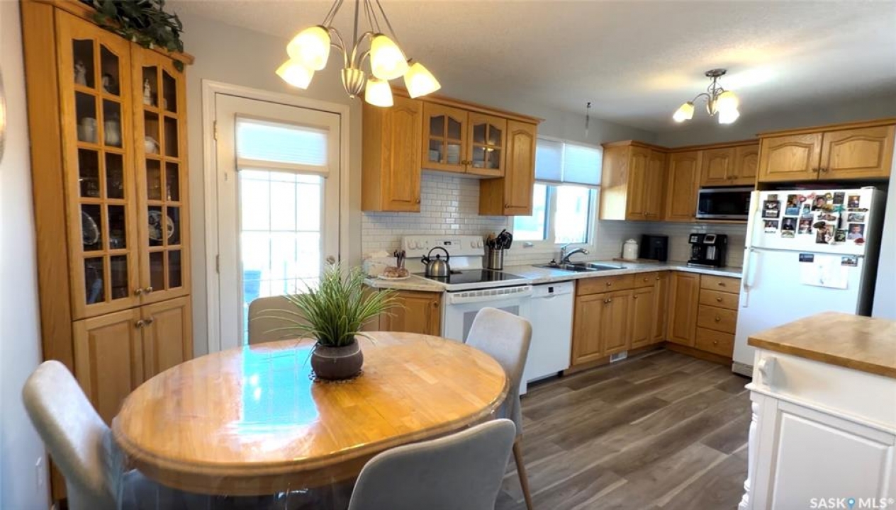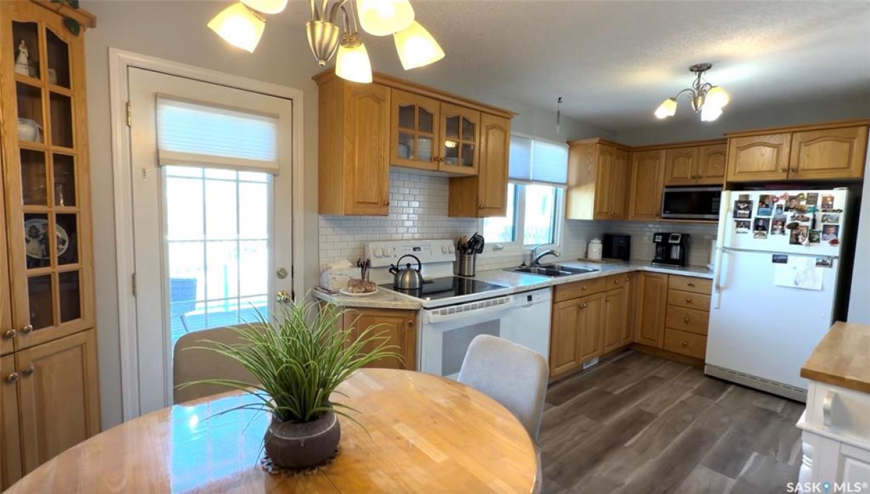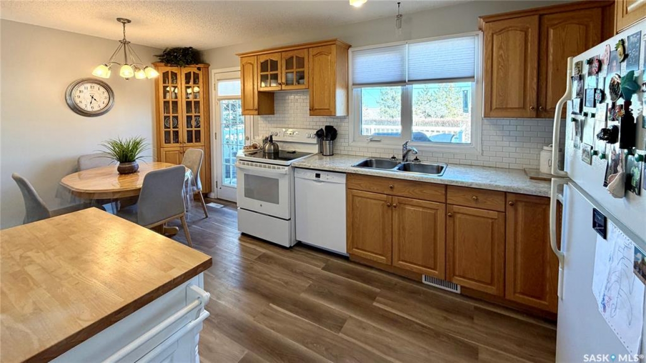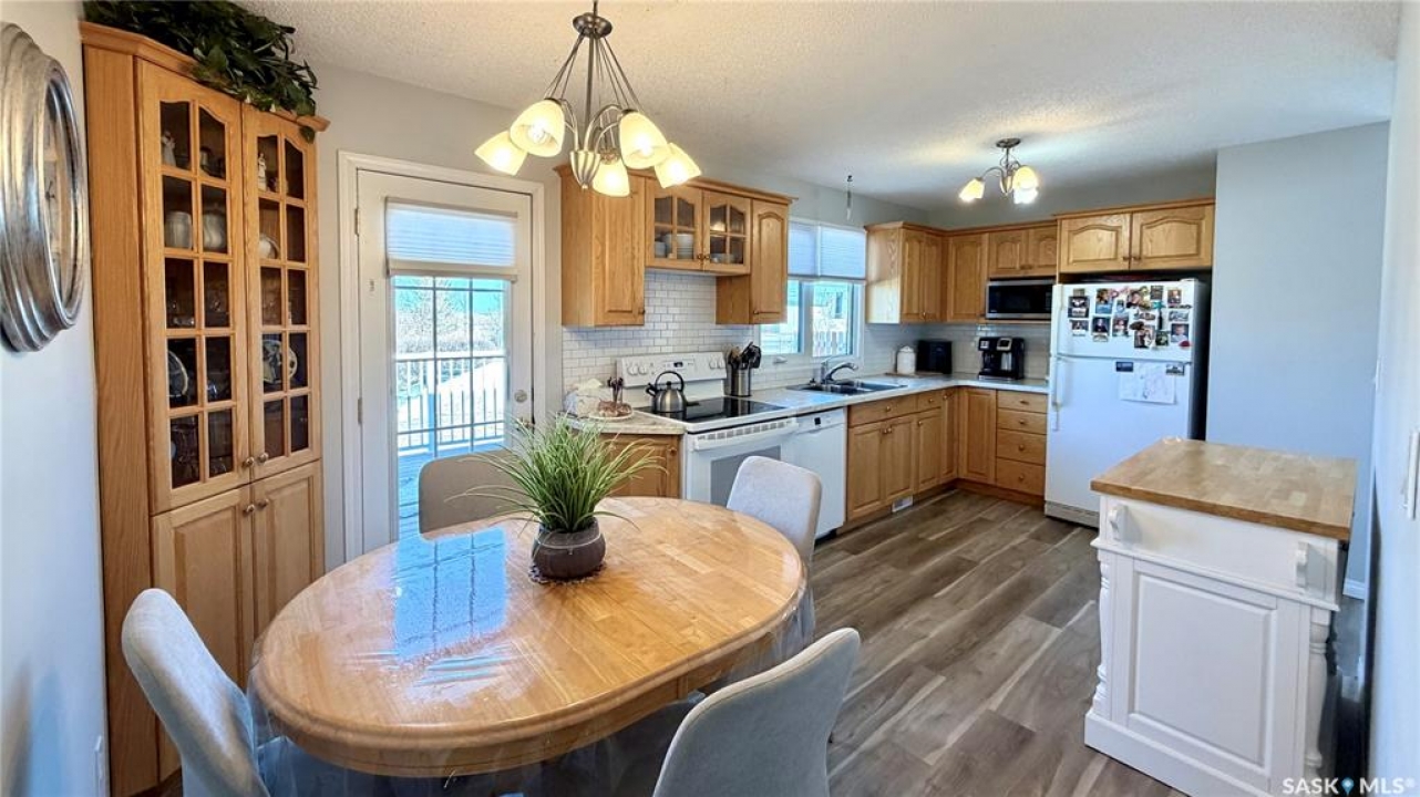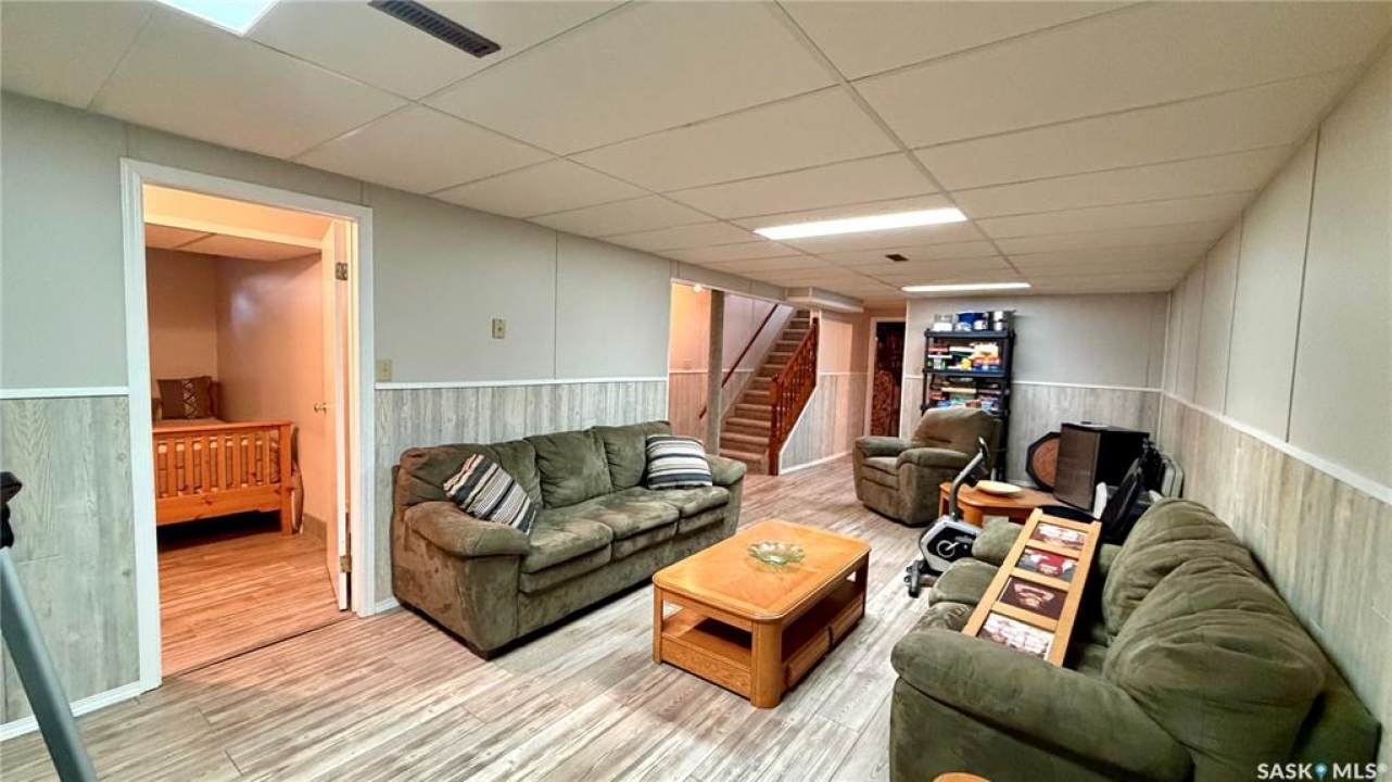 Welcome to 102 Government Road in DAVIDSON, SK. This WELL-MAINTAINED 4-bedroom, 2-bathroom bungalow offers 1,040 sq ft on the main floor with a bright living space, functional kitchen and dining area, and THREE BEDROOMS up. The fully finished basement adds a large family room, additional bedroom, office, storage, and a 2-piece bath, giving you plenty of flexible living space. NUMEROUS UPDATES include furnace (2013), shingles (approx. 2021), windows (approx. 10 years ago), refurbished deck (2023), front door (2026), tub surround (2025), stove (2025), new blinds (2026), and updated flooring (2023). Situated on a 62 x 120 ft lot, this property features mature trees, a spacious yard, and an asphalt driveway with parking for 4 vehicles. Great opportunity for buyers looking for an affordable home in Davidson, Saskatchewan with space and updates already in place.
