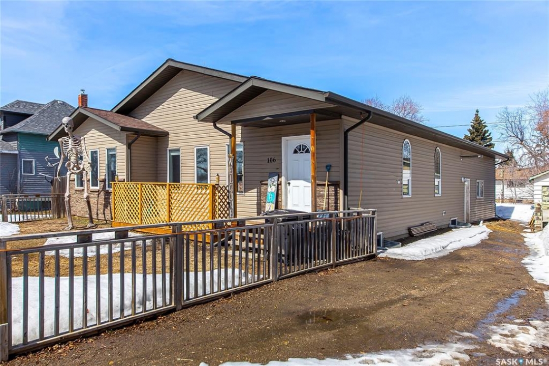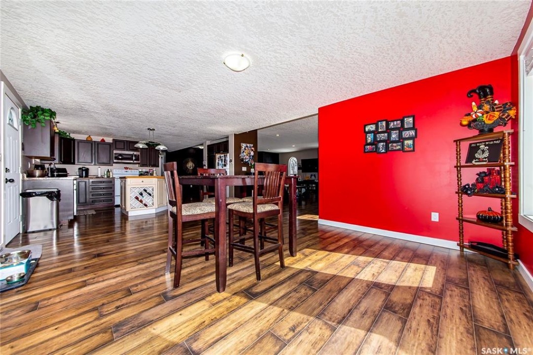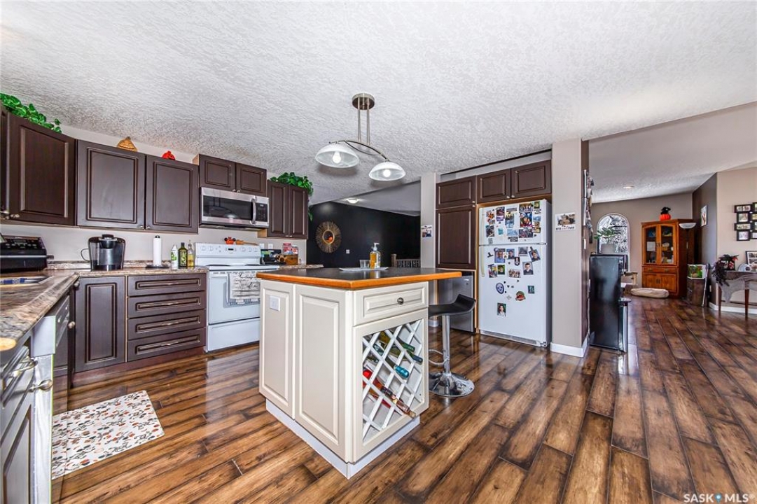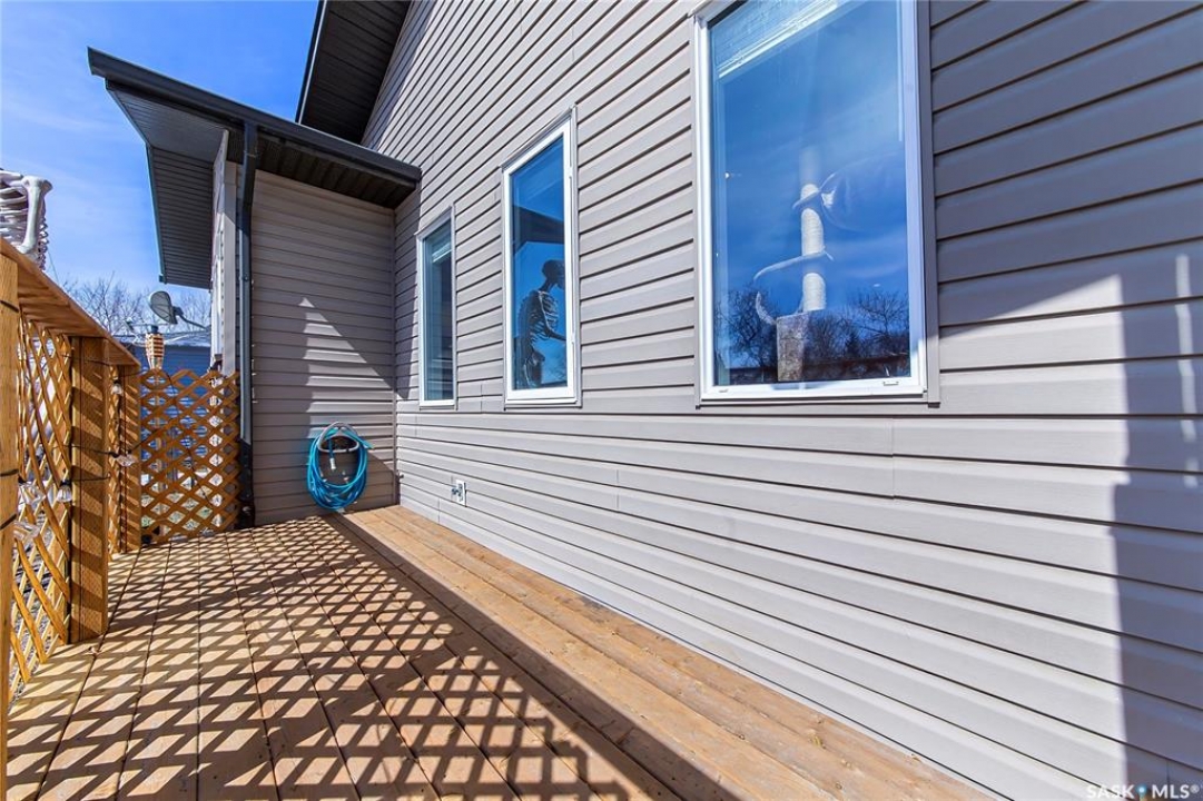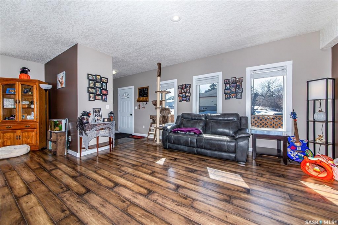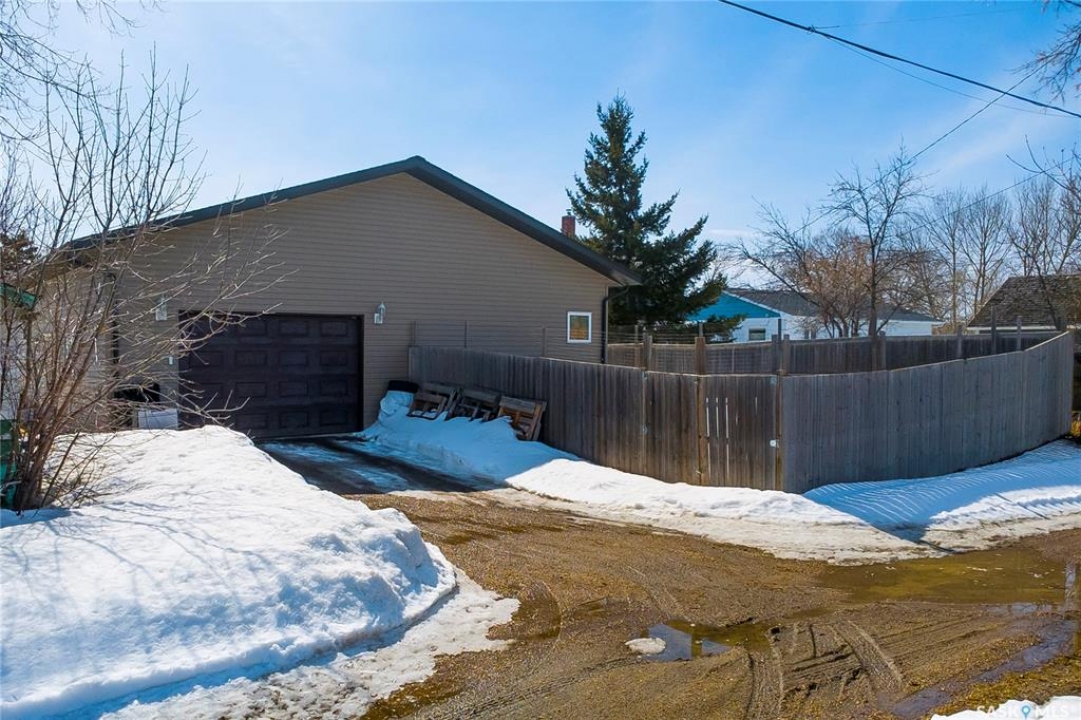 So, would you like to live in one of the Coolest Homes, Ever!!!!!!! From the 1st step into the front yard, there's a very cozy coffee deck off the front entranceway and one around the side to either be in or out of the sun. Niiice. Open the front door and WOW!!!!! Huge, wide open floor plan with so much potential to be anything you'd like it to be. The current owners have it decorated co cool. It is set up for entertaining and livin' the good life. Loads of cabinets and a nice sized island to doll this kitchen up. Fridge, stove, built in dishwasher, Microwave hood fan for easy living. Master bedroom has a walk in closet and a 3 pc ensuite bathroom, 2nd bedroom and a 2nd 3 pc bathroom and another room used as a den and storage room. Super wide staircase that goes down to the basement and opens up to a Funky Jam Session Area and a large family room!!!!!!! There's an area that could be turned into a potential 3rd bedroom and there's roughed in plumbing for a 3rd bathroom, as well. Huge utility room/laundry area with upgraded 200 amp panel and an on demand water heater for endless supply of hot water. Oversized single heated garage with direct entry that could fit 2 smaller vehicles when it's 40 Below!!!!!!!!!! Come out for a drive if you're tired of the city rat race and check out some spacious, small town living.