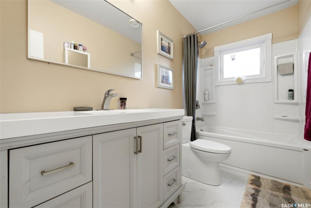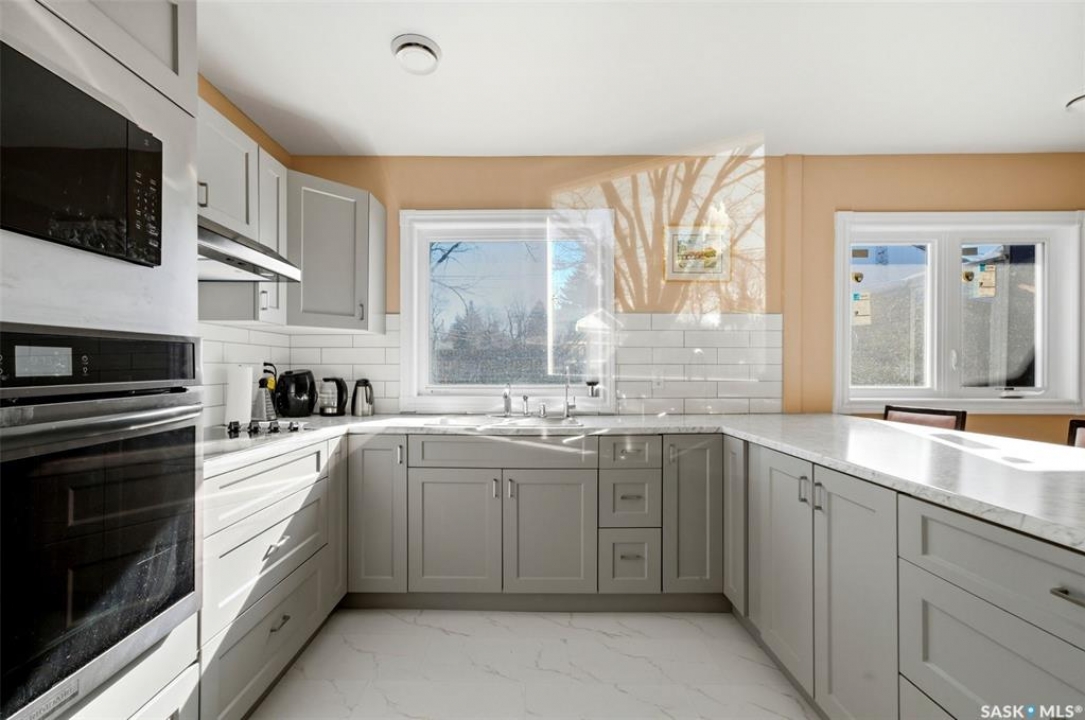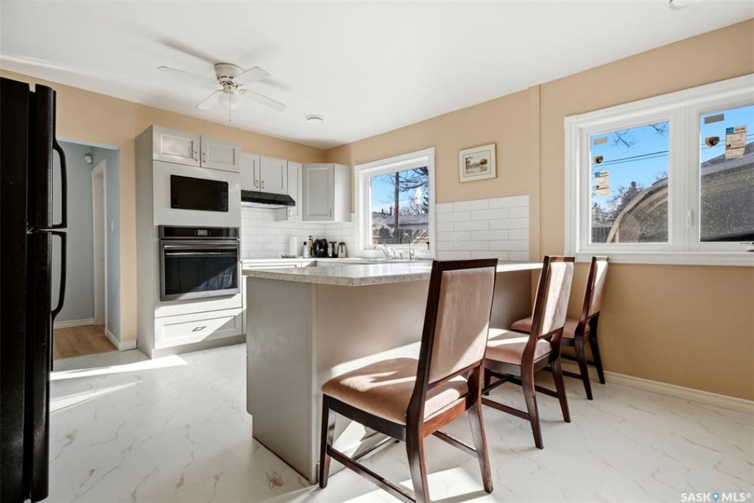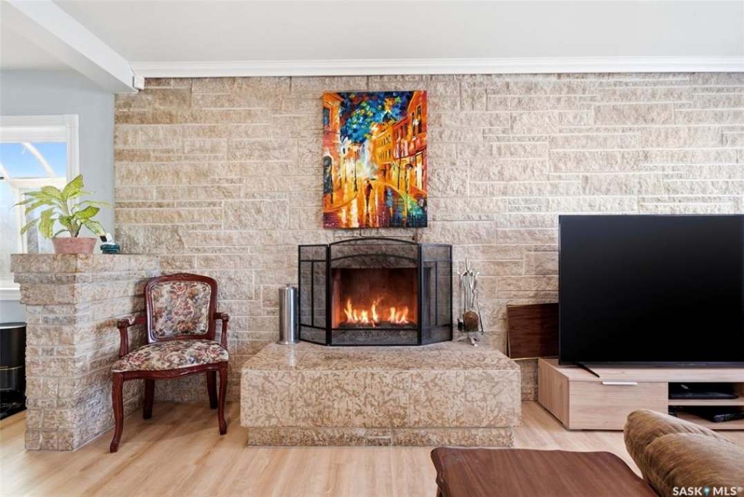 Bright, move-in ready bungalow with a warm, welcoming feel throughout. The main floor offers a spacious living room with a striking stone fireplace feature wall, large front windows, and built-in shelving, plus a fully updated kitchen completed in 2023 with modern cabinetry, counters, appliances, tile backsplash, built-in oven, cooktop, and an oversized island with seating. The main bathroom was also completely redone in 2023 with updated fixtures, plumbing, surround, and finishes. Good-sized bedrooms and new vinyl flooring throughout add to the home's clean, contemporary appeal. Extensive upgrades include central air (2021), new roof decking and shingles (2022), spray foam attic insulation (2022), all new vinyl triple-pane argon-filled windows (2023), upgraded utilities and aluminum mast (2023), new studding and shiplap insulation (2023), plus updated drywall, paint, ceilings, walls, and baseboards throughout (2024). Additional improvements include a high-efficiency furnace (2024), smart programmable thermostat (2024), smart high-efficiency water softener (2024), and rented high-efficiency water heater (2024). Outside, you'll find a large fenced yard, an enclosed patio/sunroom area (in need of repair), and a detached single garage with extra parking out front. A great opportunity for buyers looking for comfortable one-level living with stylish updates and functional space.