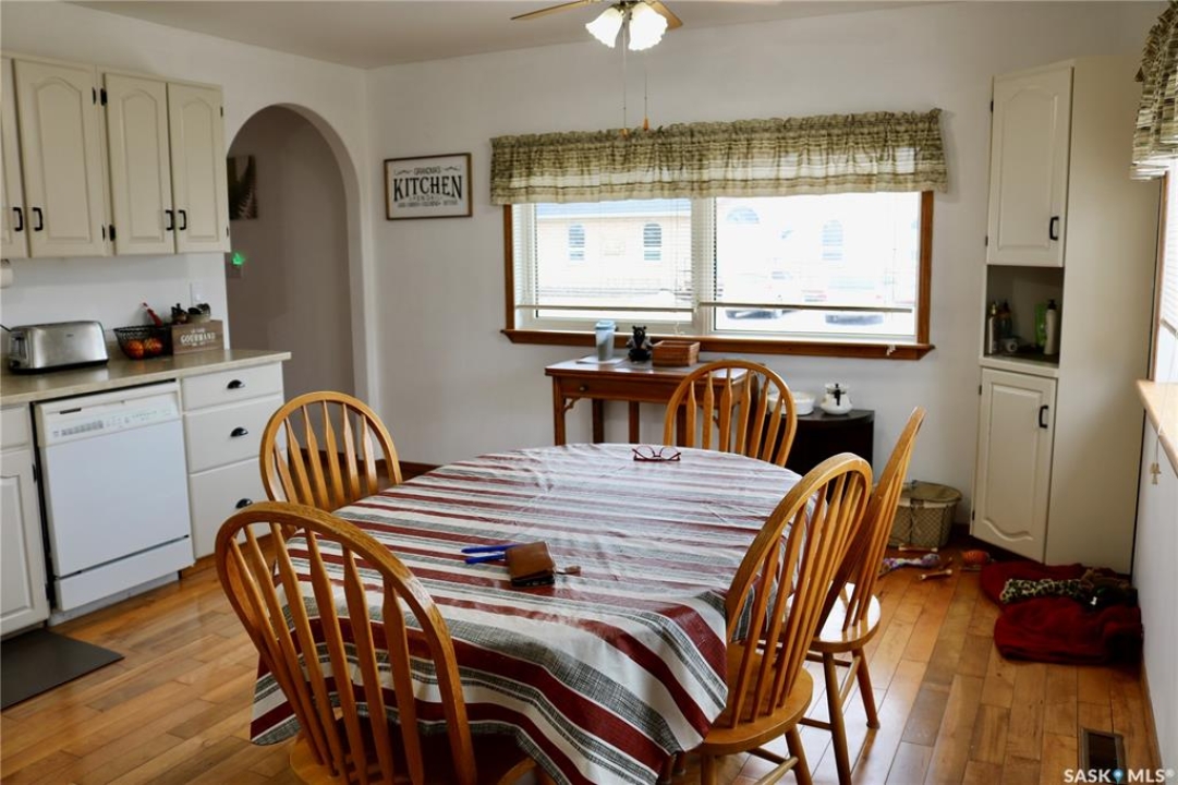 Here's a great option that's move in ready! Income potential with a basement suite to help pay your mortgage. This spacious 1300 square foot home has so many great features. Come on up the side entrance to the covered back deck - the perfect place to sit outside and enjoy the fresh air. Large entry leads to the huge eat-in kitchen with ample cabinetry, hardwood flooring and tons of natural light. Next is the computer nook and across from it, the handy main floor laundry. Large foyer at the front door. Nice sized living room with more gorgeous natural lighting. Two spacious bedrooms share the main 4 piece bath. The basement is set up for a one bedroom income suite with its own 3 pc bathroom, laundry, kitchen, and living room. Good sized storage room with access to the utility space with water heater and newer high efficient furnace. Outside, you're all set for a back up generator with a generac hookup at the meter. 24x24 garage, a 12x24 insulated workshop with gas heater, and a garden shed. Fantastic location and a great neighborhood - easy walking distance to the store, schools and downtown. Contact your agent to view!