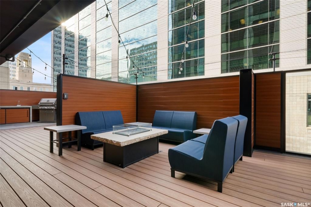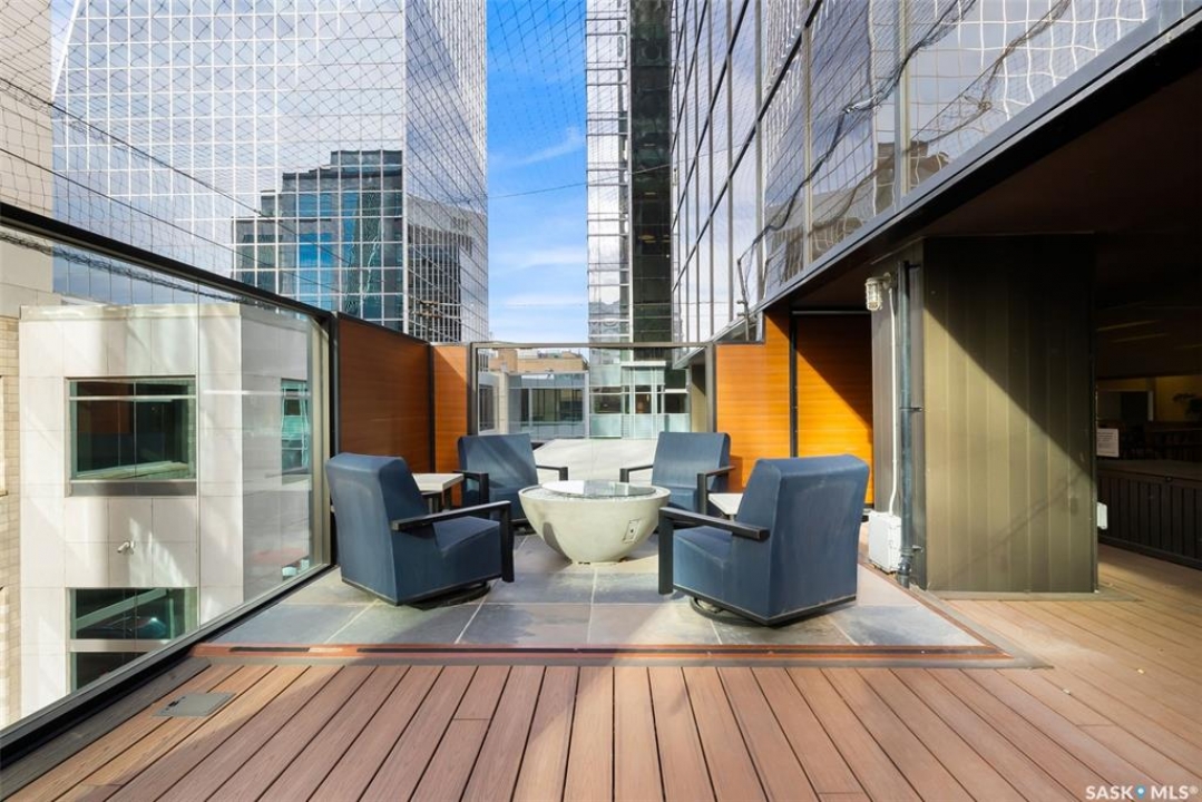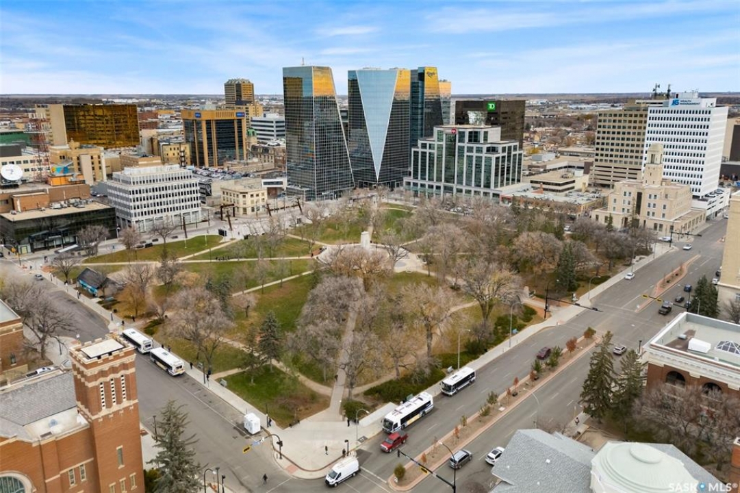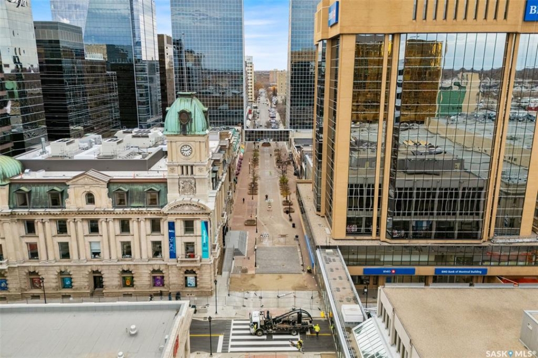 Welcome home to 1002 1914 Hamilton Street in the swanky Manor on Hamilton giving glorious 10th floor views of the Regina city skyline. This prestigious building has received an unparalleled modernization: Chiller for the central air conditioning; curtain wall & glazing; all new roofing on each section of the building; residential rooftop terrace is new with composite materials; and a glorious & inviting lobby + elevator modernization. Living here means you enjoy desirable concierge/security services, all utilities included in the condo fees (+central air, air filtration, softened hot water), wheelchair accessibility in the building, exercise room with quality working equipment, heated underground parkade & an amenities room with renovated outdoor terrace that can be booked to host friends & family when our SK Roughriders are playing. Coming home each day will restore your energy as you're greeted by wall-to-wall windows flood the main living spaces with natural light. Stainless steel appliances, ample counter space, & eat up island seating 4 comfortably - the ideal spot to throw a soirée! With the numerous functional choices for furniture placement within this space you can accommodate a dining area as well. The spacious master bedroom boasts a custom walk-in closet that will easily meet your needs. A nicely appointed den can be used as an entrepreneurial office, or creative space. Finally, the elegantly sized in-suite laundry room and full bathroom work to complete the space. Condo fees include: Heat; Power; Water; Sewer; Garbage; Reserve Fund/Common & External Building Maintenance/Insurance and there is an option to rent a parking stall for a monthly fee. Walkable to Regina's financial district, local eateries + shops, parks, historical sites, and connected to the beloved & desirable neighbourhoods of Cathedral, Crescents, Centre Square and the Warehouse District. Start living the big city energy lifestyle right here in the heart of Regina SK!