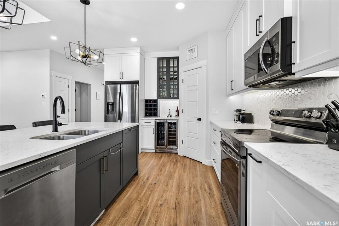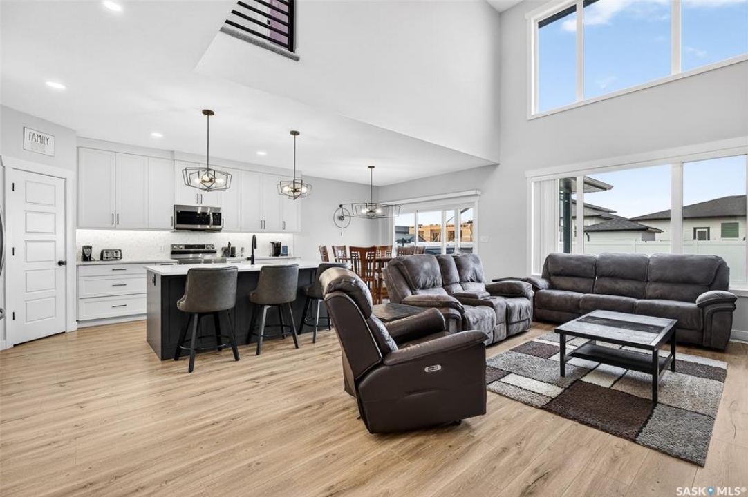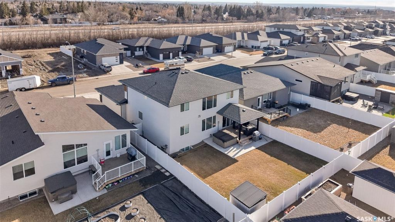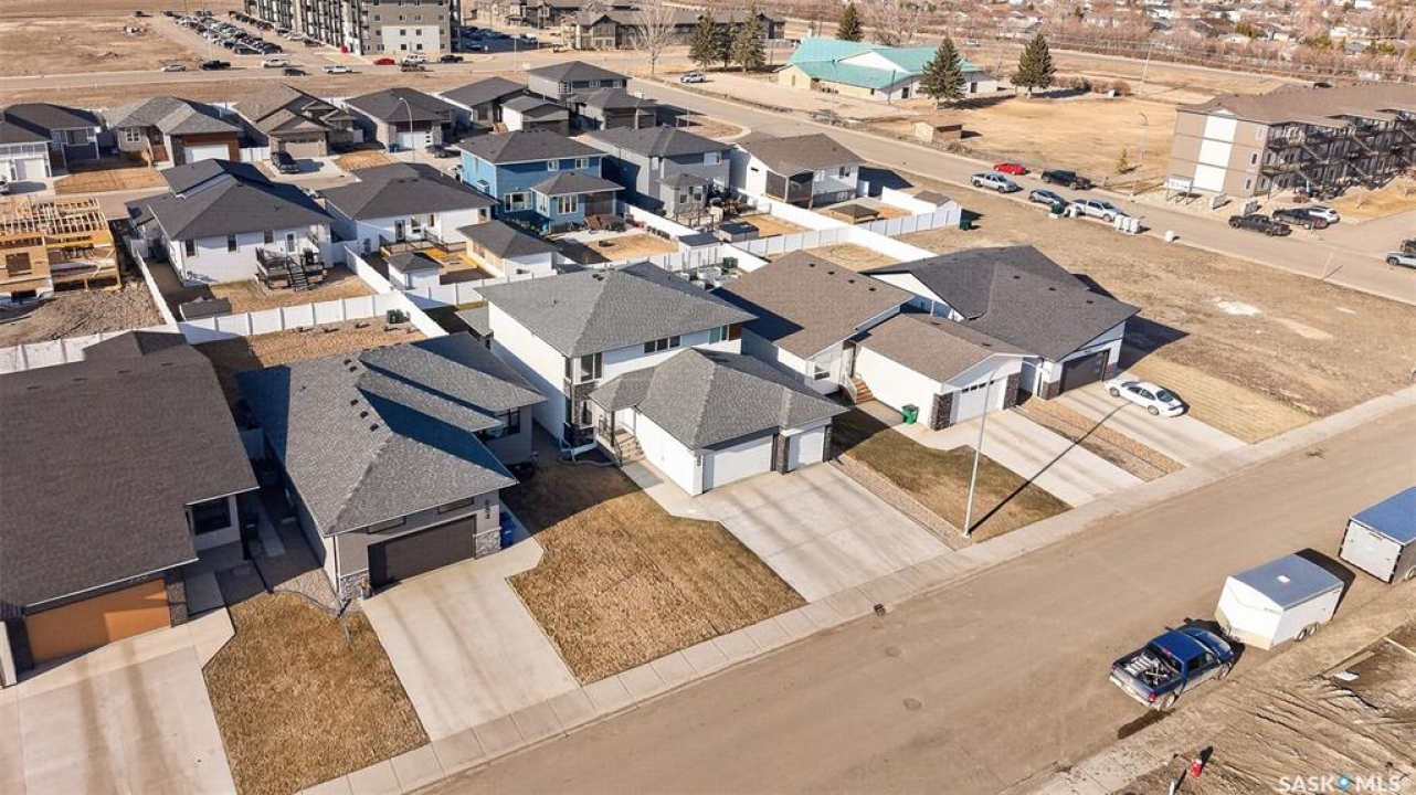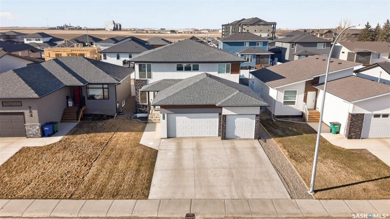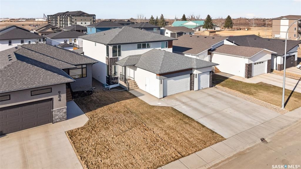 This just might be your DREAM HOME! Welcome to 978 Maplewood Drive in the desirable, family friendly West Park area of Moose Jaw! This stunning home is thoughtfully designed to seamlessly blend luxury with everyday functionality and offers over 2600 sq ft of refined and cohesive finishes throughout A welcoming front foyer framed by large corner windows immediately sets a bright, airy tone. Nearby, a thoughtfully placed mudroom, with large walk in close, and laundry area offers everyday convenience with direct access to the attached, heated triple car garage! The main living space is nothing short of impressive, with dramatic two storey ceilings and oversized windows that fill the home with natural light. A striking, full height custom fireplace wall serves as the focal point, adding warmth and architectural interest to this inviting space—perfect for both quiet evenings and entertaining. The kitchen delivers both style and performance, offering a fresh and crisp feel with its white cabinetry and oversized island with gorgeous quartz countertops! Off the main living area is the Primary Bedroom which offers a serene escape, complete with a luxurious ensuite showcasing his and hers sinks, a freestanding soaking tub, tiled shower, private water closet, and an expansive walk in closet. Above, the second level offers an open, versatile bonus living area, a divided layout of 1 bedroom and one full bath to the left and 2 additional bedrooms with ‘jack and jill' style bath, all overlooking the main level while maintaining excellent separation of space. Downstairs, the fully developed lower level provides even more room to spread out, featuring a comfortable and cozy family room a spacious flex room currently used as a home gym, a fifth bedroom with walk in closet, and full bath. Step out the patio doors to find yourself in your fully fenced and landscaped backyard, with covered deck - Perfectly designed for outdoor entertaining and relaxation!
