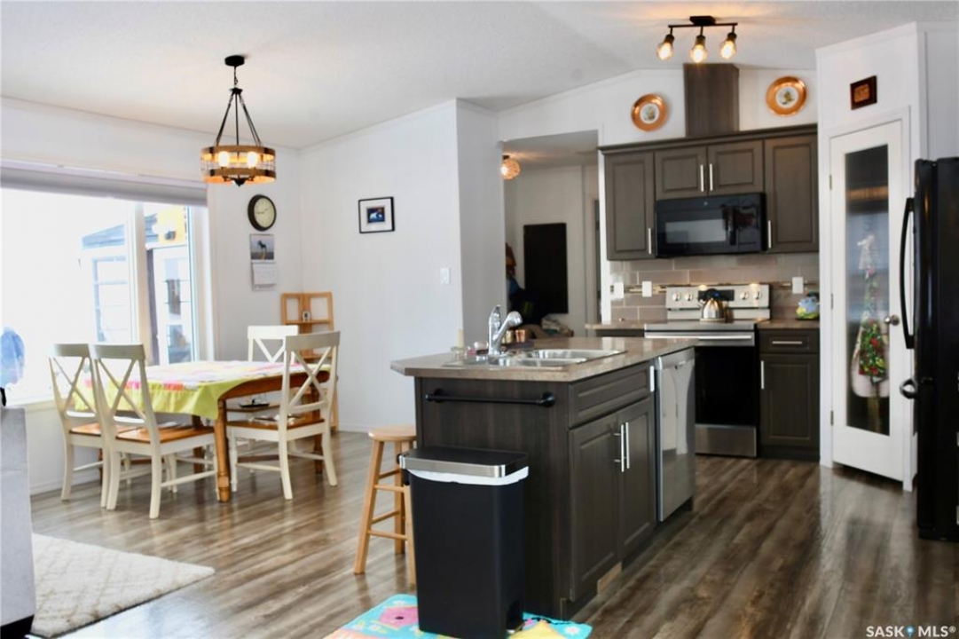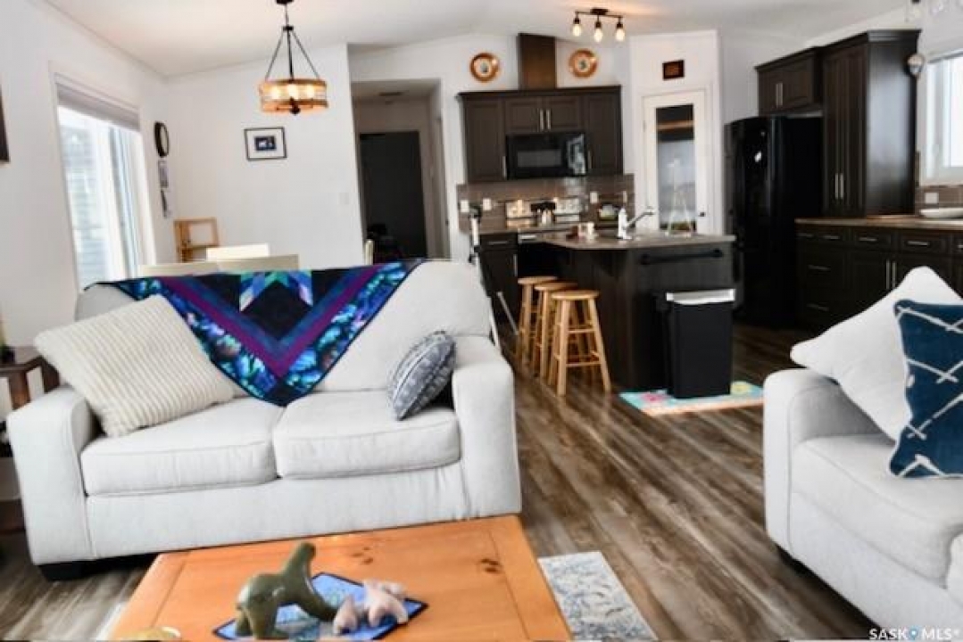 Beautiful move in ready 1520 Sq. ft modular home located on a large semi private lot in the quiet town of Fleming Sask. This home features one level living with an open kitchen - dining - living with a large master complete with full ensuite and walk in closet. 2 additional spacious bedrooms and a second full bathroom. Updated modern lighting installed fall of 2026. Interior had all fresh paint fall of 2025. New dishwasher and new washing machine. Large windows on both east and west sides provide nice views and bright natural lighting. House is in all new condition, ready to move in. This modular is installed on professionally installed screw piles, has a fully insulated and sided skirt, a new 16x20 foot deck with new railings. New cement sidewalks installed fall of 2025 and a professionally installed cement pad for a hot tub complete with new wiring for hot tub. Sale includes the new 2025 - 6 person hot tub (new value approximately $25,000.00). There are two storage sheds on the property - a 12x16 and a 10x12 shed. Both are well built, wood floors, ramps to store lawn mower, lawn and garden supplies. One has a newly build work bench. Lot is open to the west and north, borders a natural draw/creek and has shelter trees planted on the north-east side. There is a second septic tank located west of the house (previous owner had considered putting in a shop with drainage to it). Large lawn (riding lawn mower may be negotiated), ample garden which could be expanded. The Town of Fleming is located on the #1 highway 5 km. from the Sk-Mb border, Moosomin is 15 km west and is a full service community with schools, doctors, dentists, hospitals, shopping and more. Fleming is a quiet, friendly community with approximately 90 residents, active community center, many young families with school age children, school bus for the kids. Great property with incredible $ value on it. This will be the most cost efficient 3 bed 2 bath you'll find. Give us a call today.