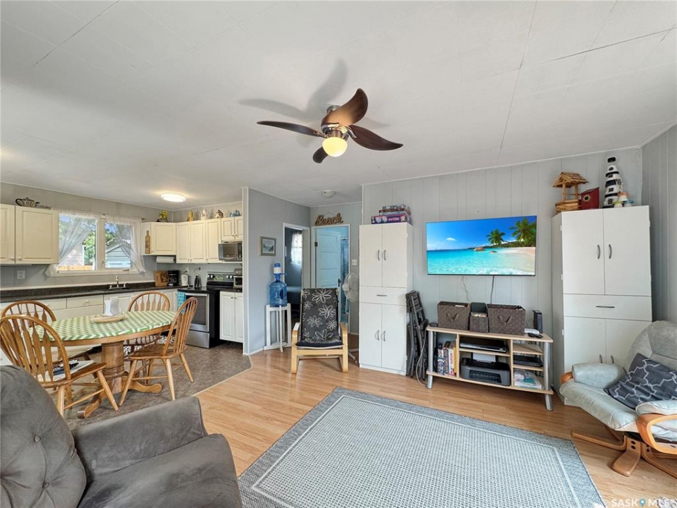 Discover your perfect getaway at this adorable, open-concept cabin nestled in a serene crescent setting. Located just a short stroll from the main beach, this location offers both tranquility and convenience. Whether you're looking for a peaceful retreat or a place to entertain, this cabin has it all, featuring a spacious backyard with a deck for entertaining, a cozy fire pit area for evening gatherings, and two large sheds for all your lake toys. There's even rear access to park a camper or RV, or simply use the extra space for storage. Best of all, the cabin comes fully furnished—just pack your clothes and start making memories at the lake!