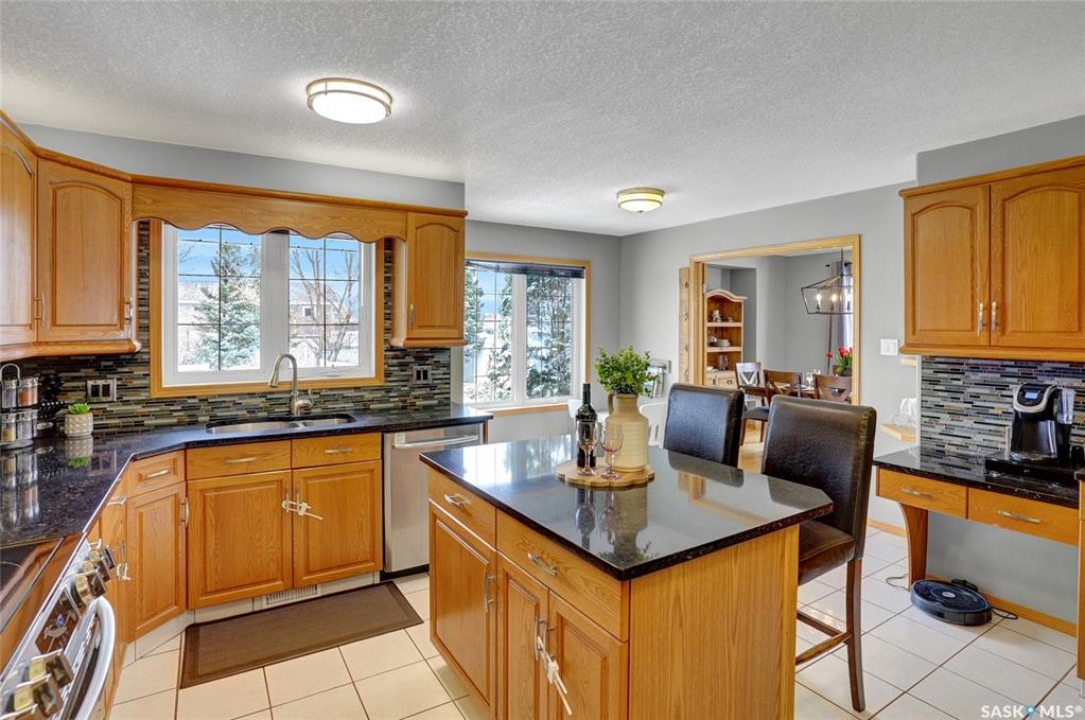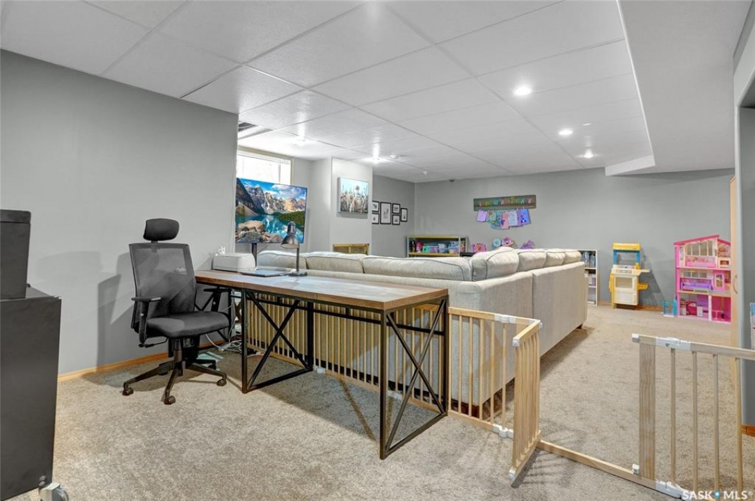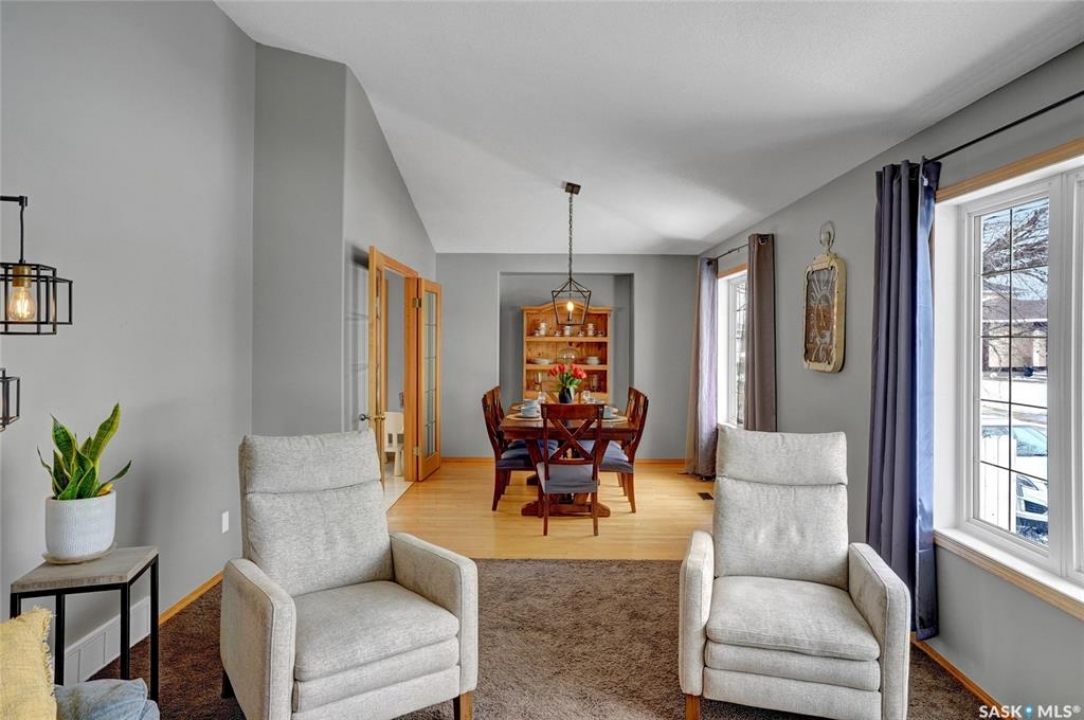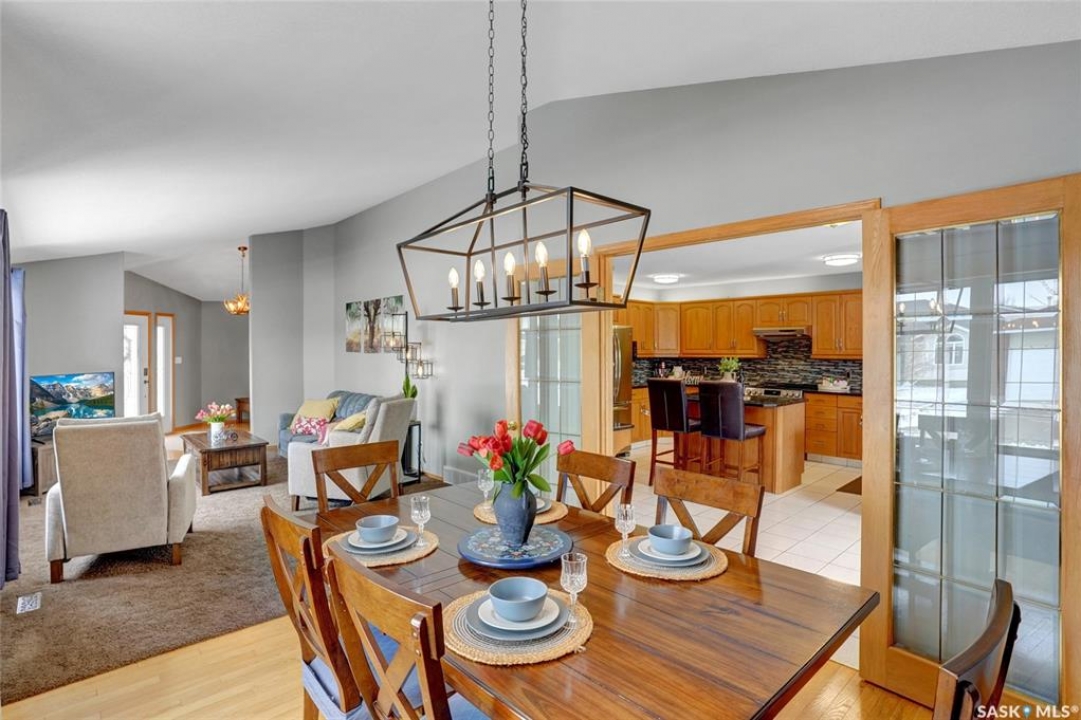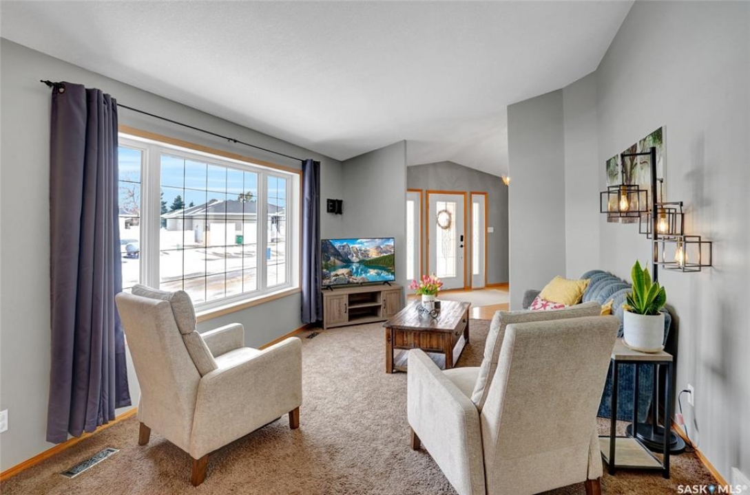 Discover the style & elegance combined with warmth & comfort in this custom-built executive home, a residence that truly stands out with its curb appeal in an extremely desirable cul-de-sac in the Sunningdale neighbourhood of Moose Jaw, steps to parks, school, outdoor skating rink & walking paths. As you step into the gracious foyer, you are immediately led to a spacious living room featuring a vaulted ceiling that adds a touch of grandeur. This room seamlessly joins a charming formal dining area, with French doors. These areas enjoy South facing windows w/tons of natural light. The large oak kitchen is a culinary haven, boasting beautiful quartz countertops, ample storage, coffee station/catch all counter & built-in pantry w/pull outs. A large window & patio door in the casual dining area overlooks the great-sized deck & landscaped, fenced yard, offering a serene view for your morning coffee or family meals. The main floor houses 3 well-appointed bedrooms, w/the Primary serving as a true retreat. It features a generous walk-in closet & renovated 4pc. ensuite, even has direct access to the deck perfect to add your hot tub. For added convenience, the main floor includes a 4pc. bath & laundry room adjacent to the oversized dbl. att. heated garage that has cubbies for the family. The lower level really showcases the expansive living space. A sizable family room, complete w/a gas fireplace, sets the scene for family gatherings or quiet evenings, then add the game area perfect as your flex area & still have room for the kids. This level also offers 2 bedrooms, an updated 4pc. bath & major storage area combined. This residence is a true haven for families, offering a harmonious blend of design, functional living spaces & charming outdoor settings. Experience the unmatched allure of 65 Jasmine Court & make it your next home. CLICK ON THE MULTI MEDIA LINK FOR A FULL VISUAL TOUR and call today for your personal tour to live more beautifully.