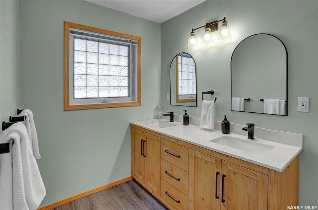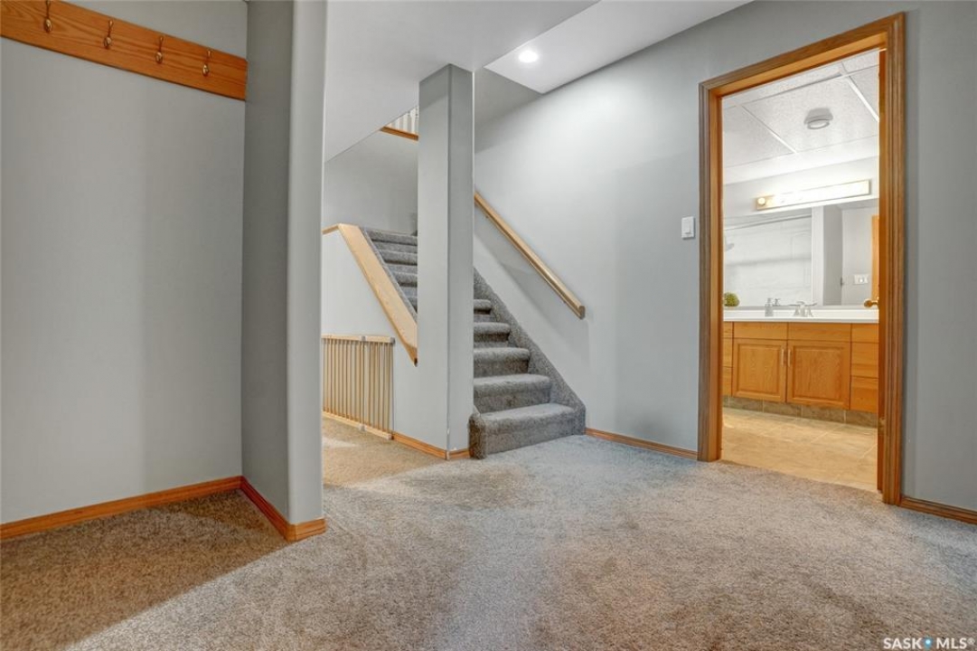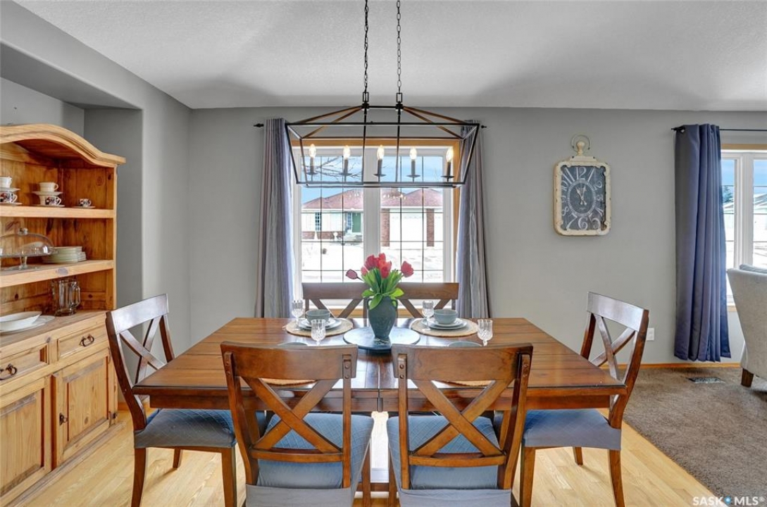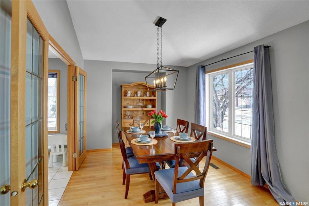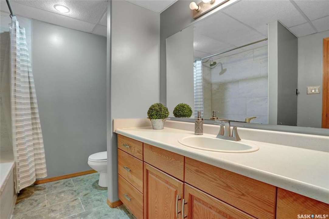Discover the style & elegance combined with warmth & comfort in this custom-built executive home, a residence that truly stands out with its curb appeal in an extremely desirable cul-de-sac in the Sunningdale neighbourhood of Moose Jaw, steps to parks, school, outdoor skating rink & walking paths. As you step into the gracious foyer, you are immediately led to a spacious living room featuring a vaulted ceiling that adds a touch of grandeur. This room seamlessly joins a charming formal dining area, with French doors. These areas enjoy South facing windows w/tons of natural light. The large oak kitchen is a culinary haven, boasting beautiful quartz countertops, ample storage, coffee station/catch all counter & built-in pantry w/pull outs. A large window & patio door in the casual dining area overlooks the great-sized deck & landscaped, fenced yard, offering a serene view for your morning coffee or family meals. The main floor houses 3 well-appointed bedrooms, w/the Primary serving as a true retreat. It features a generous walk-in closet & renovated 4pc. ensuite, even has direct access to the deck perfect to add your hot tub. For added convenience, the main floor includes a 4pc. bath & laundry room adjacent to the oversized dbl. att. heated garage that has cubbies for the family. The lower level really showcases the expansive living space. A sizable family room, complete w/a gas fireplace, sets the scene for family gatherings or quiet evenings, then add the game area perfect as your flex area & still have room for the kids. This level also offers 2 bedrooms, an updated 4pc. bath & major storage area combined. This residence is a true haven for families, offering a harmonious blend of design, functional living spaces & charming outdoor settings. Experience the unmatched allure of 65 Jasmine Court & make it your next home. CLICK ON THE MULTI MEDIA LINK FOR A FULL VISUAL TOUR and call today for your personal tour to live more beautifully.