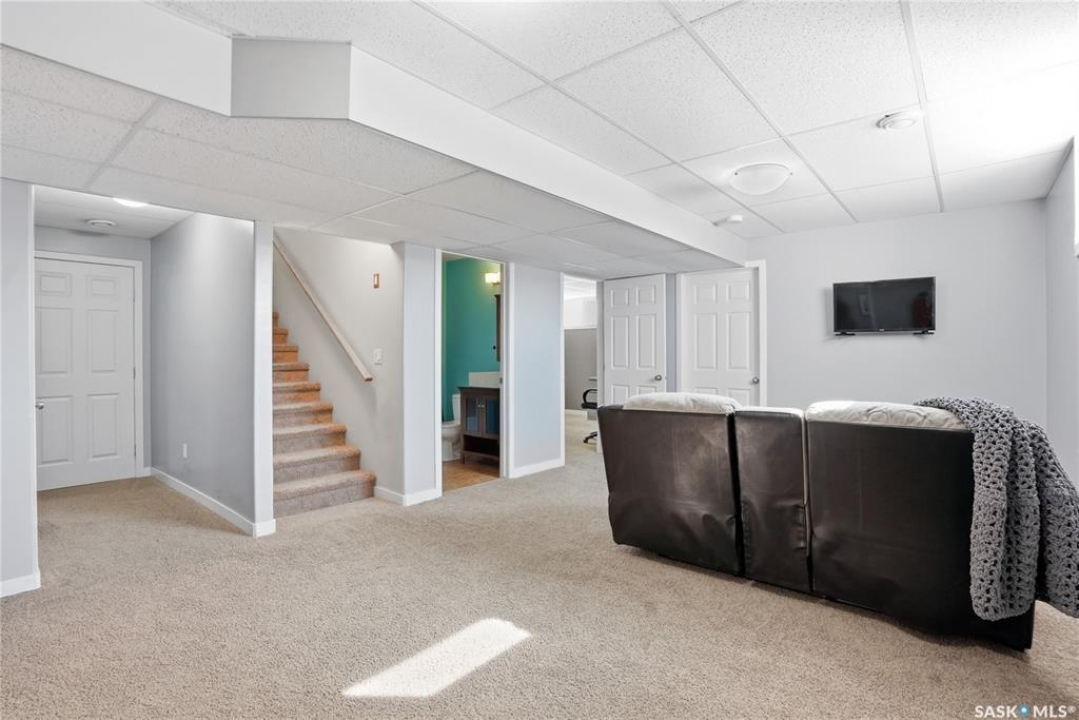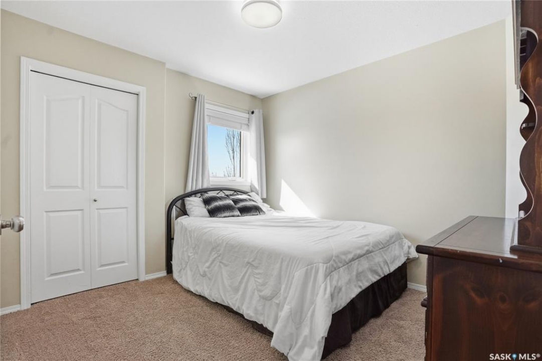 This is a great family home opportunity BACKING THE ELEMENTARY SCHOOL PARK at MacCormack Ranch in Martensville. This well laid-out bungalow offers vaulted ceilings, plenty of natural light, & a spacious, open feel throughout. Spacious U-shaped kitchen with large pantry, open to dining area, with garden doors to the large deck & back yard. 3 bedrooms & 2 bathrooms upstairs, primary bedroom features a 3-piece ensuite & walk-in closet. The fully finished lower level offers a family recreation/room space, utility/storage/laundry area, 3 bedrooms (one bedroom has a storage system that could be used in lieu of a closet or as a guest bedroom) & a full bathroom. The generously sized 2-car attached 24 x 26 garage is insulated, features double doors & direct entry to the home. Some upgrades to the property include newer high efficient furnace (Sept 2024), newer central air ( June 2023), newer water heater (May 2025), and newer shingles (Aug 2022). Martensville is growing in popularity as one of Saskatoon's full-service bedroom communities, offering a wealth of major services, good schools and all amenities in addition to a very short commute to Saskatoon on a good double lane highway. The potential is here to make this excellent home yours! Please note the solar system is not included in the sale, but could be purchased over and above if buyer chose to want it.