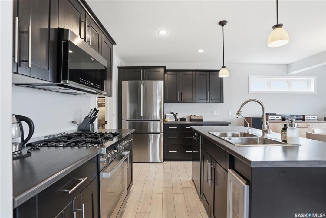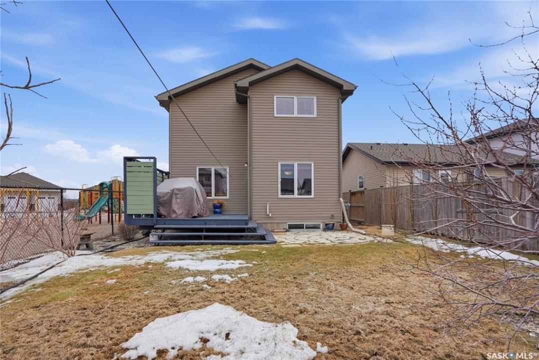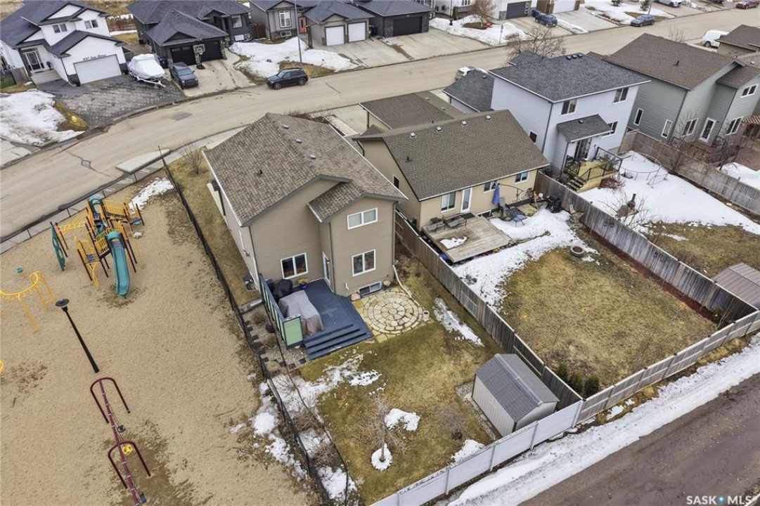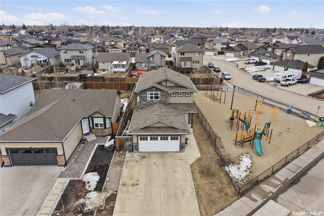 Welcome to 321 Stone Terrace in Martensville, a home that truly embraces family living in a community people love. Owned by the original owners, pride of ownership is evident throughout. Located directly beside a park, this is one of those rare setups where your kids can step outside and be right where they want to be. Whether it's after school, weekends, or summer evenings, you can keep an eye on them right from your window. With a quick and easy commute to Saskatoon and access to schools, parks, and everyday amenities, Martensville continues to be a top choice for families. This fully developed 1,476 sq ft two storey offers 5 bedrooms and 4 bathrooms with a layout that just makes sense. The main floor features an open living, kitchen, and dining space filled with natural light, overlooking the fully landscaped backyard and the park. The living room is anchored by a gas fireplace, creating a warm and comfortable place to gather. The kitchen is upgraded with high end appliances, a walkthrough pantry with plenty of storage, and connects seamlessly to the mudroom with main floor laundry. A spacious front foyer with higher ceilings makes a great first impression and adds to the functionality of the home. Upstairs, you'll find two good sized secondary bedrooms, a full 4 piece bathroom, and a primary suite complete with a walk in closet and its own 4 piece ensuite. The basement is fully developed with a family room, a 3 piece bathroom, and two additional bedrooms. One is currently set up as a home gym but can easily be converted back depending on your needs. Outside, the backyard is fully landscaped and features a deck, patio, lilac bushes, oak tree,, and a shed for extra storage. The fully insulated and heated garage is a huge bonus for Saskatchewan winters and central A/C to keep you cool in the summers. If you've been looking for a home that offers space, care, and a location that's hard to beat for families, this one is worth a look.