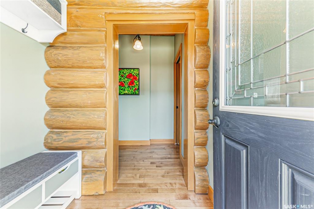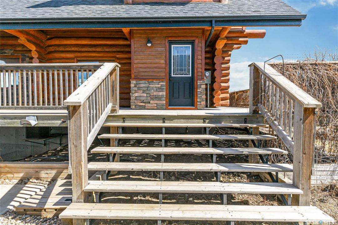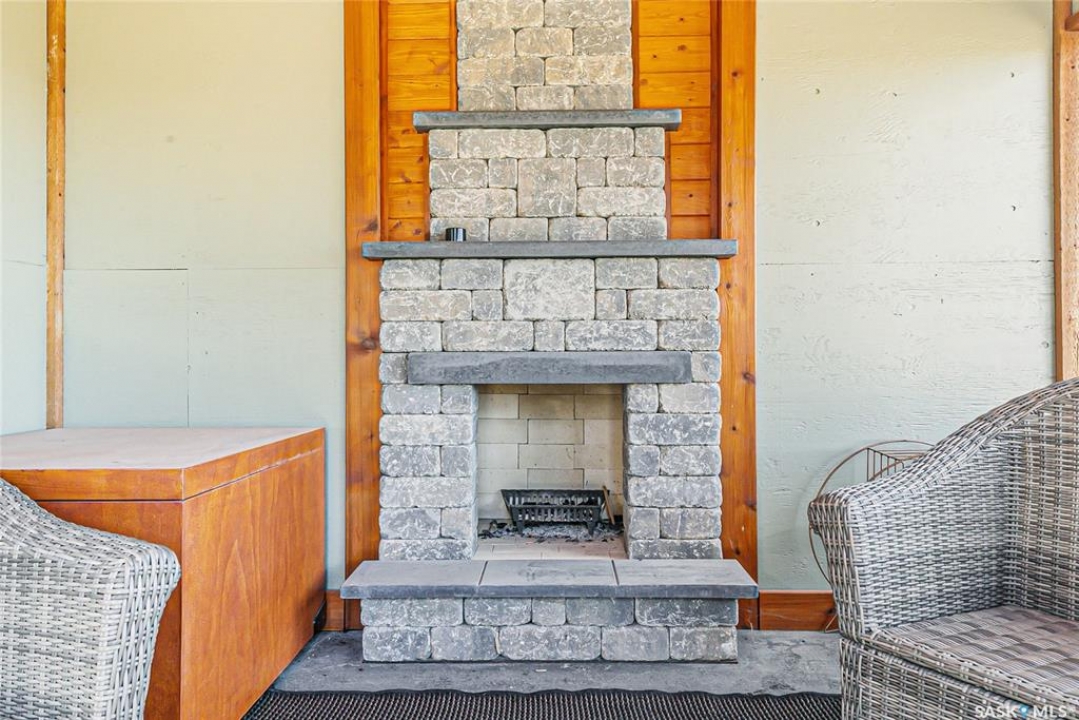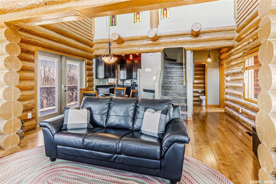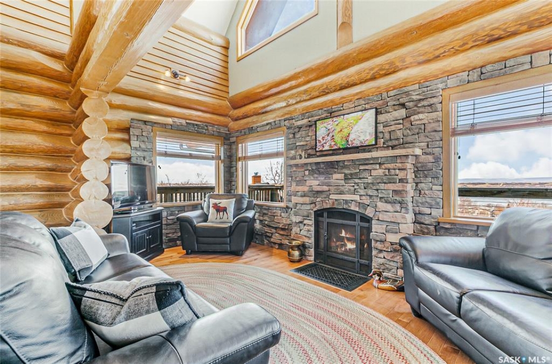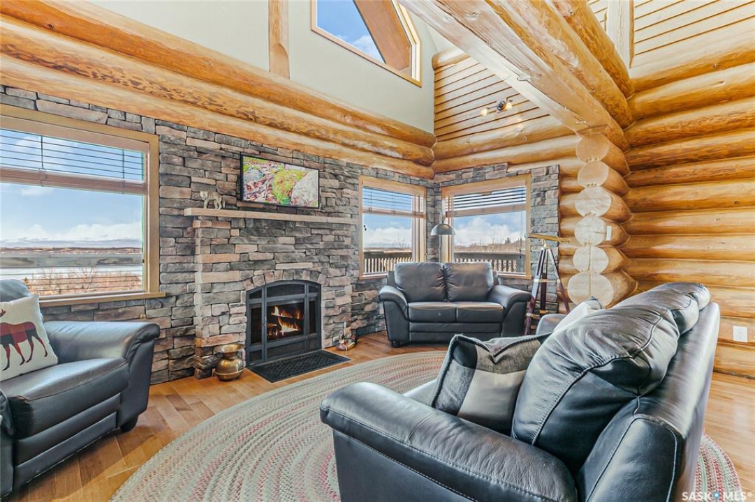 Welcome to your private retreat in Kinookimaw, next to Regina Beach and the Regina Beach Golf Club, just 30 minutes from Regina. Surrounded by nature, this beautifully landscaped double lot features retaining walls, mature greenery, and a 3.41-acre green space in front, preserving views of Last Mountain Lake. The home showcases quality craftsmanship, including 3-inch hardwood flooring across most of the main floor, triple-pane windows, and double-pane doors with built-in blinds. The inviting living space centres around a natural gas stone fireplace. The kitchen offers granite countertops, rich dark oak cabinetry, and timeless finishes, complemented by cast iron floor registers and return air. Outdoor living shines with a 360-degree wraparound deck, concrete patio, and a stunning gazebo with a concrete floor and wood-burning fireplace with a Class A chimney. The walkout basement adds a bedroom, large family room, 4-piece bathroom, and utility room with storage. Upstairs, the spacious primary bedroom fits a king bed and includes a 3-piece ensuite. Additional highlights include spray foam-insulated basement walls, a spray foamed ceiling roof for enhanced efficiency, a high-efficiency furnace with central air conditioning, and an owned natural gas water heater. The detached, fully heated 2' x 6' constructed garage offers 1,040 sq ft with 10-foot ceilings, accommodating up to five vehicles. The annual lease of $2,488 includes water. Sold fully furnished (excluding a few items). A rare opportunity for space, privacy, and lifestyle just minutes from Regina Beach.