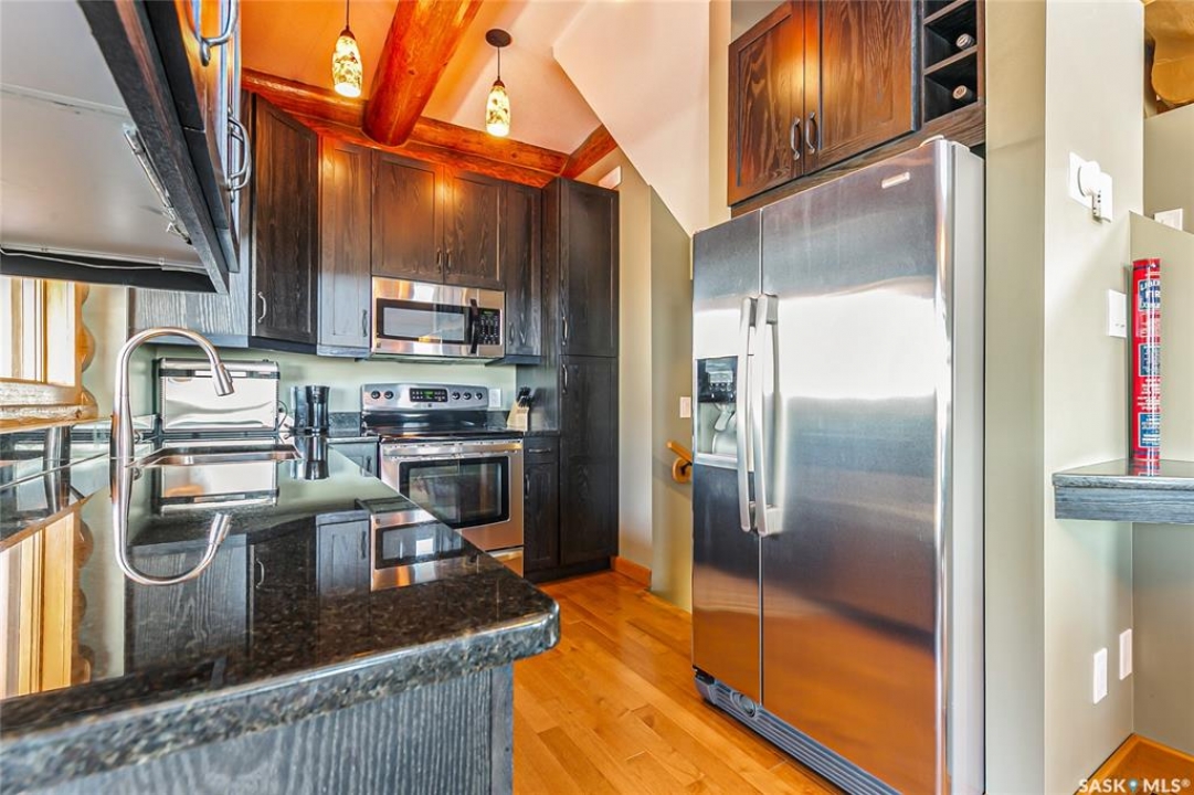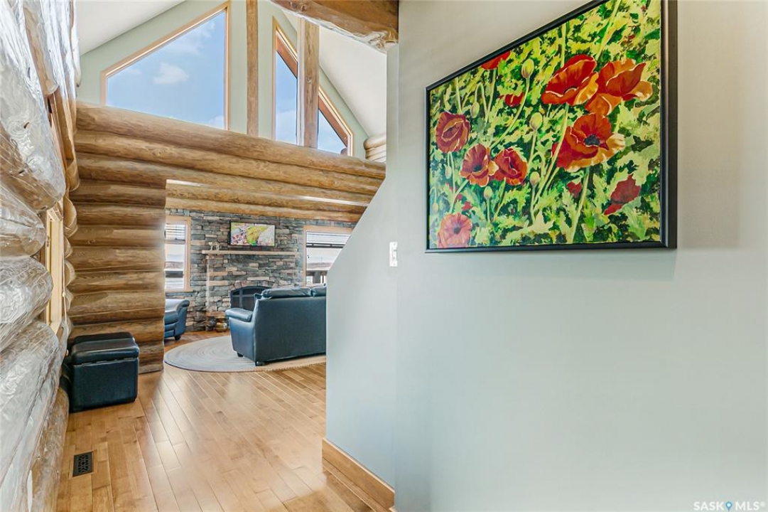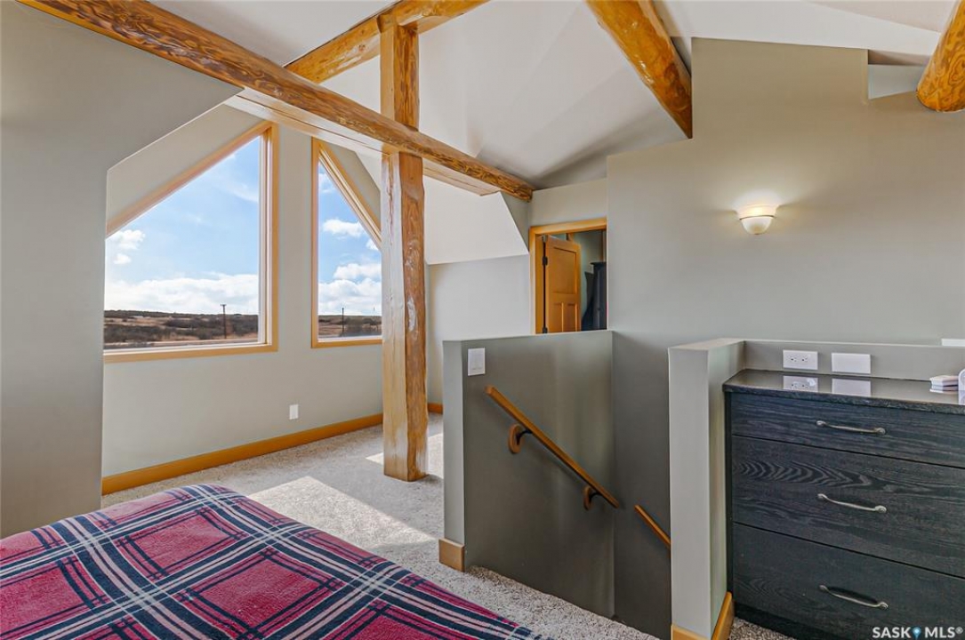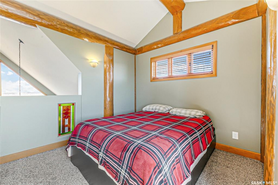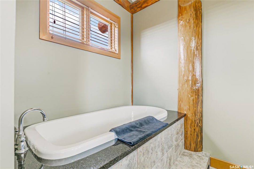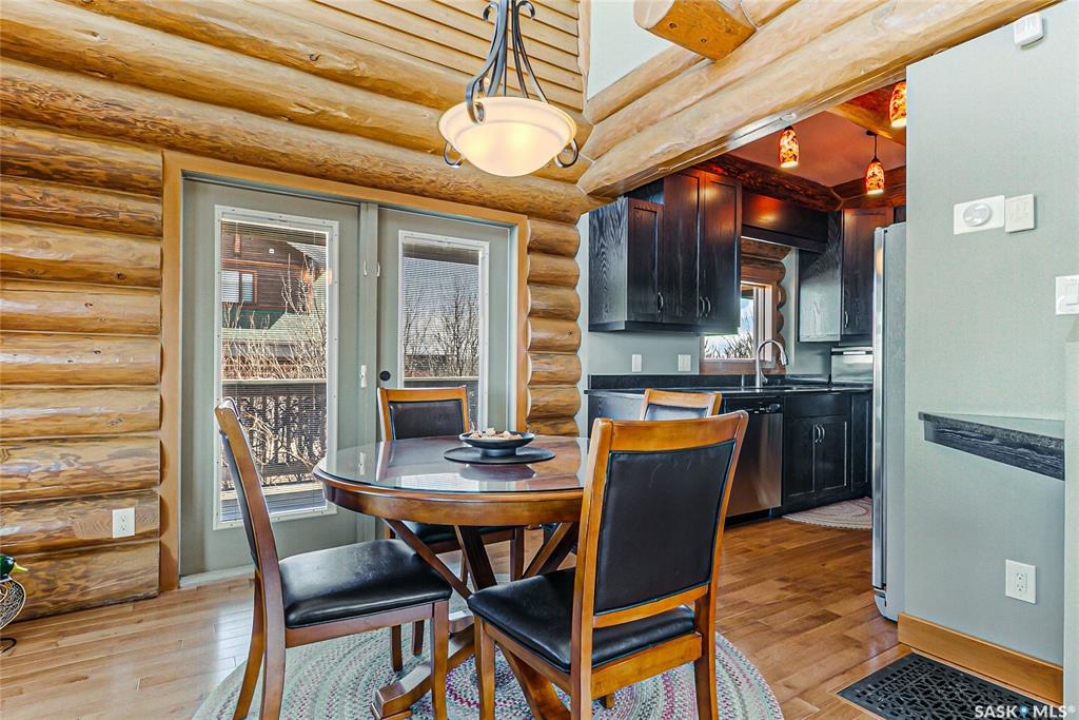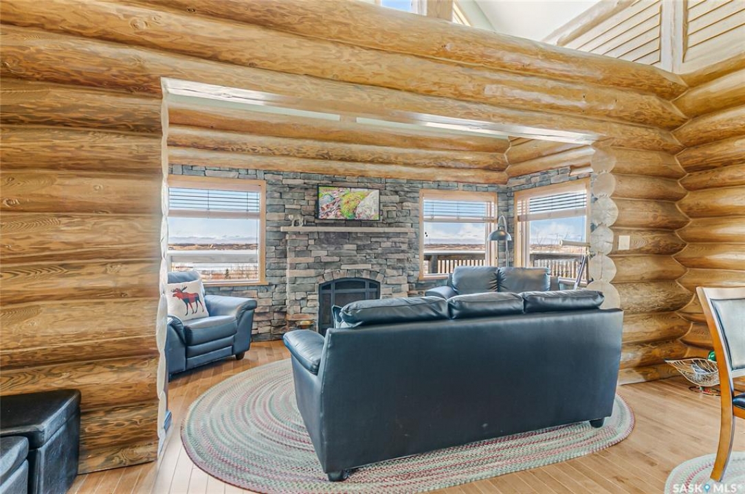 Welcome to your private retreat in Kinookimaw, next to Regina Beach and the Regina Beach Golf Club, just 30 minutes from Regina. Surrounded by nature, this beautifully landscaped double lot features retaining walls, mature greenery, and a 3.41-acre green space in front, preserving views of Last Mountain Lake. The home showcases quality craftsmanship, including 3-inch hardwood flooring across most of the main floor, triple-pane windows, and double-pane doors with built-in blinds. The inviting living space centres around a natural gas stone fireplace. The kitchen offers granite countertops, rich dark oak cabinetry, and timeless finishes, complemented by cast iron floor registers and return air. Outdoor living shines with a 360-degree wraparound deck, concrete patio, and a stunning gazebo with a concrete floor and wood-burning fireplace with a Class A chimney. The walkout basement adds a bedroom, large family room, 4-piece bathroom, and utility room with storage. Upstairs, the spacious primary bedroom fits a king bed and includes a 3-piece ensuite. Additional highlights include spray foam-insulated basement walls, a spray foamed ceiling roof for enhanced efficiency, a high-efficiency furnace with central air conditioning, and an owned natural gas water heater. The detached, fully heated 2' x 6' constructed garage offers 1,040 sq ft with 10-foot ceilings, accommodating up to five vehicles. The annual lease of $2,488 includes water. Sold fully furnished (excluding a few items). A rare opportunity for space, privacy, and lifestyle just minutes from Regina Beach.