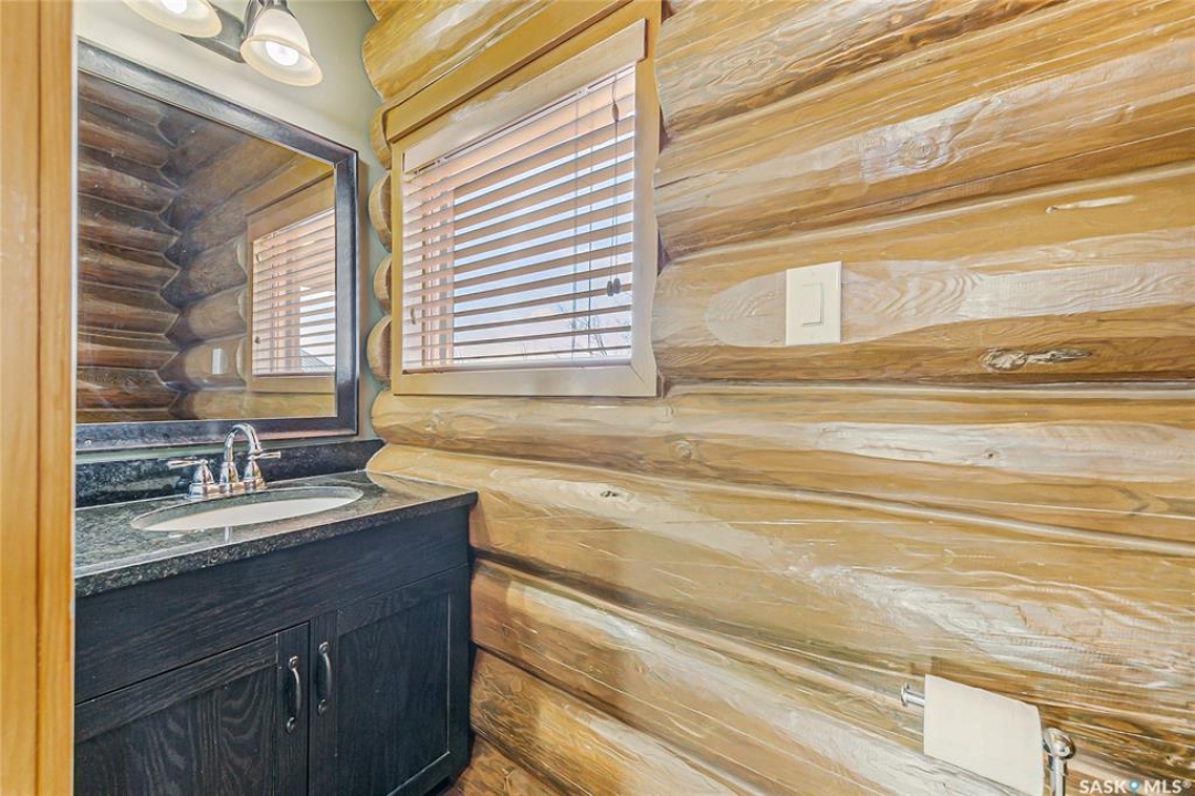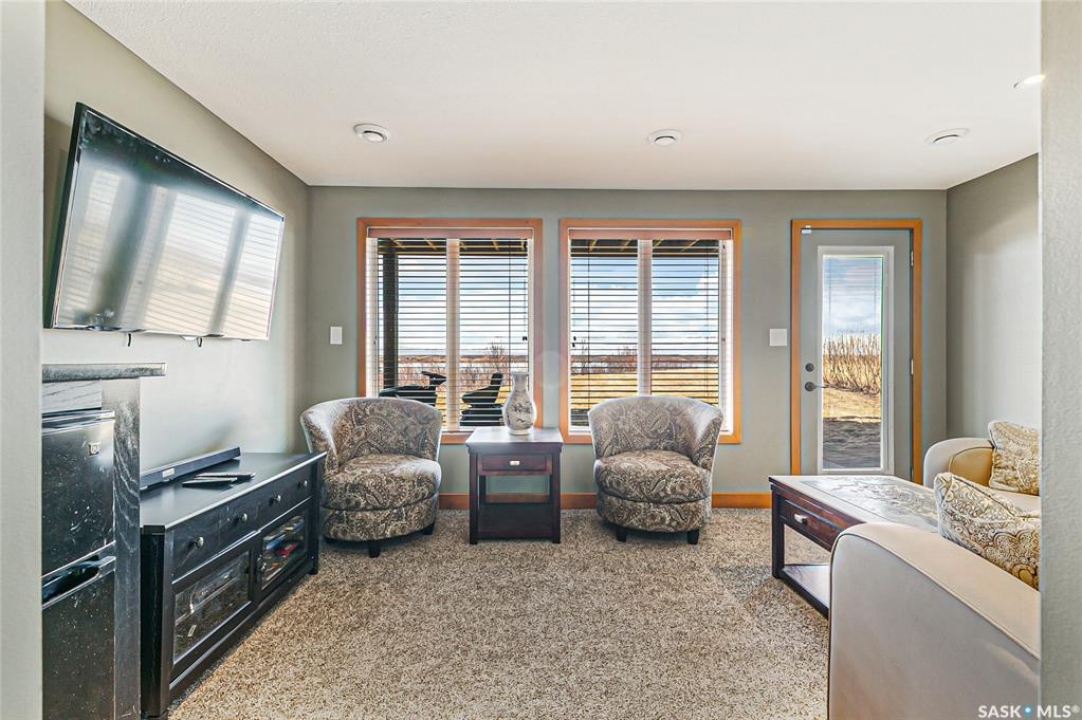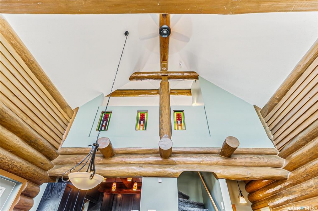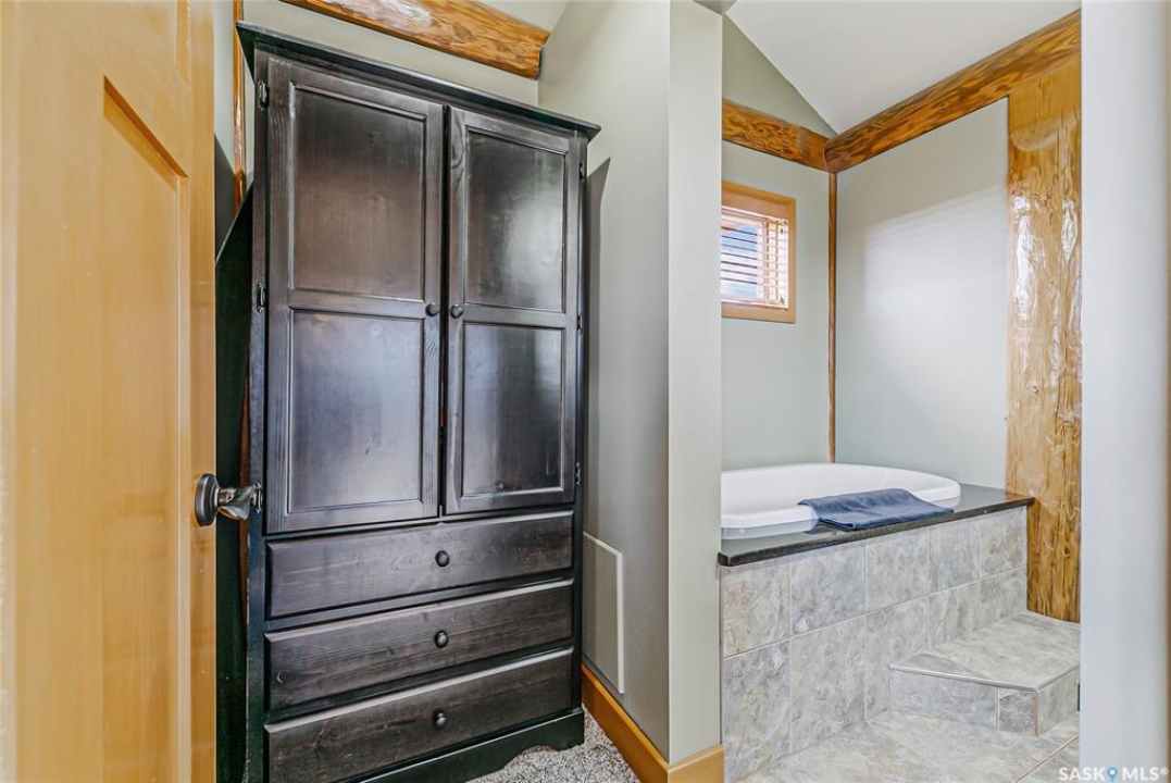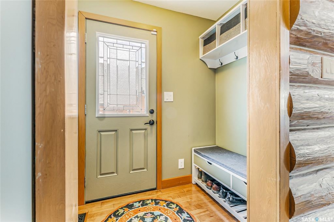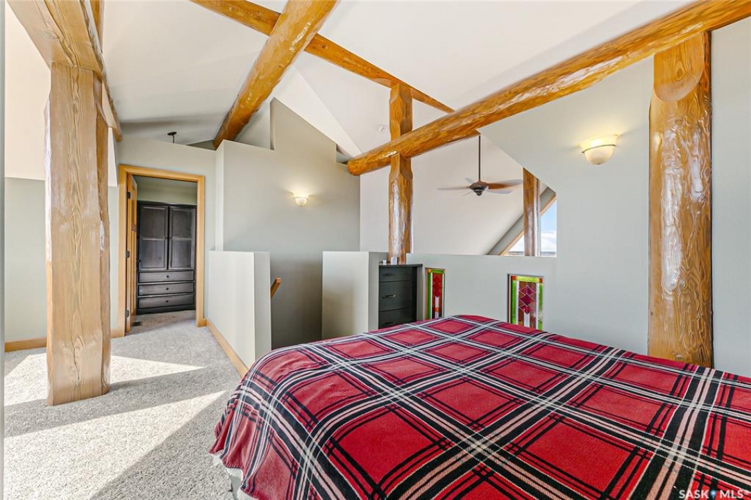 Welcome to your private retreat in Kinookimaw, next to Regina Beach and the Regina Beach Golf Club, just 30 minutes from Regina. Surrounded by nature, this beautifully landscaped double lot features retaining walls, mature greenery, and a 3.41-acre green space in front, preserving views of Last Mountain Lake. The home showcases quality craftsmanship, including 3-inch hardwood flooring across most of the main floor, triple-pane windows, and double-pane doors with built-in blinds. The inviting living space centres around a natural gas stone fireplace. The kitchen offers granite countertops, rich dark oak cabinetry, and timeless finishes, complemented by cast iron floor registers and return air. Outdoor living shines with a 360-degree wraparound deck, concrete patio, and a stunning gazebo with a concrete floor and wood-burning fireplace with a Class A chimney. The walkout basement adds a bedroom, large family room, 4-piece bathroom, and utility room with storage. Upstairs, the spacious primary bedroom fits a king bed and includes a 3-piece ensuite. Additional highlights include spray foam-insulated basement walls, a spray foamed ceiling roof for enhanced efficiency, a high-efficiency furnace with central air conditioning, and an owned natural gas water heater. The detached, fully heated 2' x 6' constructed garage offers 1,040 sq ft with 10-foot ceilings, accommodating up to five vehicles. The annual lease of $2,488 includes water. Sold fully furnished (excluding a few items). A rare opportunity for space, privacy, and lifestyle just minutes from Regina Beach.