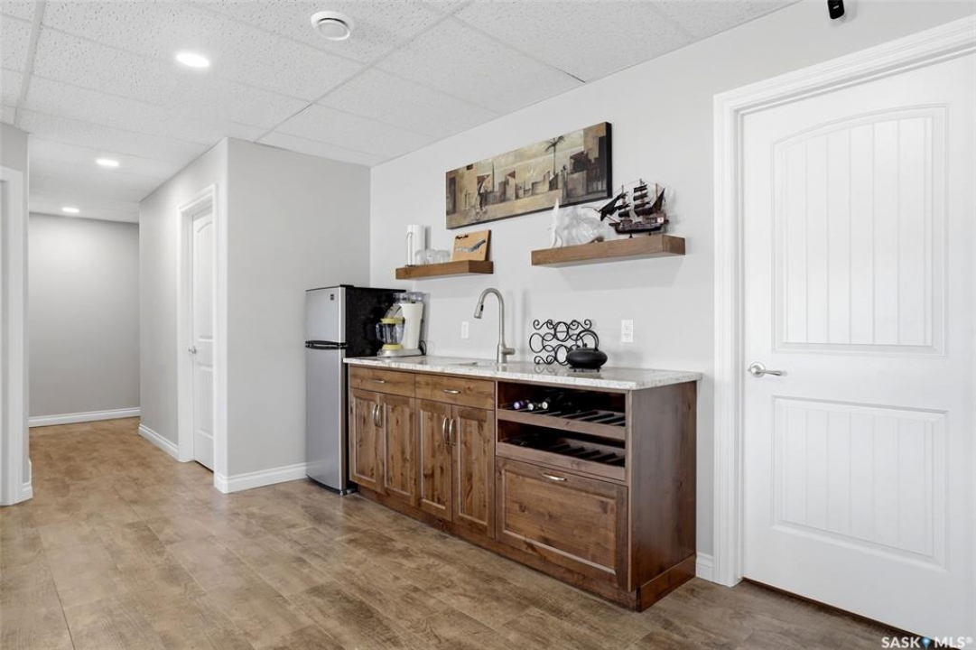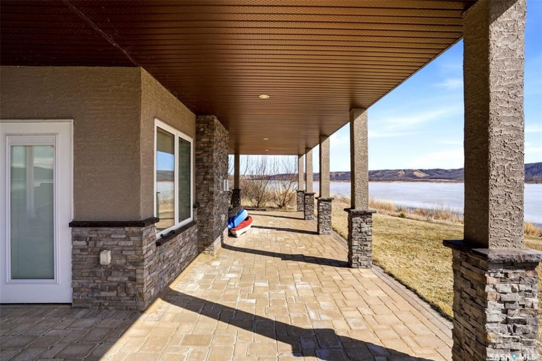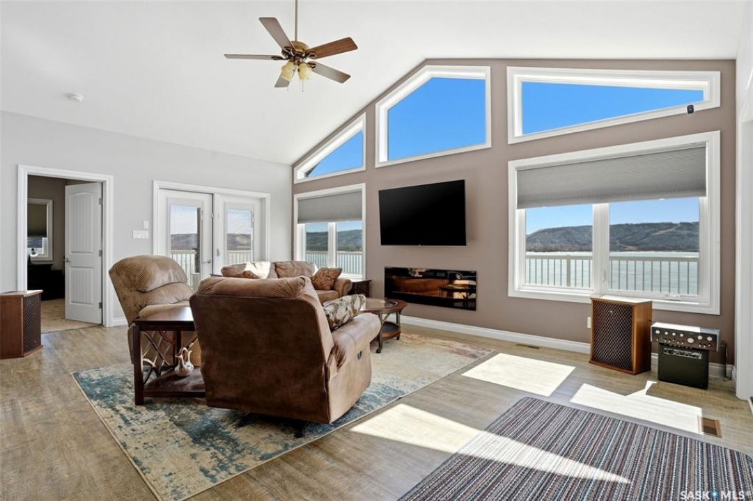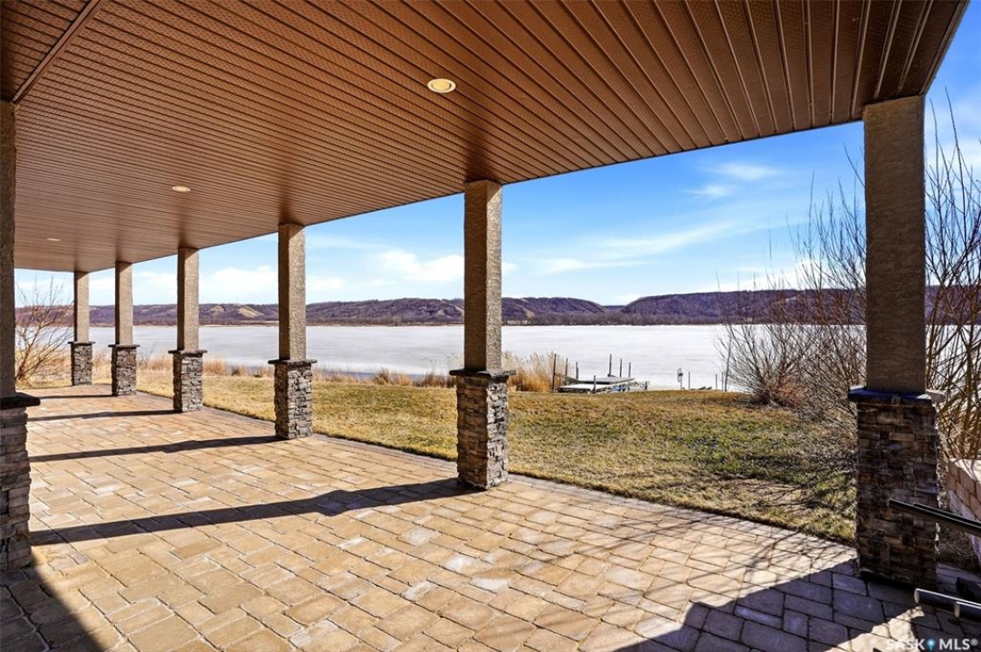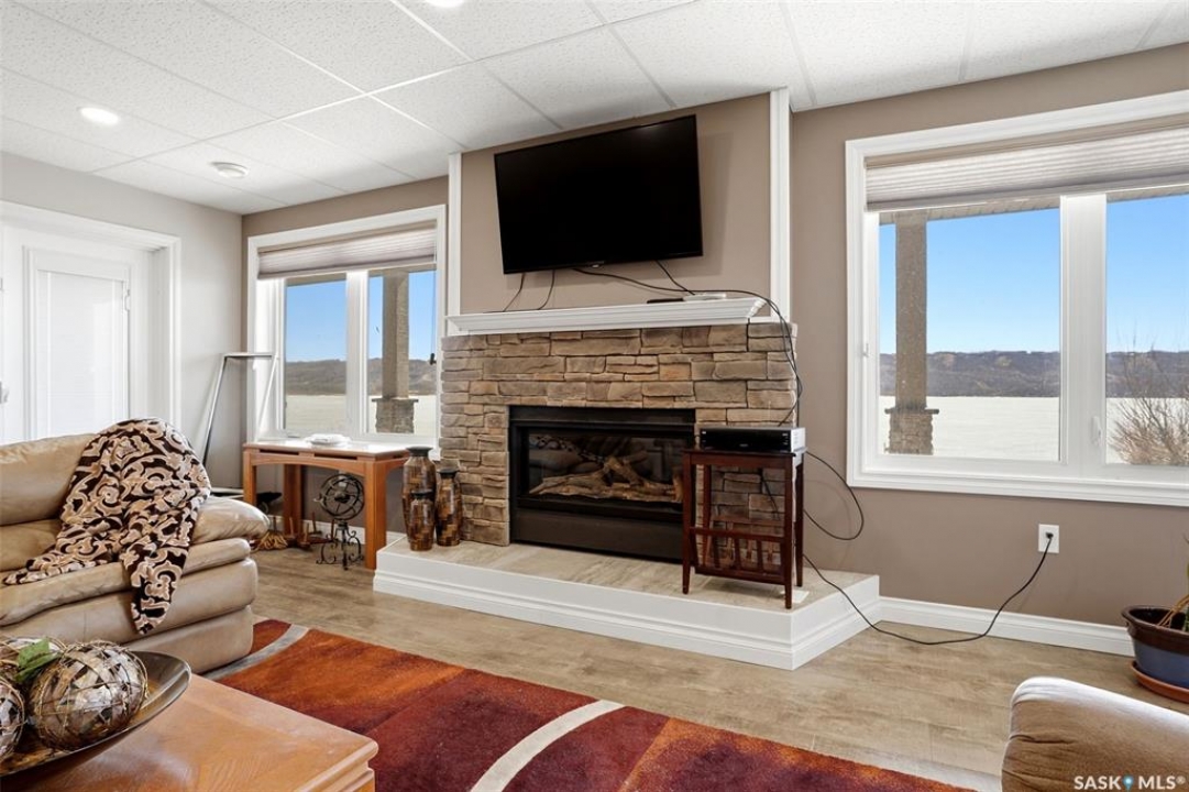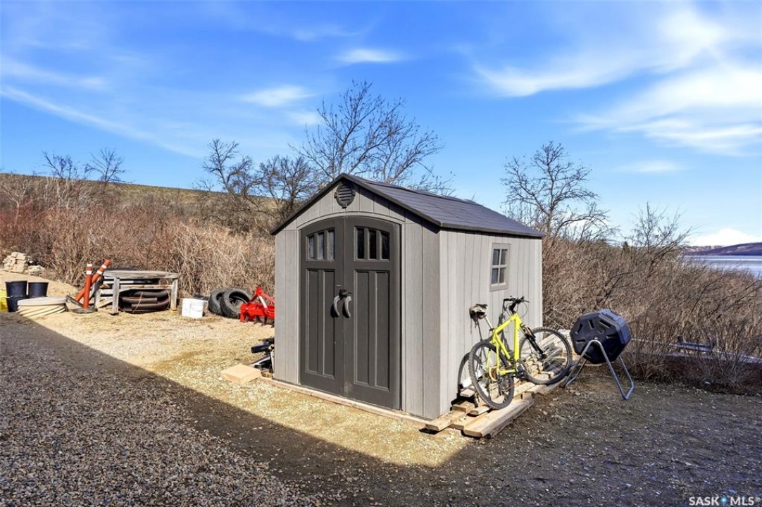 Lakefront living on beautiful Pasqua Lake with panoramic water views from nearly every living space! This thoughtfully designed walkout bungalow offers 1,566 sq. ft. above grade on a 0.22-acre waterfront lot with direct lake access, a double attached garage, & exceptional energy-conscious features including solar panels, backup generator, & 200-amp electrical. Exterior is finished in stucco with a durable metal roof, while the insulated double attached garage includes metal cladding, floor drain, & plumbing in place for future in-floor heat. A mudroom connects the garage to the home & is also finished with metal cladding for durability. Inside, the custom-built kitchen is designed for both function & entertaining, featuring a large island, granite countertops, soft-close cabinetry, pantry, stainless steel appliances, built-in dishwasher, gas stove, microwave, fridge, & freezer included. The main floor offers 3 bedrooms, including a spacious primary retreat with abundant natural light, walk-in closet, and generous 3-pc ensuite. A dedicated main floor laundry room & an additional 4-pc bathroom complete the level. The living room is framed by expansive windows that fully capture the lakefront setting, anchored by an electric fireplace & offering 2 separate accesses to the upper deck overlooking the water. The walkout lower level continues the lake views with a large family room featuring a natural gas fireplace, wet bar, in-floor heat, & 2 separate sets of French doors leading directly to the lower lakeside patio. This level also includes 2 additional bedrooms, a den ideal for a home office or exercise room with lake views, storage room, utility room, & extensive mechanical systems including pumps, water filtration, on-demand hot water, & natural gas forced-air heating. Gravel driveway, storage shed, excellent storage throughout, & a layout designed to fully embrace lake life make this an outstanding year-round property!
