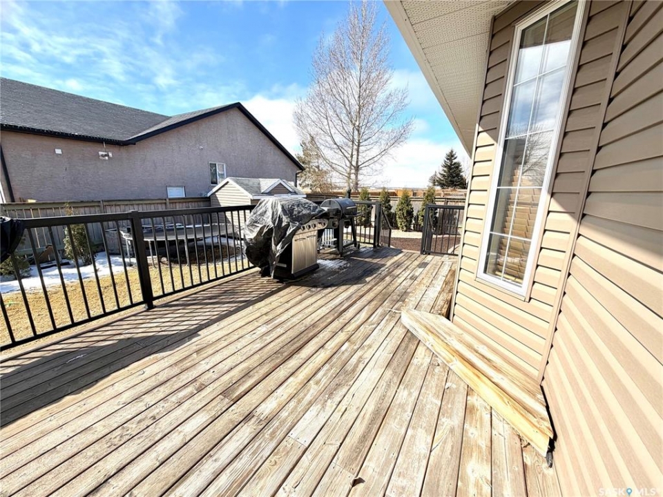 Here's the perfect family home you've been waiting for in sought after Battleford! This home has so much to offer with five bedrooms, three bathroom and a double attached garage with additional RV parking. There is a charming verandah off the front entry, with a spacious front closet once you enter. The living room is bright and inviting with hardwood floors and a natural gas fireplace. The main area of the home has an ideal open layout. The kitchen has a convenient corner pantry and plenty of counter space. The dining room has garden doors leading to the deck with a natural gas connection for BBQ, a lovely landscaped yard and custom swing set, garden beds, a fire pit and storage shed. There are three bedrooms on the main with the primary featuring a full 4 piece ensuite. Downstairs there is a generous sized recreation room, two large bedrooms and a spacious 3 piece bath. There is a combined laundry/ storage area with plenty of space for storing all your items. The double attached garage has high ceilings allowing for extra storage for bikes. The shingles are being replaced in immediate future estimated between May/June 2026. With all these features an amazing location don't delay on booking your own personal viewing.