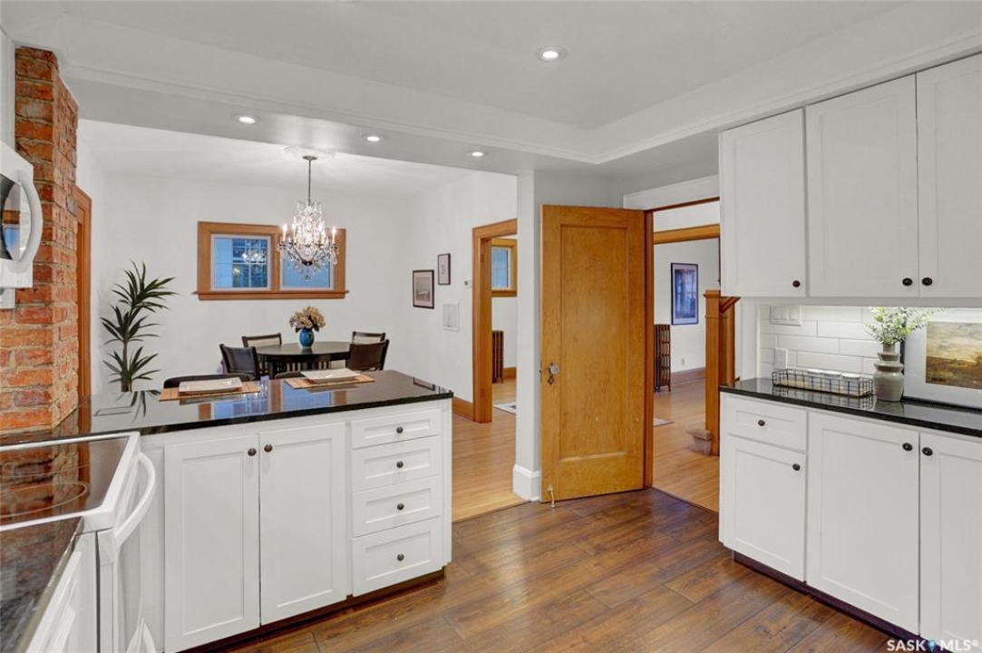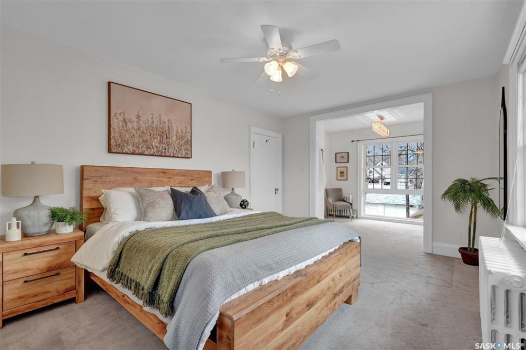 Welcome to 3129 Rae Street in very desirable Old Lakeview neighbourhood. This beautifully maintained family home has character and charm, and thoughtful updates that blend together perfectly. Step inside to a spacious entry leading to a very open main floor floor plan, with original oak hardwood flooring, and high original oak baseboards, all rooms flooded with natural light ideal for everyday living. Large formal living room with original attractive wood burning fireplace, and natural oak trimmed piano windows on either side of fireplace. Charming adjacent sunroom with west exposure could have multi purposes. These two rooms are separated with unique elegant natural oak trim and book cases flanked on either side with glass front doors. The updated kitchen is attractive and functional. Lots of cabinetry, and granite counters provides plenty of work space, with additional island/eating bar. Kitchen is open to bright dining room ,garden door leading to back deck ,with good sized rear yard has good use of paving stones and lawn. Upstairs are 3 generous sized bedrooms, including Primary suite with private 4 piece bath and good closet space, there's a cozy reading area for quiet time. Upstairs 3 piece bath complete this level. Basement is fully finished with extremely large recreation room, perfect hangout for many activities. It's also hardwired for home theatre system. Fourth bedroom with good closet and storage space. A separate upgraded 4 piece bath. Wonderful use of windows throughout the home, providing amazing natural light. Many upgrades to this home include; high efficiency hot water boiler, newer windows, newer shingles. Home is in excellent move in condition, with classic character and modern updates throughout. Home is close to schools, buses, parks, Legislature, walkable to down town. With 1800 square feet of living space, this property offers exceptional value and lifestyle